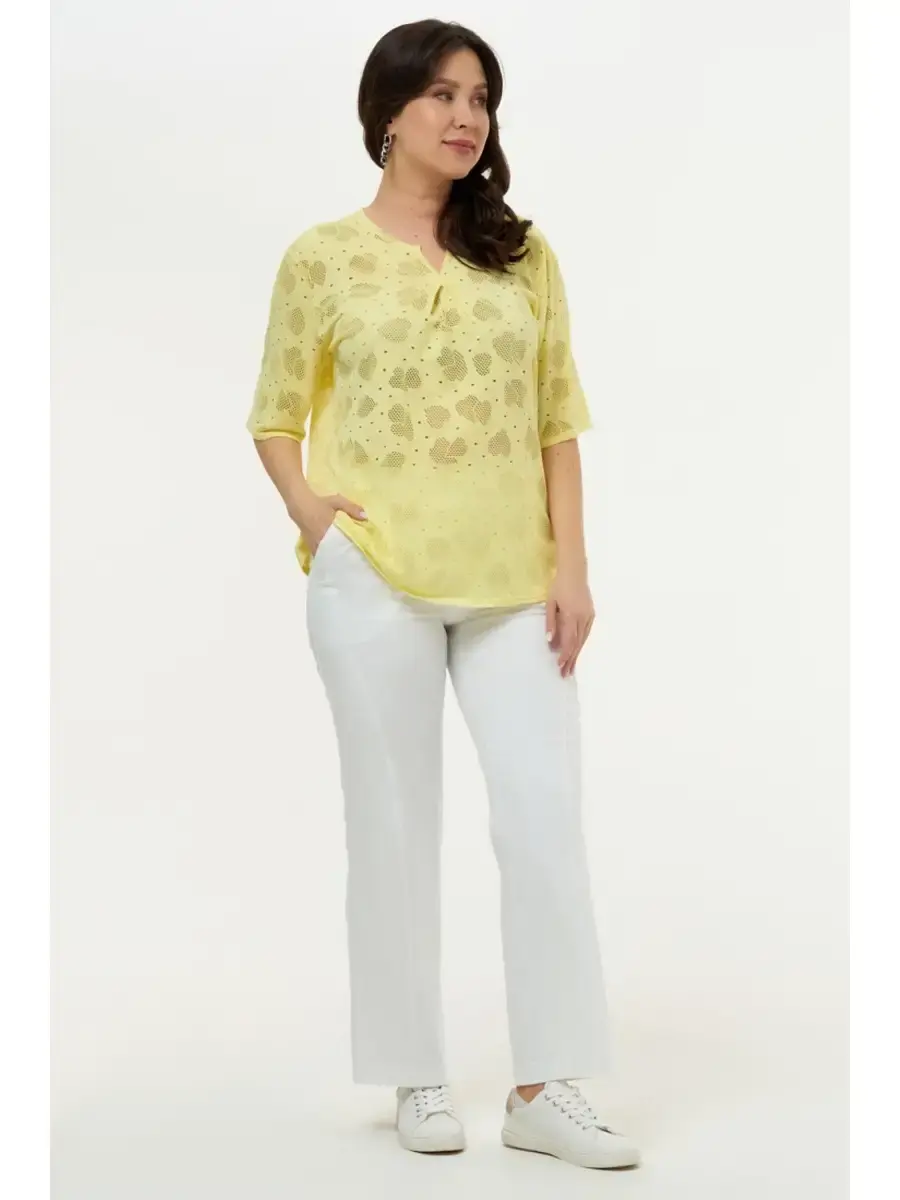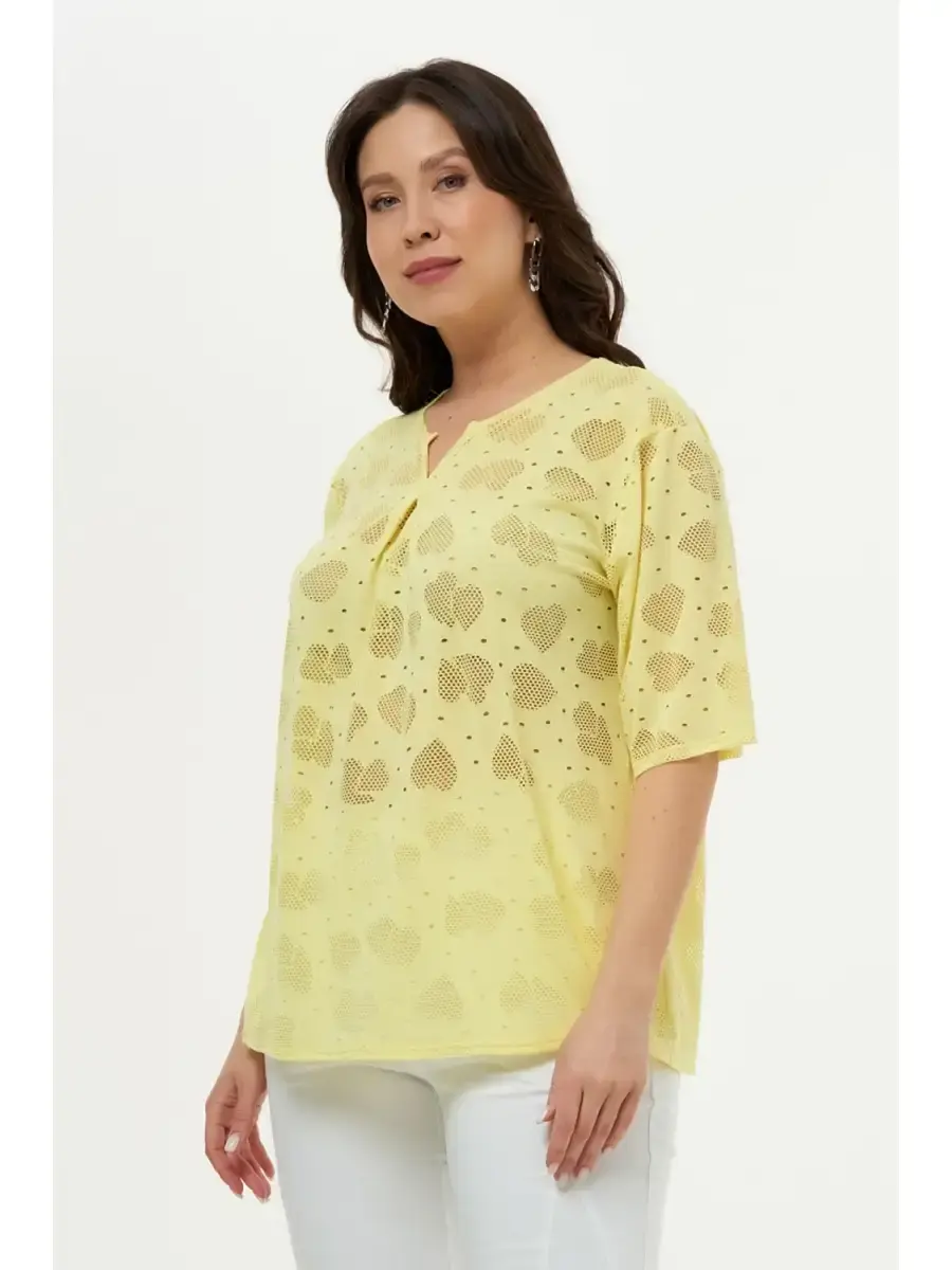 Летняя повседневная и пляжная блузка свободного кроя, с планкой. Длина изделия по спинке от 64,5см в р.48 до 65,5см в р.64, длина рукава 30см.