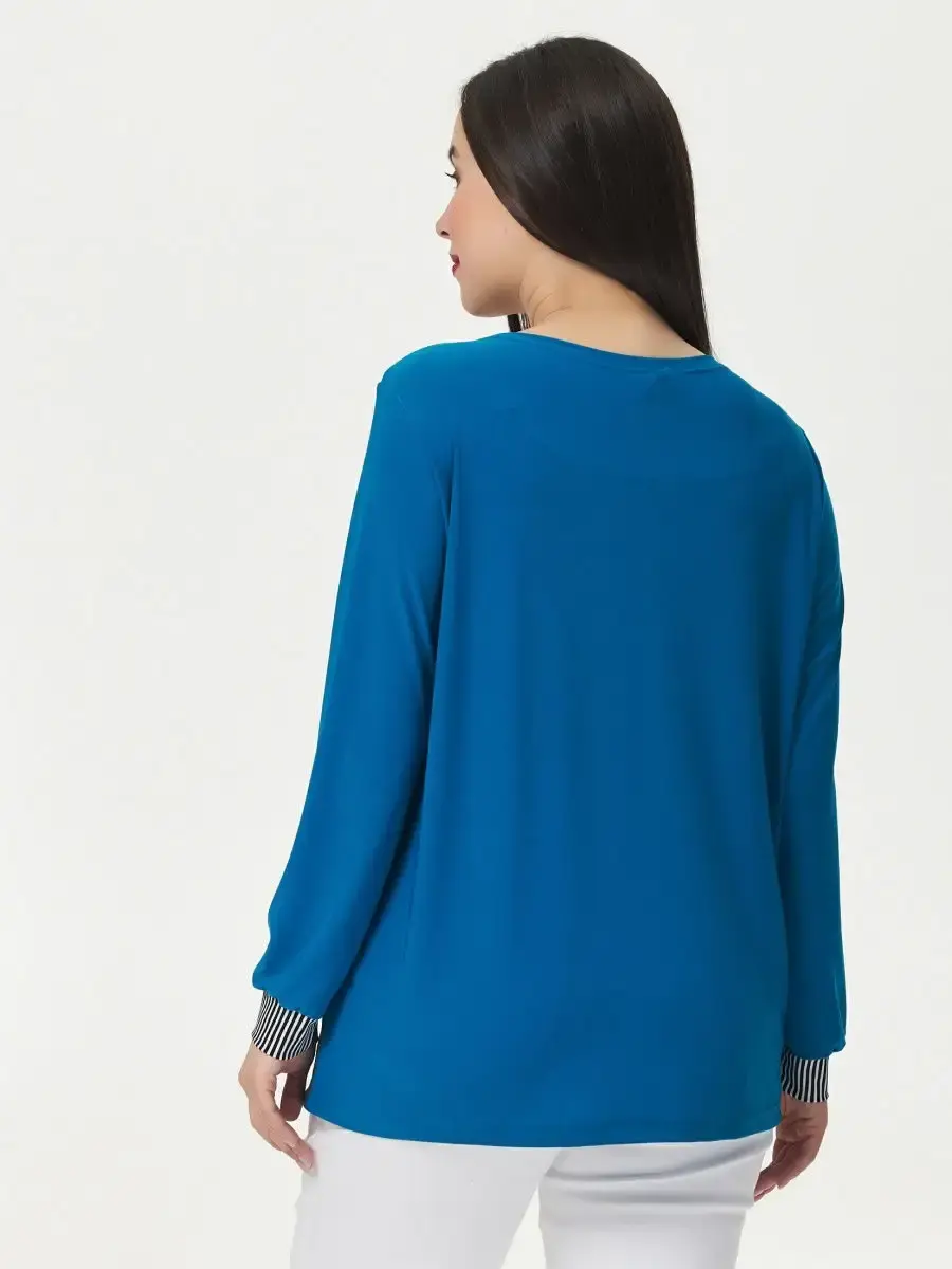 Женская повседневная туника большого размера от бренда OLSI выполнена из полотна по типу "масло". Женская кофта из тонкого трикотажа прямого кроя, с длинными рукавами с эластичными манжетами. Округлая горловина женственно открывает шею. Немнущийся материал блузки делает ее незаменимой в поездке, на работе или вечернем мероприятии - Вы всегда будете выглядеть эффектно и опрятно. Длина изделия по спинке от 70см в р.48 до 75,5см в р.70, длина рукава 60см.