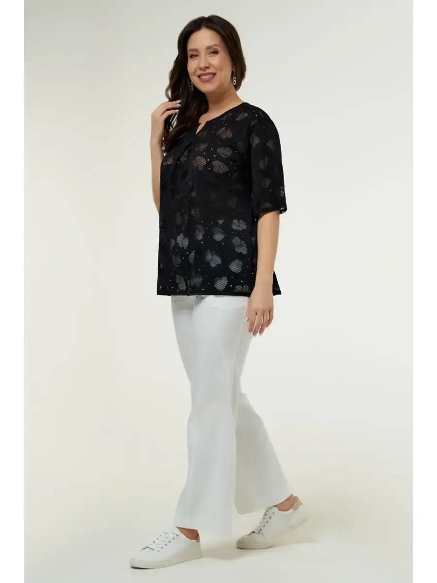 Летняя повседневная и пляжная блузка свободного кроя, с планкой. Длина изделия по спинке от 64,5см в р.48 до 65,5см в р.64, длина рукава 30см.