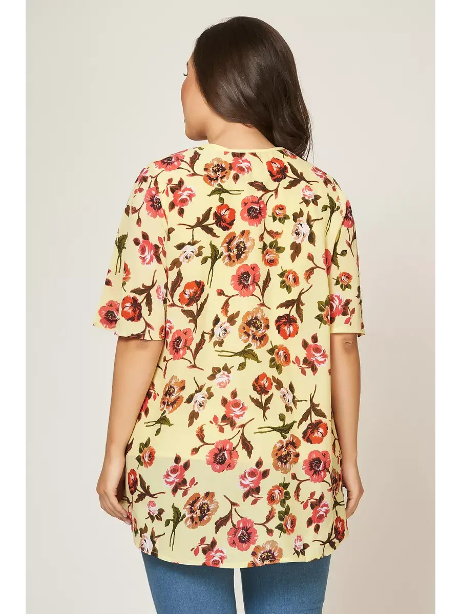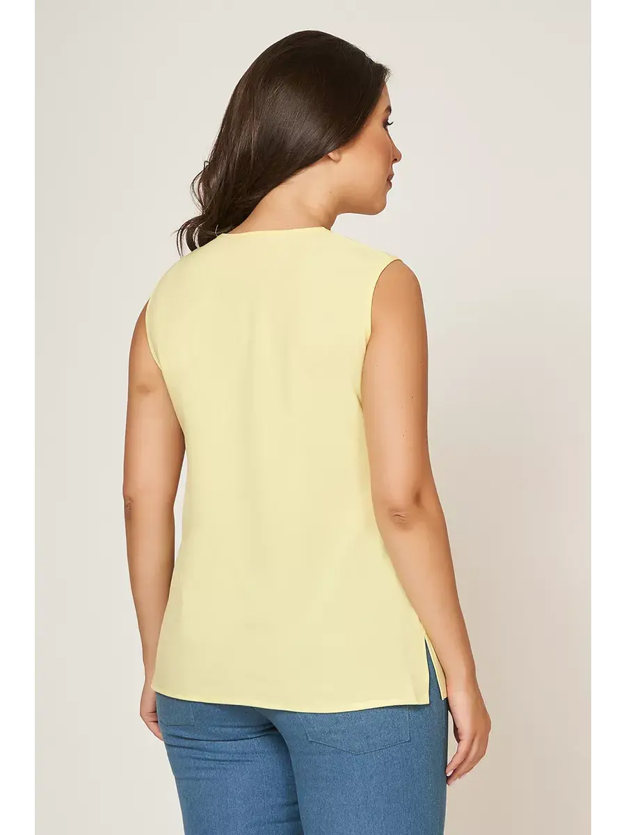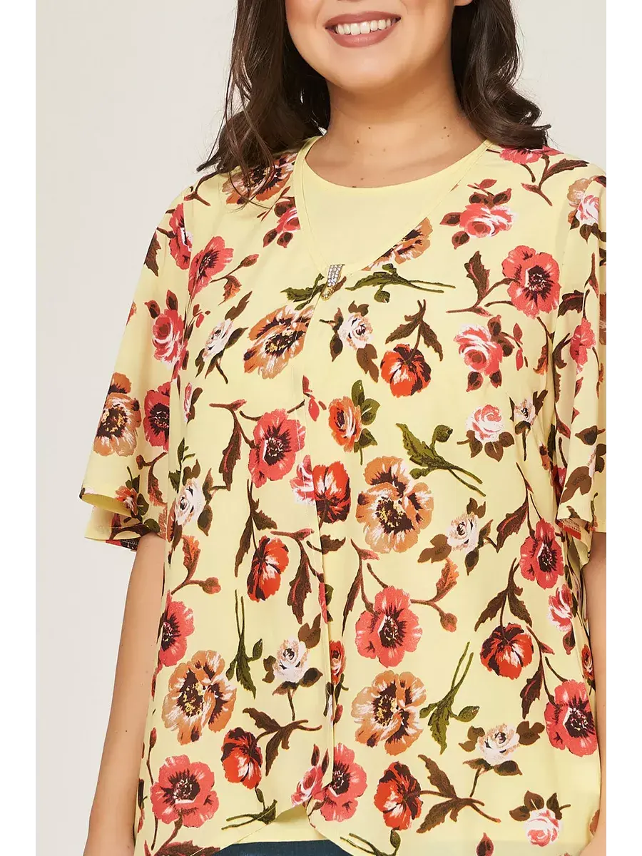 Легкий летний комплект женский больших размеров состоит из топа без рукавов и верхней блузки-накидки. Верхняя блузка без застежки, одевается через голову. Комплект выполнен из мягкого текстильного материала. Майку и накидку можно носить по-отдельности.