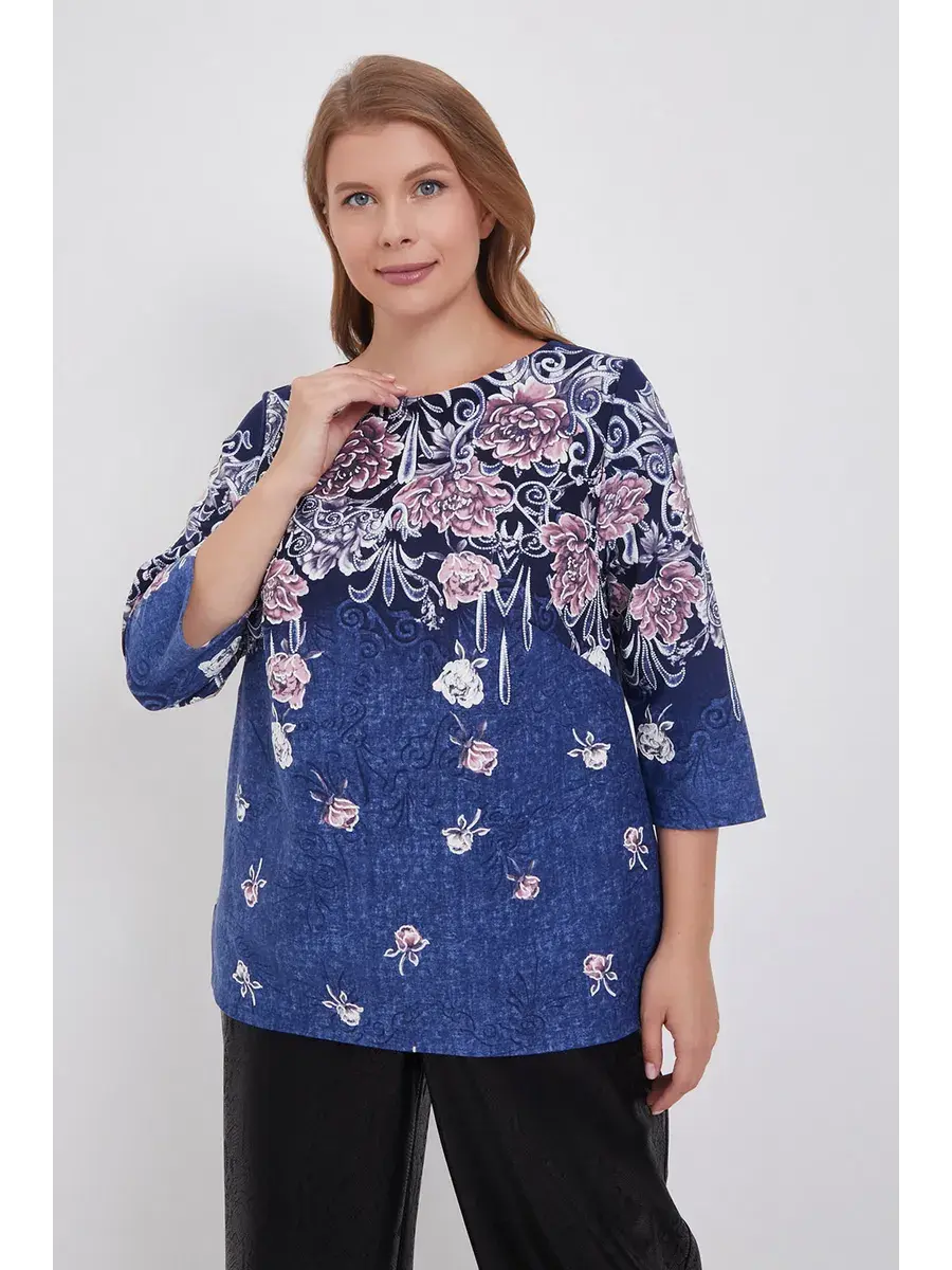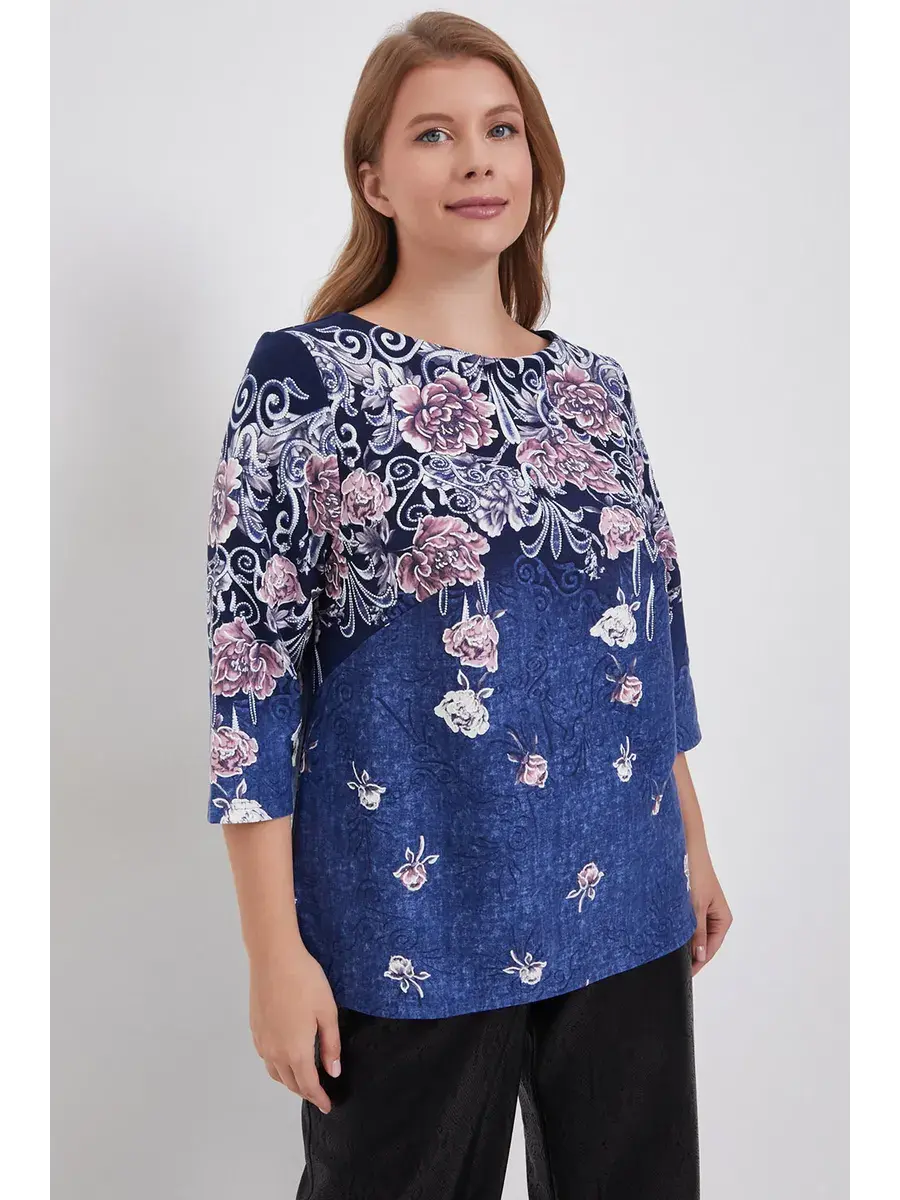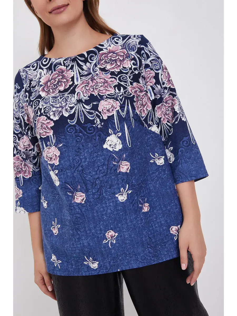 Эффектная стильная туника большого размера от бренда OLSI из плотного тонкого трикотажа с фантазийным цветочным принтом. Модель с вырезом горловины лодочка, классическими втачными рукавами длиной 3/4. Джемпер для женщин придает фигуре изящество, корректирует пропорции, придает образу мечтательность и романтические нотки. Уместно будет смотреться как на работе в офисе, так и наофициальном мероприятии.