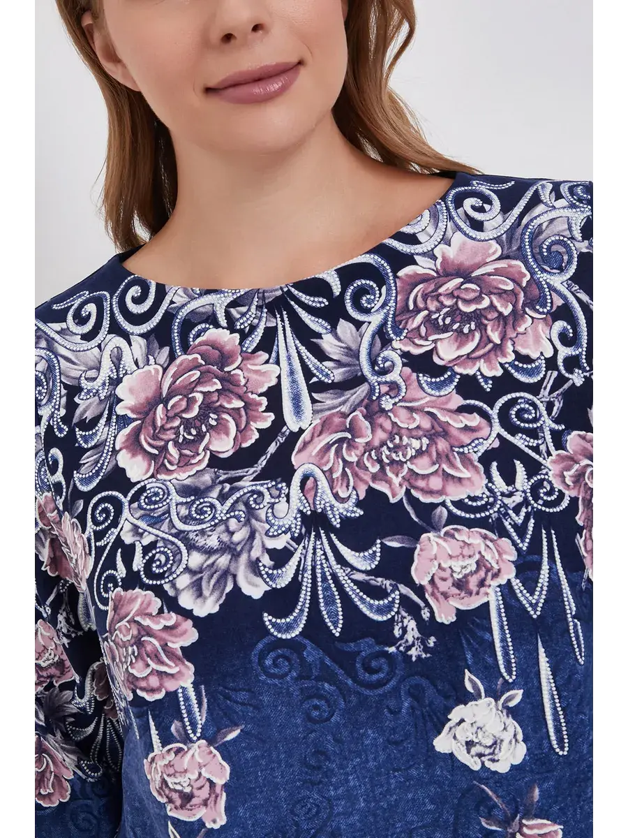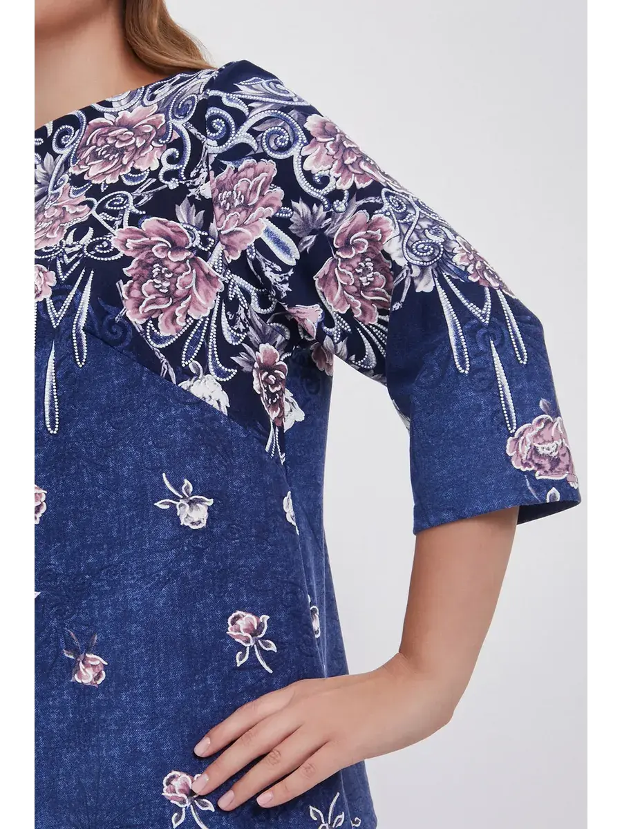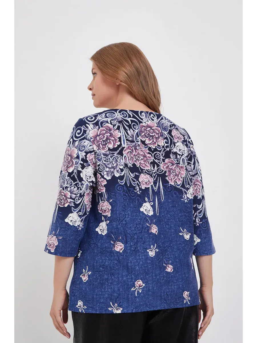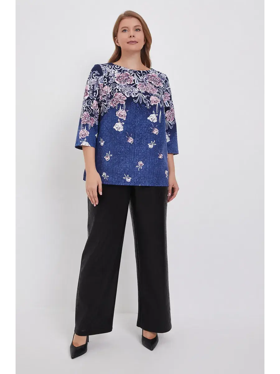 Эффектная стильная туника большого размера от бренда OLSI из плотного тонкого трикотажа с фантазийным цветочным принтом. Модель с вырезом горловины лодочка, классическими втачными рукавами длиной 3/4. Джемпер для женщин придает фигуре изящество, корректирует пропорции, придает образу мечтательность и романтические нотки. Уместно будет смотреться как на работе в офисе, так и наофициальном мероприятии.