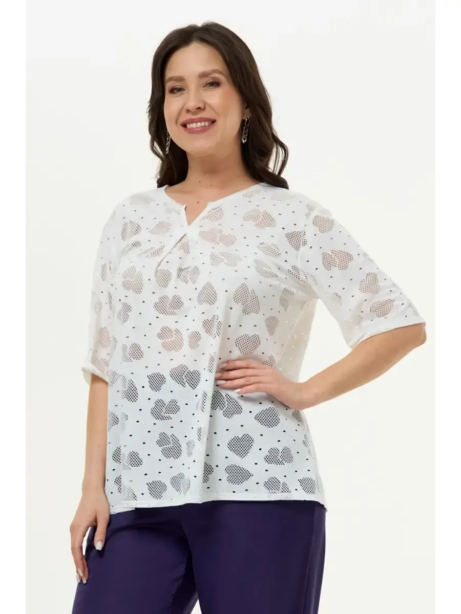 Летняя повседневная и пляжная блузка свободного кроя, с планкой. Длина изделия по спинке от 64,5см в р.48 до 65,5см в р.64, длина рукава 30см.