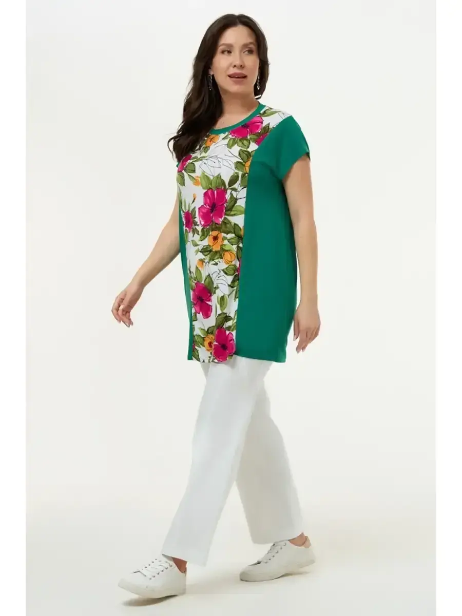 Удлиненный женский топ от бренда OLSI, выполненный из мягкого шелковистого трикотажа "масло". Летняя туника больших размеров с коротким цельнокроенным рукавом. Модель оверсайз свободного фасона не сковывает движений, в жаркую погоду тело дышит. Изделие неприхотливо в уходе: не требует глажки, быстро сохнет, не мнется, занимает мало места, - что очень удобно в как в отпуске, так и в рабочих поездках. Длина по спинке во всех размерах 85см. Блуза женская, футболка больших размеров, футболка удлиненная, туника прямая летняя, футболка для полных женщин