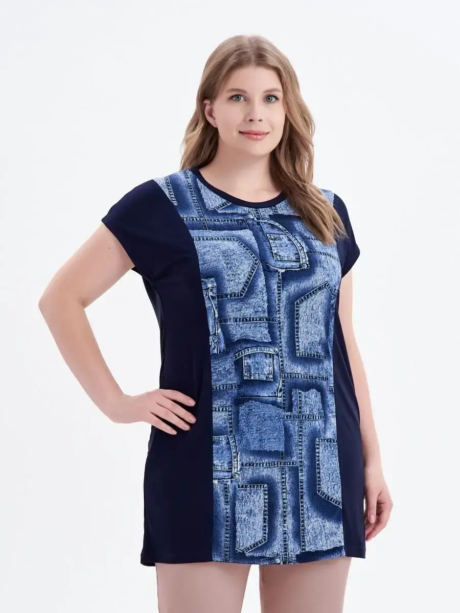 Лёгкий женский топ, выполненный из трикотажной ткани масло. Длина по спинке во всех размерах 85см. Блуза женская, футболка больших размеров, футболка удлиненная, туника прямая летняя, футболка для полных женщин