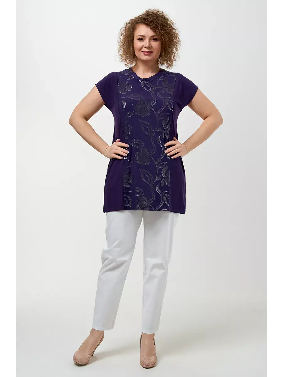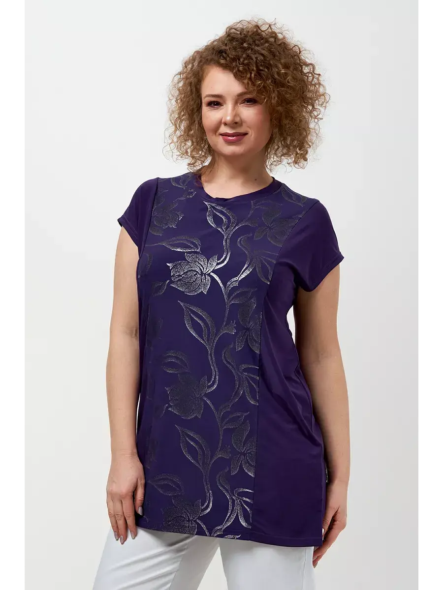 Лёгкий женский топ больших размеров, выполненный из трикотажной ткани масло. Блузка женская по типу футболки с коротким рукавом, очень удобна в носке и у уходе - не мнется, не требует глажки, запимает мало места. Длина по спинке во всех размерах 85см. Блуза женская, футболка больших размеров, футболка удлиненная, туника прямая летняя, футболка для полных женщин