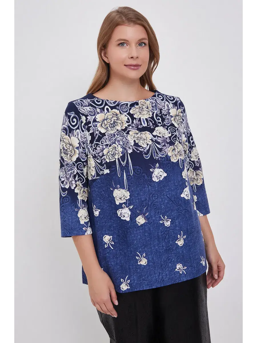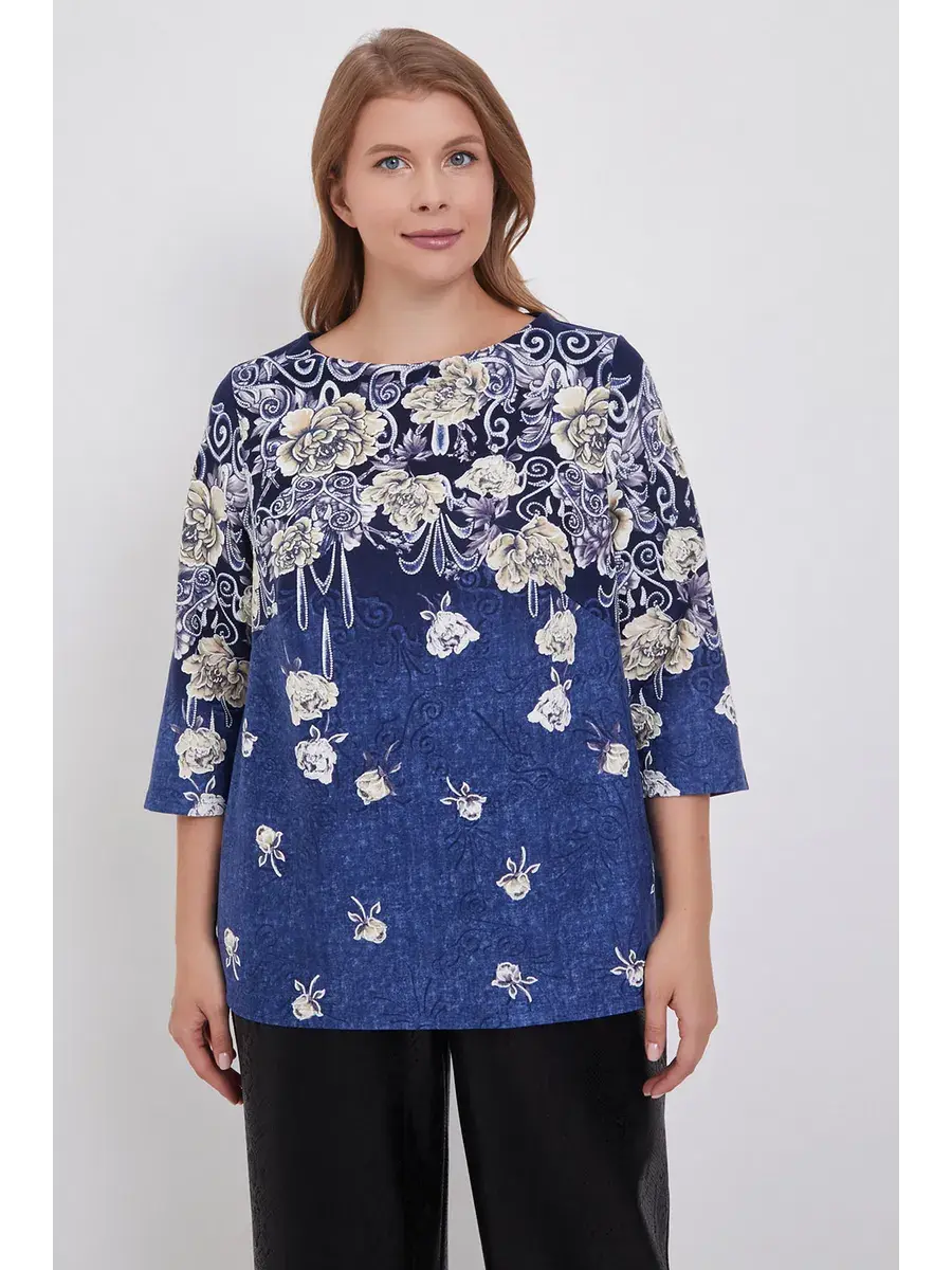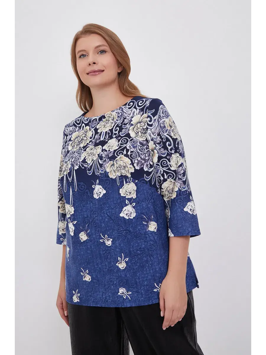 Эффектная стильная туника большого размера от бренда OLSI из плотного тонкого трикотажа с фантазийным цветочным принтом. Модель с вырезом горловины лодочка, классическими втачными рукавами длиной 3/4. Джемпер для женщин придает фигуре изящество, корректирует пропорции, придает образу мечтательность и романтические нотки. Уместно будет смотреться как на работе в офисе, так и наофициальном мероприятии.