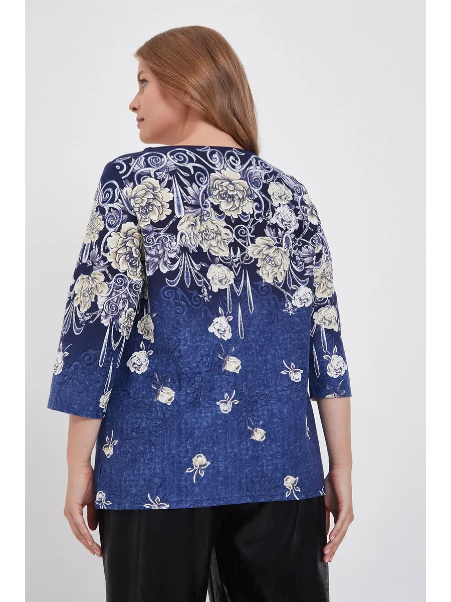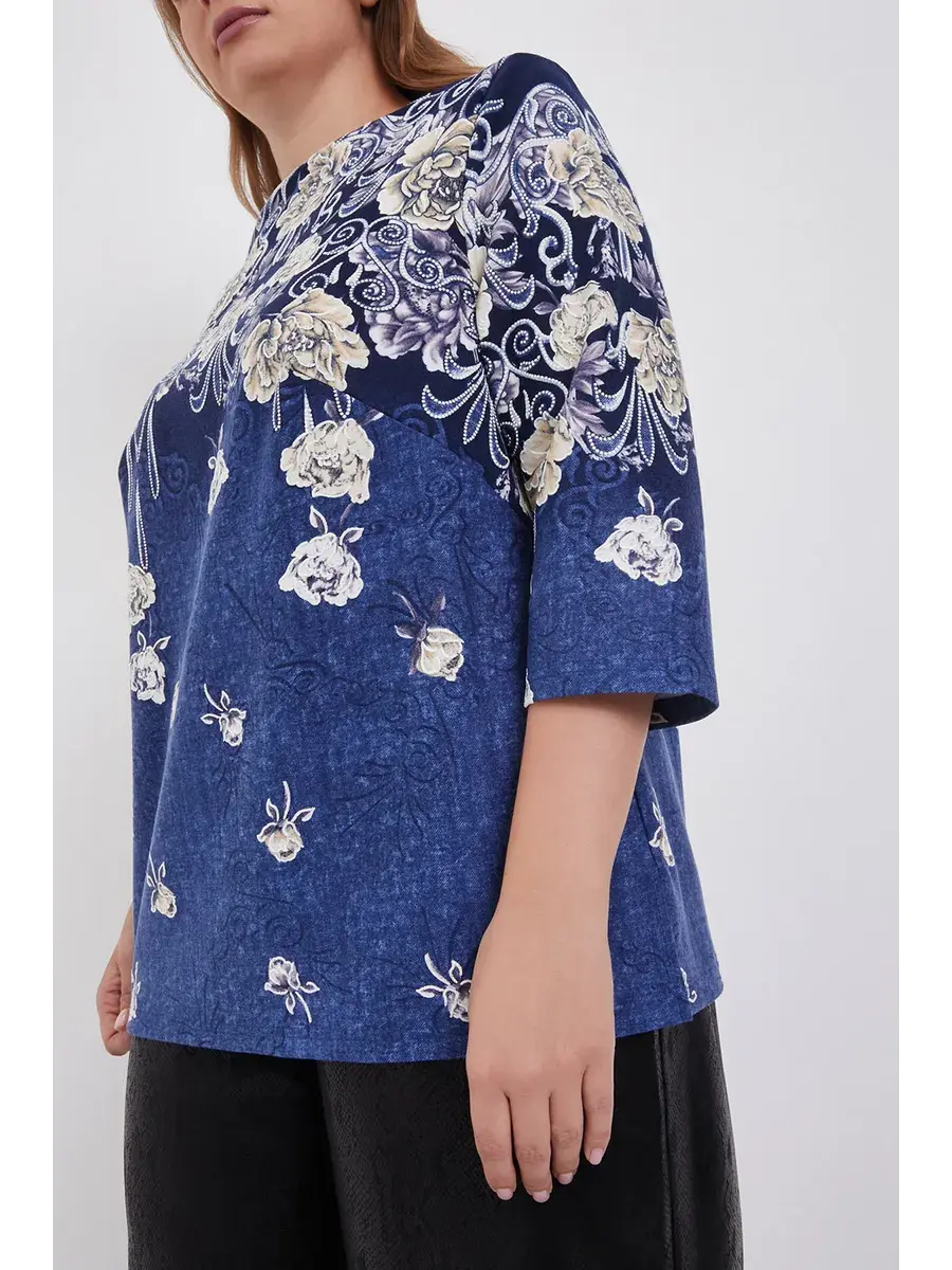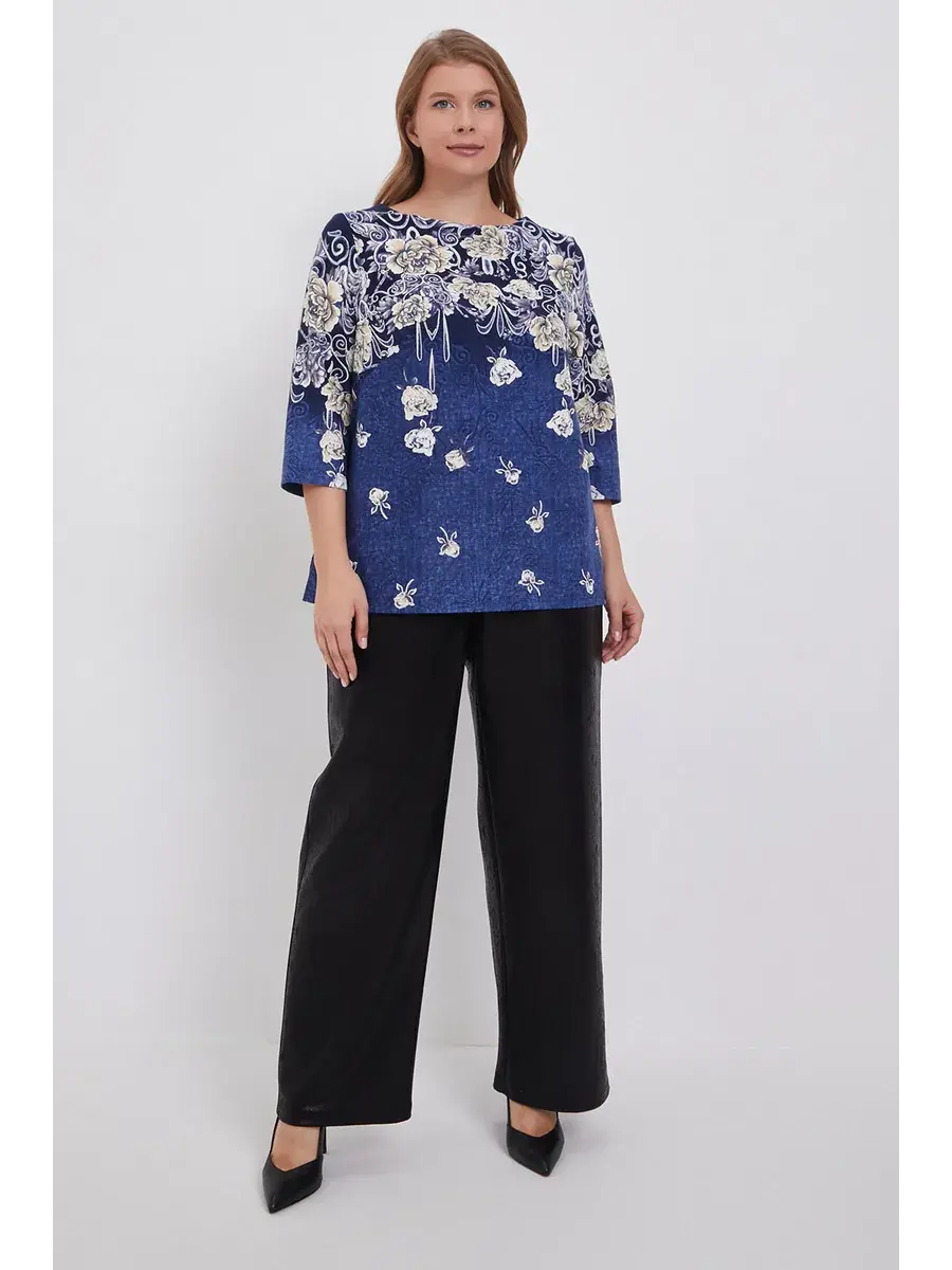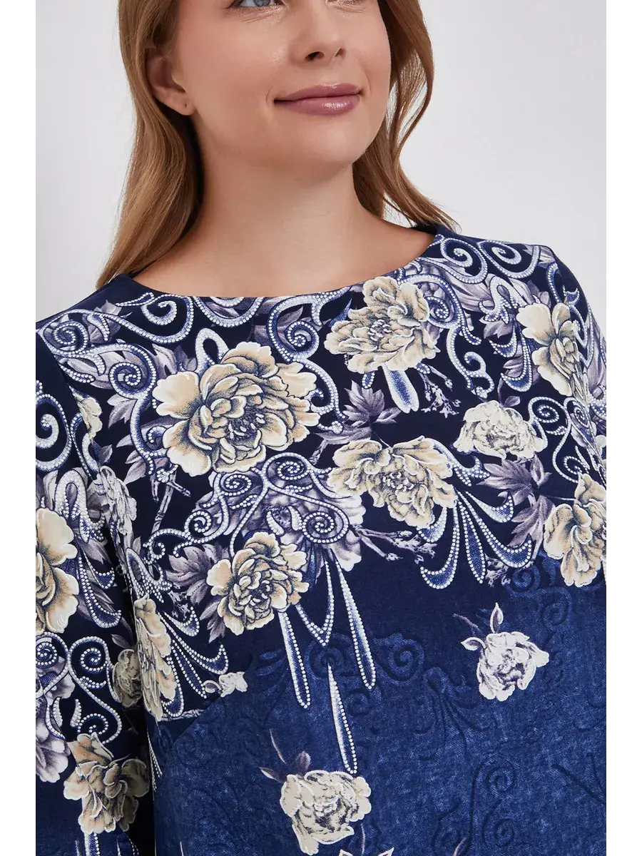 Эффектная стильная туника большого размера от бренда OLSI из плотного тонкого трикотажа с фантазийным цветочным принтом. Модель с вырезом горловины лодочка, классическими втачными рукавами длиной 3/4. Джемпер для женщин придает фигуре изящество, корректирует пропорции, придает образу мечтательность и романтические нотки. Уместно будет смотреться как на работе в офисе, так и наофициальном мероприятии.