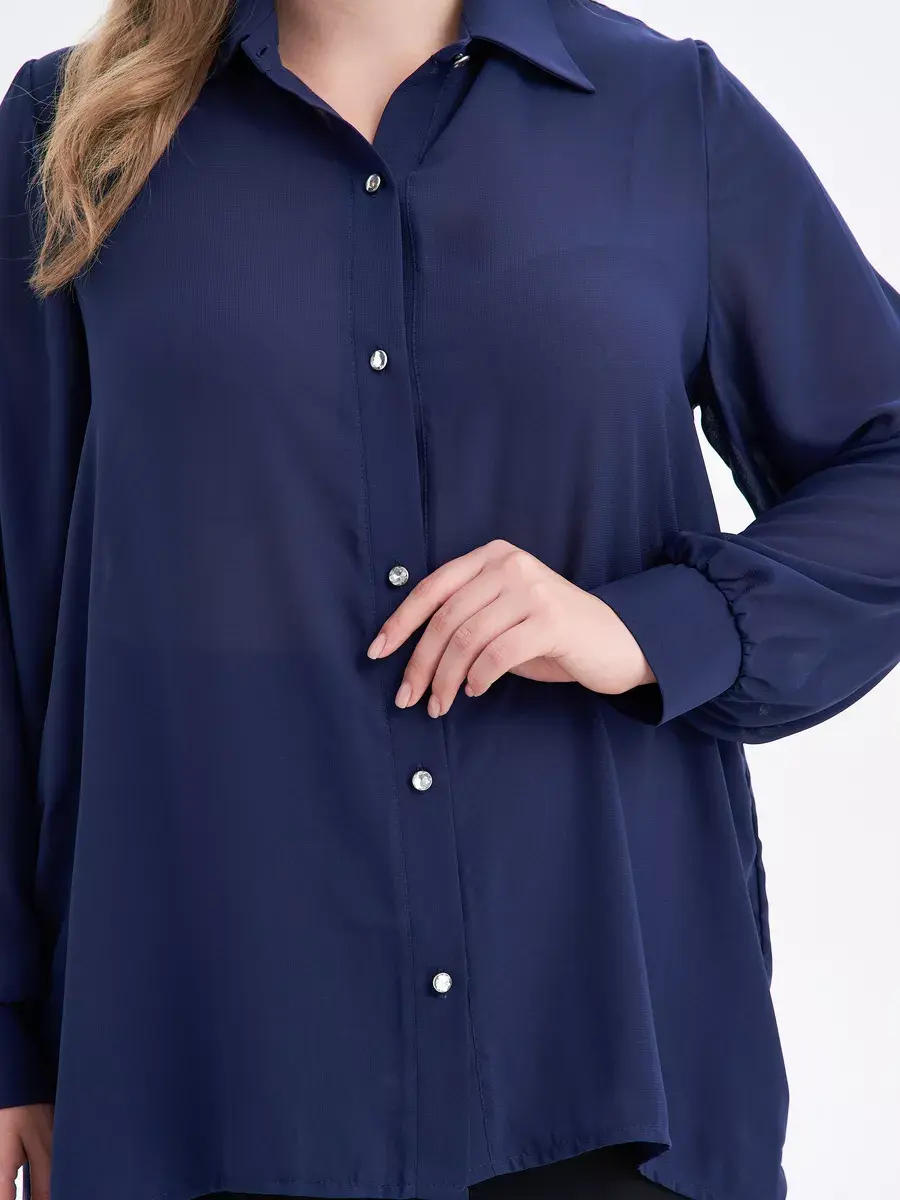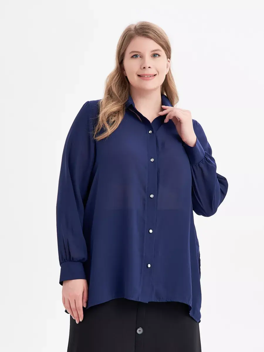 Шифоновая блузка больших размеров бренда OLSI. Полупрозрачная ткань рубашки с воздушным летящим эффектом. Базовая блузка универсального рубашечного кроя поможет создать разнообразные образы как в стиле Шик так и Кэжуал. Блузу можно носить на выпуск, заправлять в брюки или завязывать концы узлом. Женская блузка имеет свободный оверсайз силуэт, который обеспечивает максимальный комфорт и свободу движений. Манжеты с пуговицами и классический воротник добавляют деловой штрих и придают блузке элегантности. Размерный ряд от 52 до 70, включает большие плюс сайз размеры. Легкая блуза идеально подходит для семейных мероприятий, вечеринок, праздников, фотосессий и других особенных случаев. Стильный лаконичный дизайн и легкий полупрозрачный материал выделит вас из толпы. Одна из основных особенностей этой блузки – ее универсальность. Она идеально подходит как для повседневных casual образов, так и для создания элегантных и стильных луков на лето, весну, осень и вечерние мероприятия. Это популярная модель среди девушек и женщин, и она особенно подойдет для вечера, деловых встреч, свадебных торжеств и прочих особых событий. Она также отлично сочетается с пиджаком, джинсами, брюками и костюмами, позволяя вам создавать множество стильных образов. Классический дизайн блузки с длинным рукавом. Легкая блузочка дополнит гардероб взрослых женщин и девушек любого роста: высоких или невысоких, станет отличным вариантом выбора в качестве повседневного офисного или нарядного. Эта красивая блузка выглядит роскошно и привлекательно. Блузка сделает вас звездой любого мероприятия, подчеркнет вашу индивидуальность и подарит уверенность в своем образе. Обратите внимание и на другие модели из коллекции бренда OLSI и переходите в каталог.