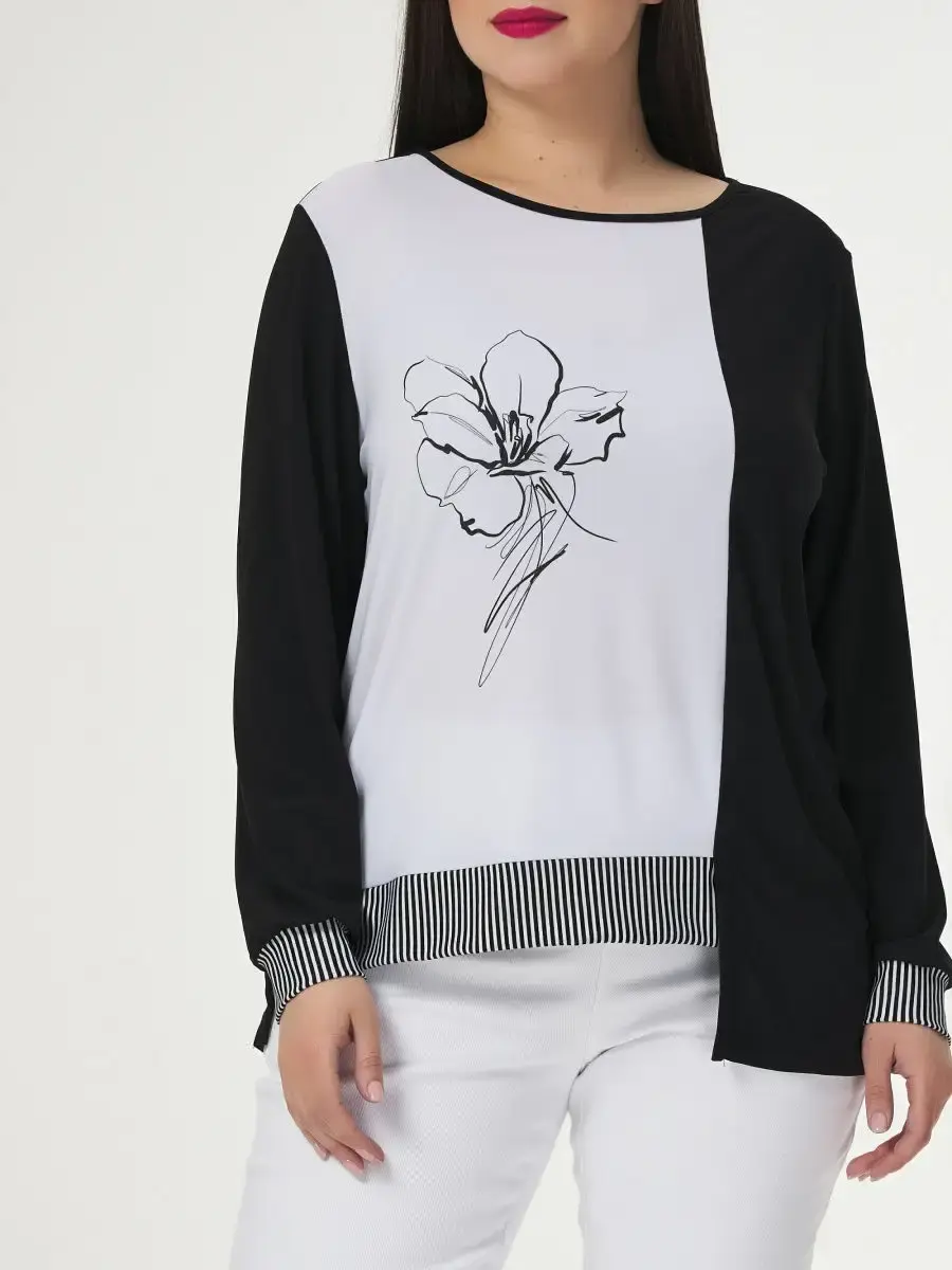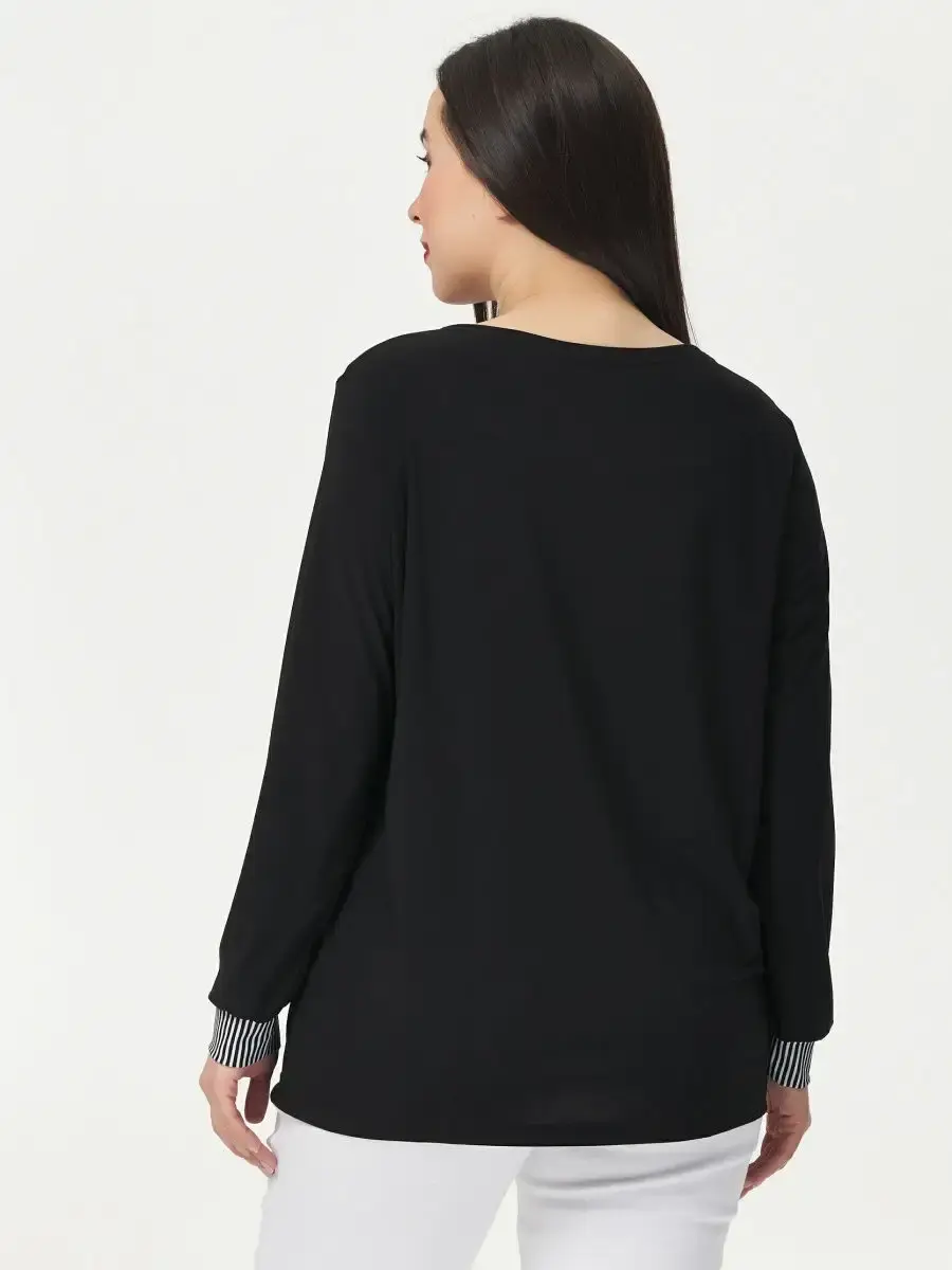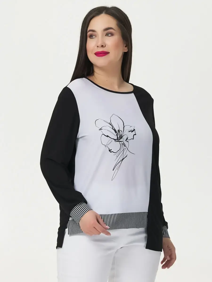 Женская повседневная туника большого размера от бренда OLSI выполнена из полотна по типу "масло". Женская кофта из тонкого трикотажа прямого кроя, с длинными рукавами с эластичными манжетами. Округлая горловина женственно открывает шею. Немнущийся материал блузки делает ее незаменимой в поездке, на работе или вечернем мероприятии - Вы всегда будете выглядеть эффектно и опрятно. Длина изделия по спинке от 70см в р.48 до 75,5см в р.70, длина рукава 60см.