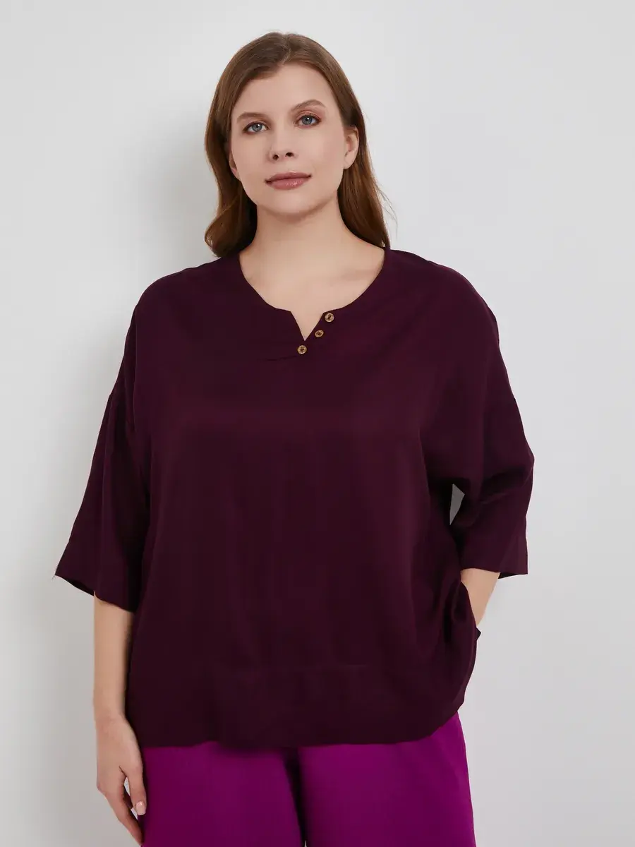 Женская блузка больших размеров распашного кроя с рукавом 3/4, круглый вырез. Выполнена из мягкого и приятного на ощупь текстильного полотна хлопок с вискозой. Модель расслабленного фасона в этно-стиле. На фигуре сидит свободно, рубашка оверсайз на весну и лето женщинам, чтобы в жаркую погоду тело дышало. Рукав со спущенной проймой. Благодаря своему свободному крою и объемным рукавам, она создает эффектный и модный образ. Наша блузка идеально подойдет женщинам для праздничных мероприятий и особых случаев. Вы сможете выглядеть ярко и элегантно на новогодней вечеринке, дне рождения, юбилее или свадьбе. Она также подойдет для похода в кино, театр или ресторан. Блузка создаст неповторимый образ для работы и придаст уверенности. Наша блузка – это модная и стильная находка для любого времени года. Она легкая и удобная, подходит как для летнего сезона, так и для зимы. Вы сможете носить ее в любое время года, создавая неповторимые и стильные образы. Из-за натурального состава ткани, туника мнется как лен.