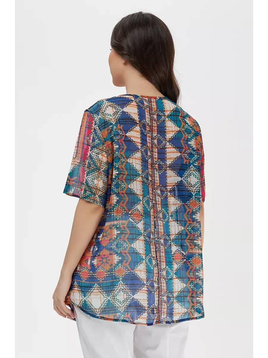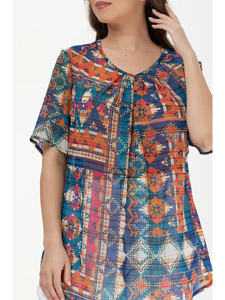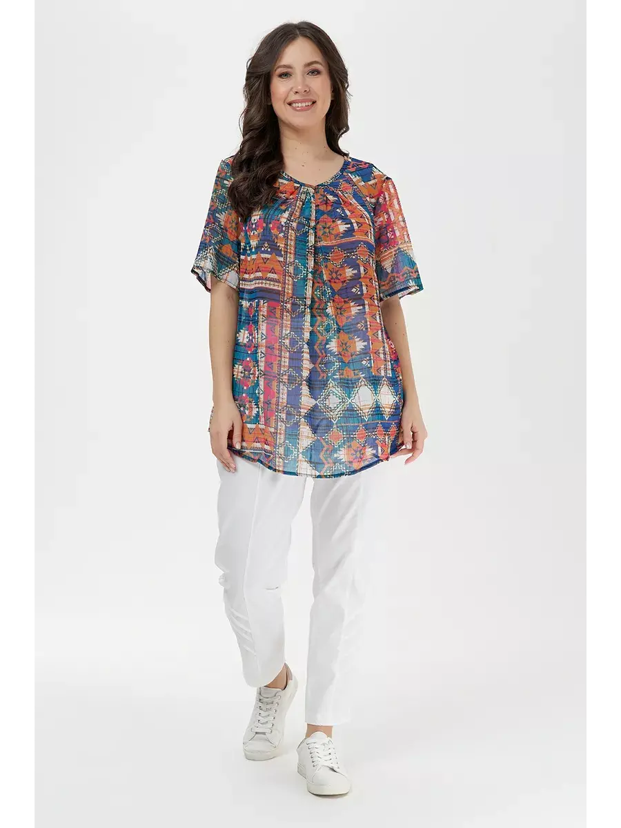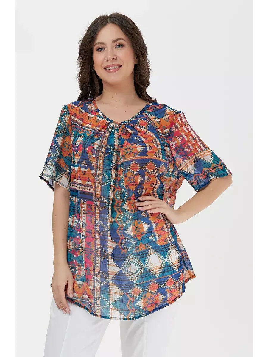 Стильная полупрозрачная блузка летней цветочной расцветки, похожая на воздушную пелерину. Женская блузка из шифона с широким рукавом-кимоно, круглым вырезом горловины и округлым низом, отделанным опиковкой. Модель скроет все несовершенства линий, даст возможность чувствовать себя комфортно и уверенно. Добавит образу легкости и романтики. Подойдет для женщин с любым типом фигуры. Повседневная блузка большого размера, выполнена из тонкого шифона с принтом. Стильная блузка женская больших размеров, Шифоновая блузка широкая, Пелерина женская летняя