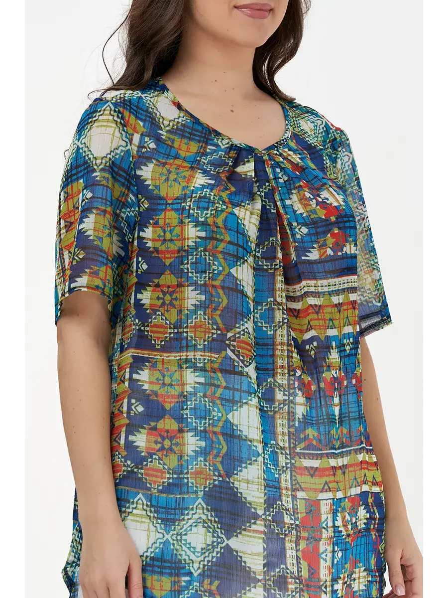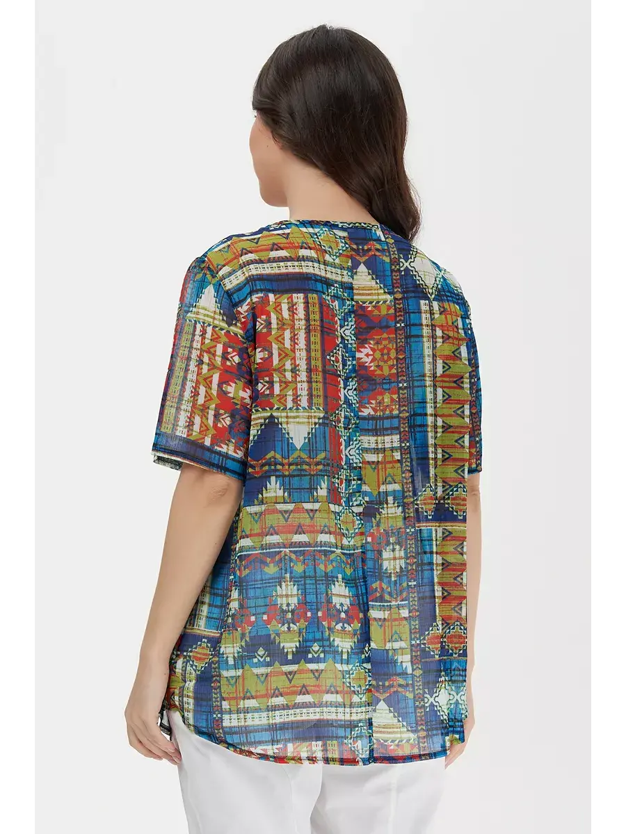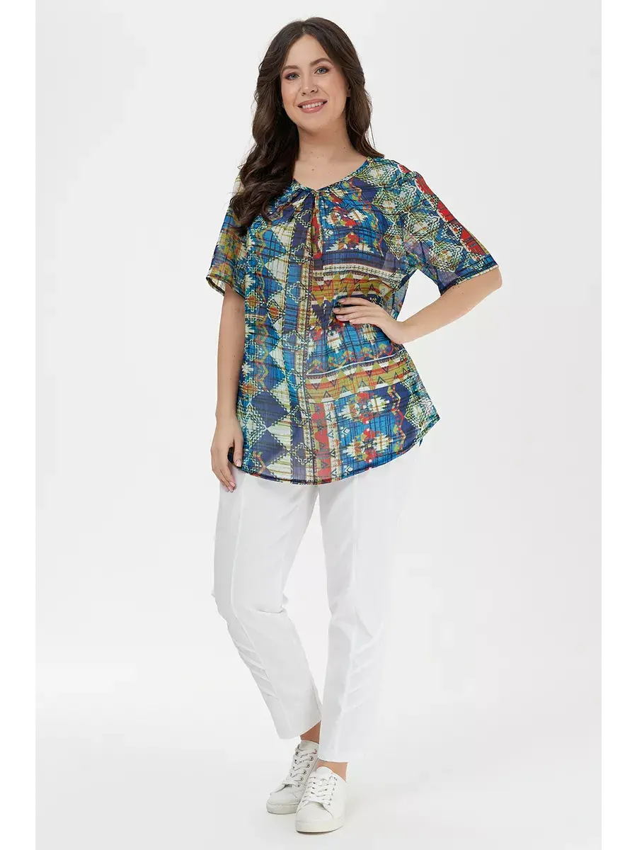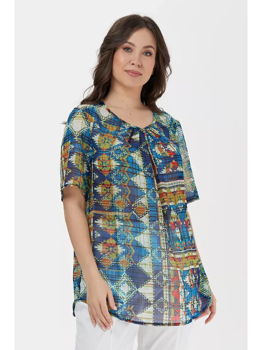 Стильная полупрозрачная блузка летней цветочной расцветки, похожая на воздушную пелерину. Женская блузка из шифона с широким рукавом-кимоно, круглым вырезом горловины и округлым низом, отделанным опиковкой. Модель скроет все несовершенства линий, даст возможность чувствовать себя комфортно и уверенно. Добавит образу легкости и романтики. Подойдет для женщин с любым типом фигуры. Повседневная блузка большого размера, выполнена из тонкого шифона с принтом. Стильная блузка женская больших размеров, Шифоновая блузка широкая, Пелерина женская летняя