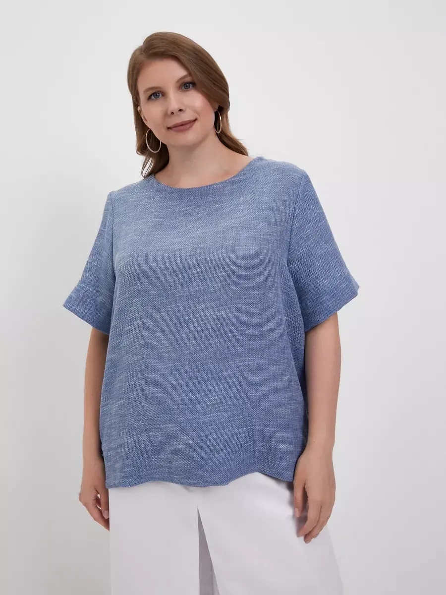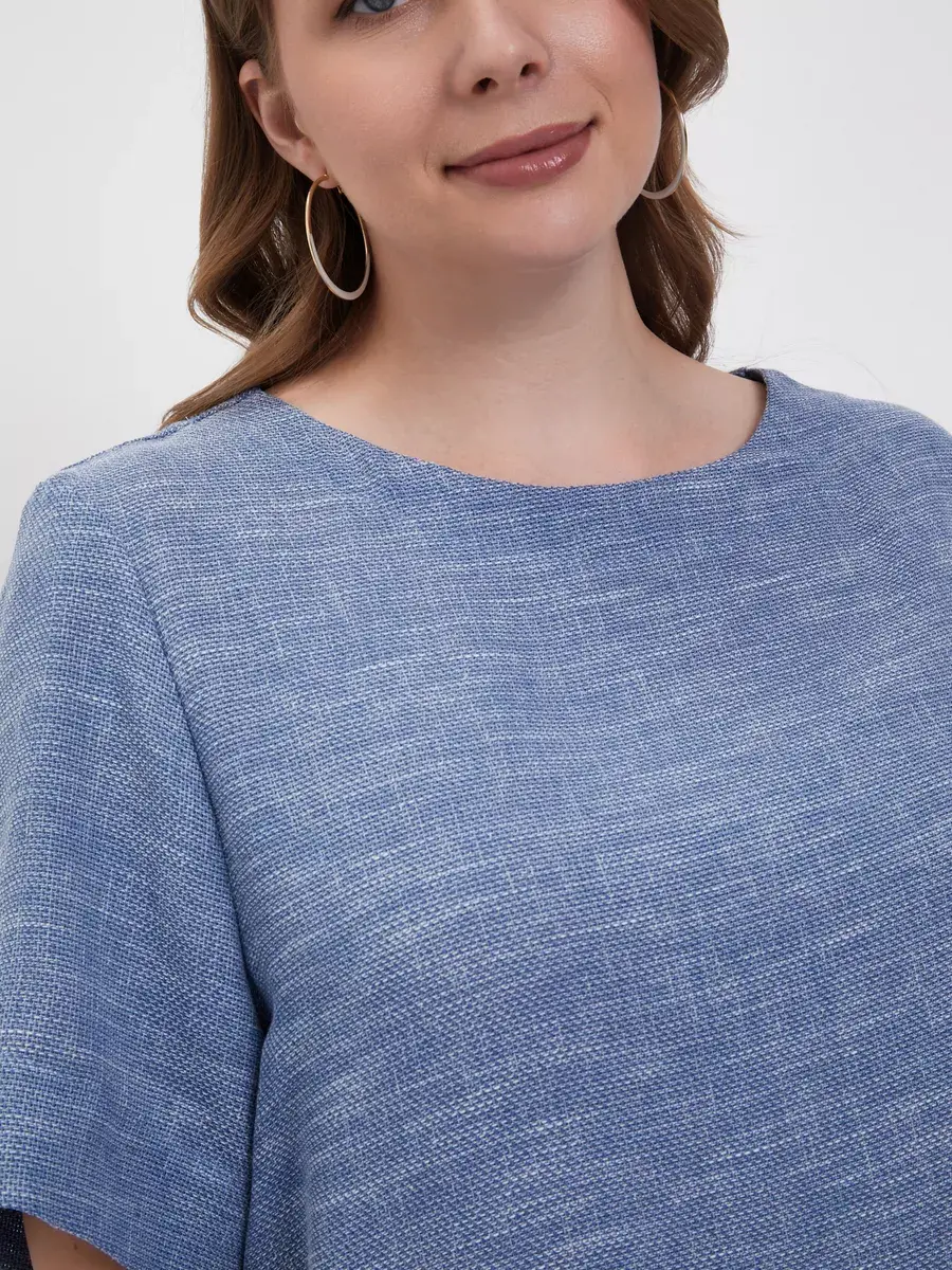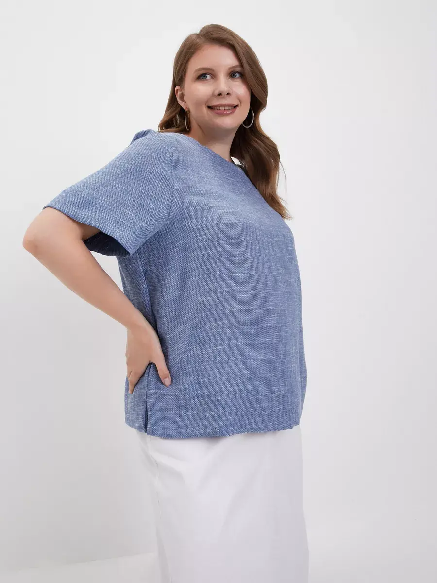 Легкая элегантная блузка больших размеров от бренда OLSI выполнена из ткани рогожка. Однотонная женская блузка с короткими широкими рукавами с манжетой по низу, плечо приспущено; с круглым вырезом по горловине. По низу блузки широкая подгибка с отделочной строчкой, с разрезами по бокам, - что придает дорогой вид. Фасон блузки широкий и прямой. Лаконичный крой блузки топа подойдет девушкам и женщинам любого возраста. Модель будет уместна в любой ситуации, как повседневная блузка на работу, в офис или учебу, на свидание. Блузка футболка отлично сочетается с джинсами, классическими брюками, юбкой. Данная модель станет базовой в гардеробе модниц.