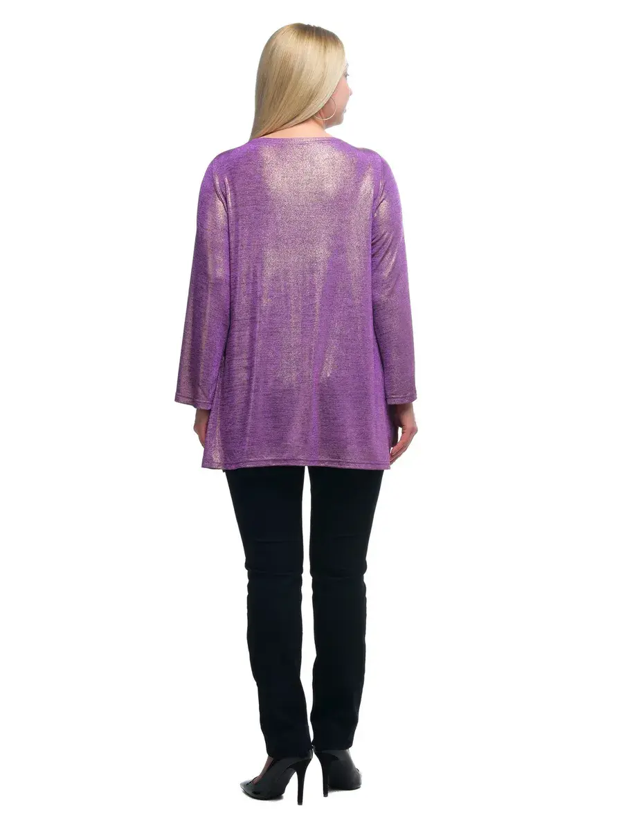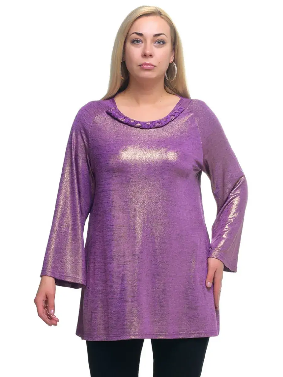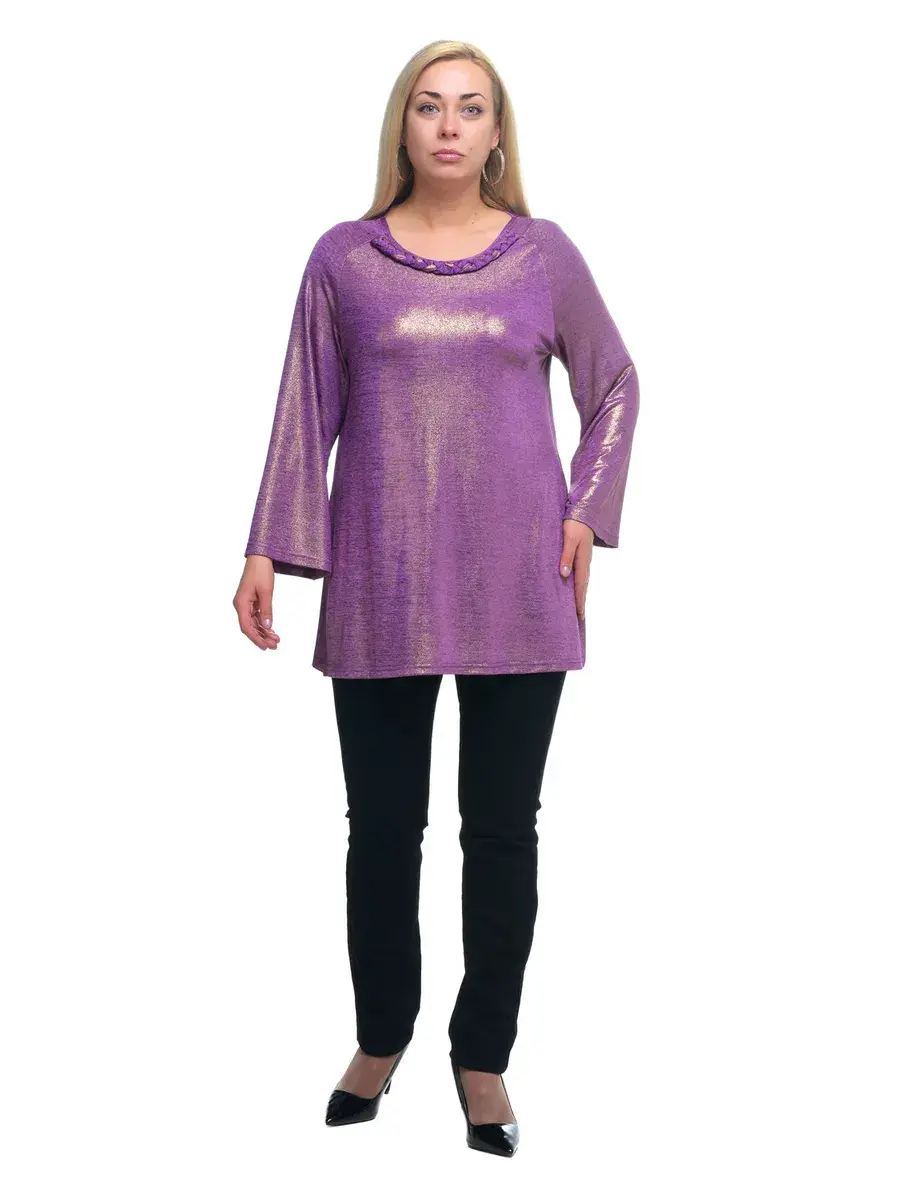 Эффектная туника шифт из тонкого трикотажа меланж с блестящим напылением фойлом. Модель A-силуэта с разрезами по бокам; с длинными рукавами-колокол; глубоким круглым вырезом горловины, отделанным декоративным плетением спереди. Лаконичность кроя и чистота линий придают изделию легкость, нивелируют особенности фигуры, придают плавность движениям. Идеальное сочетание элегантности и женственности. В таком наряде будет трудно остаться незаметной.
