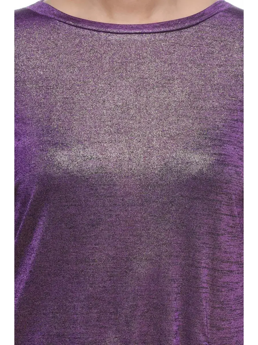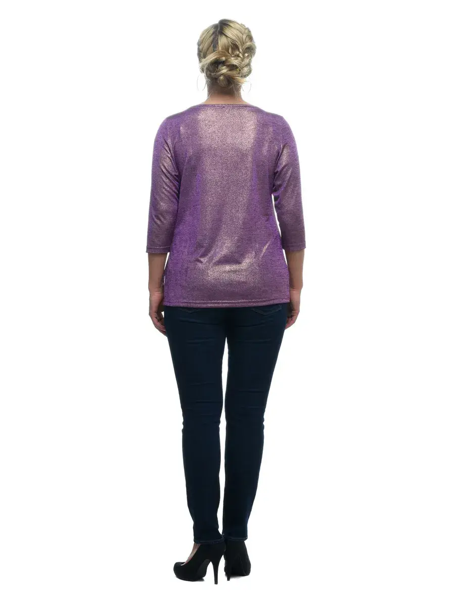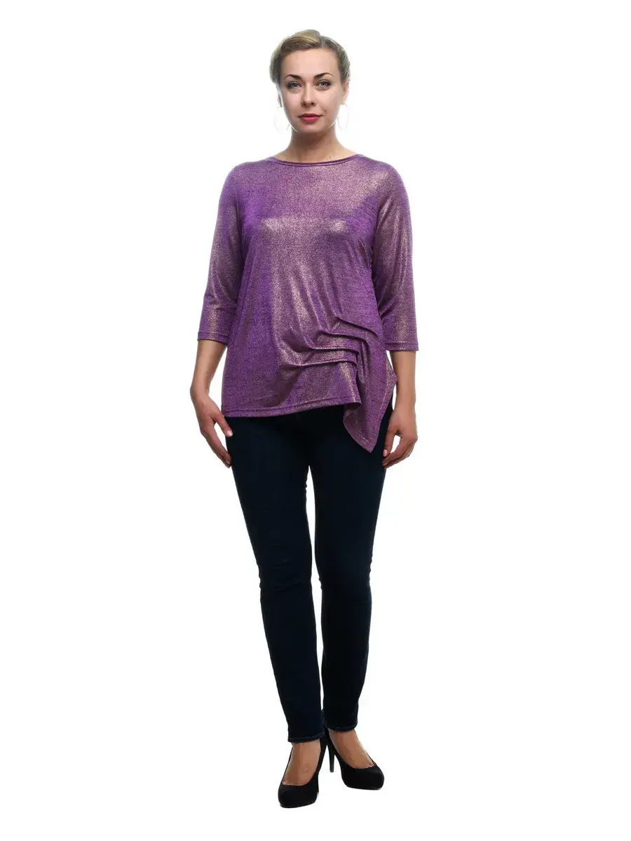Нарядная женская блуза из трикотажа масло с напылением. Модель полуприлегающего силуэта с асимметричным кроем; с округлым вырезом горловины, отделанным окантовкой. Туника выполнена из блестящего струящегося трикотажа-меланж; переди декоративная прошивка, игриво приподнимающая боковой косой срез. Модель визуально уравновешивает фигуру, укороченные рукава красиво открывают запястья, делают образ более изящным. Простые линии изделия придают силуэту стройность, а образу женственность. В таком наряде женщина с любым типом фигуры будет выглядеть празднично и элегантно. Подойдет любящим праздник, жизнерадостным кокеткам. Прекрасный недорогой вариант на праздник, новый год, юбилей, свадьбу и для корпоратива. Сочетается с брюками любых фасонов, и с юбкой.