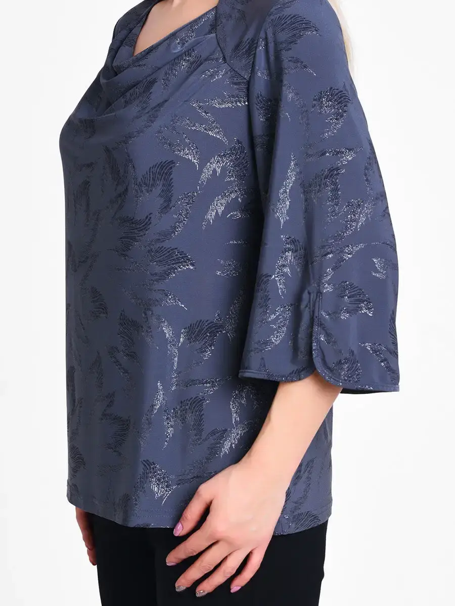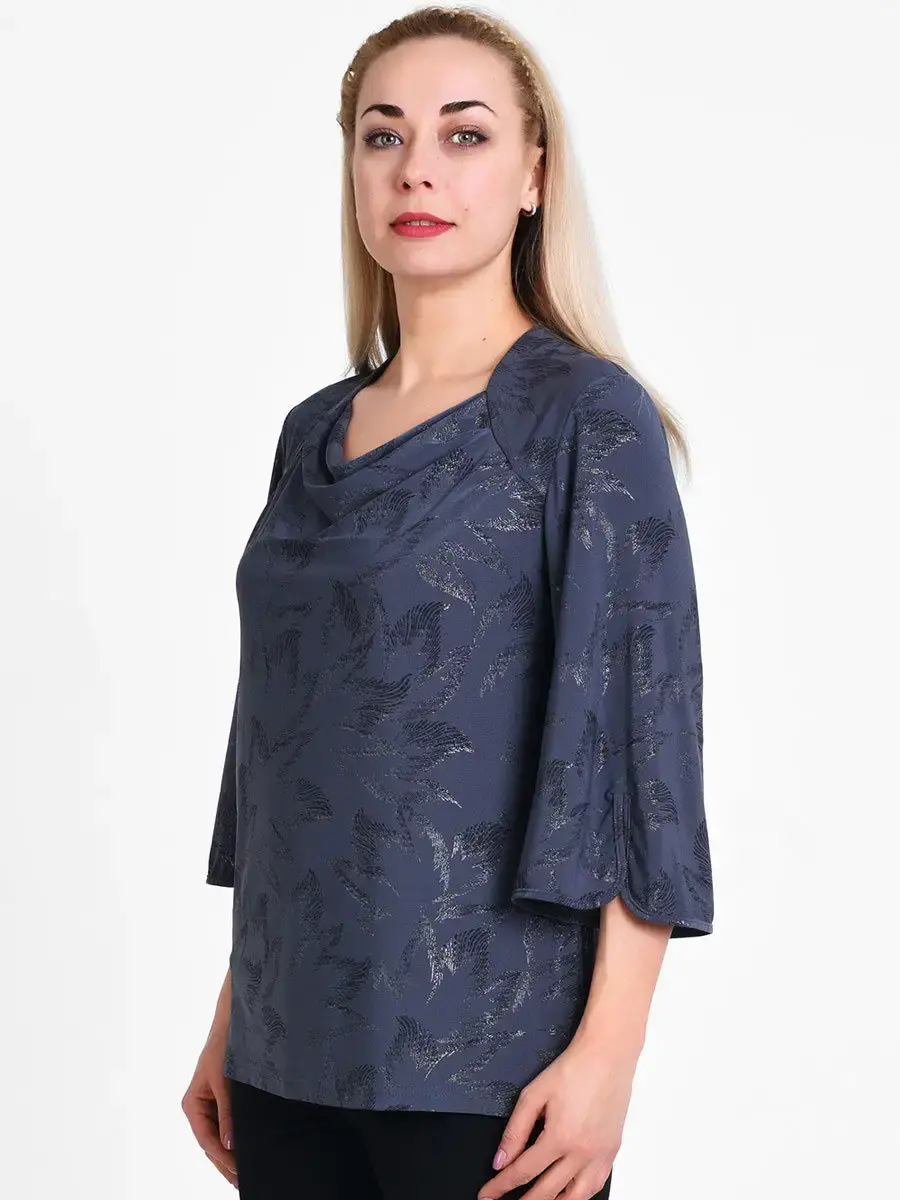 Элегантная блуза с набивным мерцающим рисунком, широкими у запястья рукавами с разрезами длиной 3/4, фантазийным воротником-водопад, соблазнительно приоткрывающим ключицы. Изделие выполнено из трикотажа-масло, который мягко обволакивает, но не обтягивает силуэт. Блуза подойдет как для торжественных случаев, так и для праздника в домашнем кругу. Длина изделия по спинке от 67см в р.48 до 72,5см в р.70, длина рукава 45см.