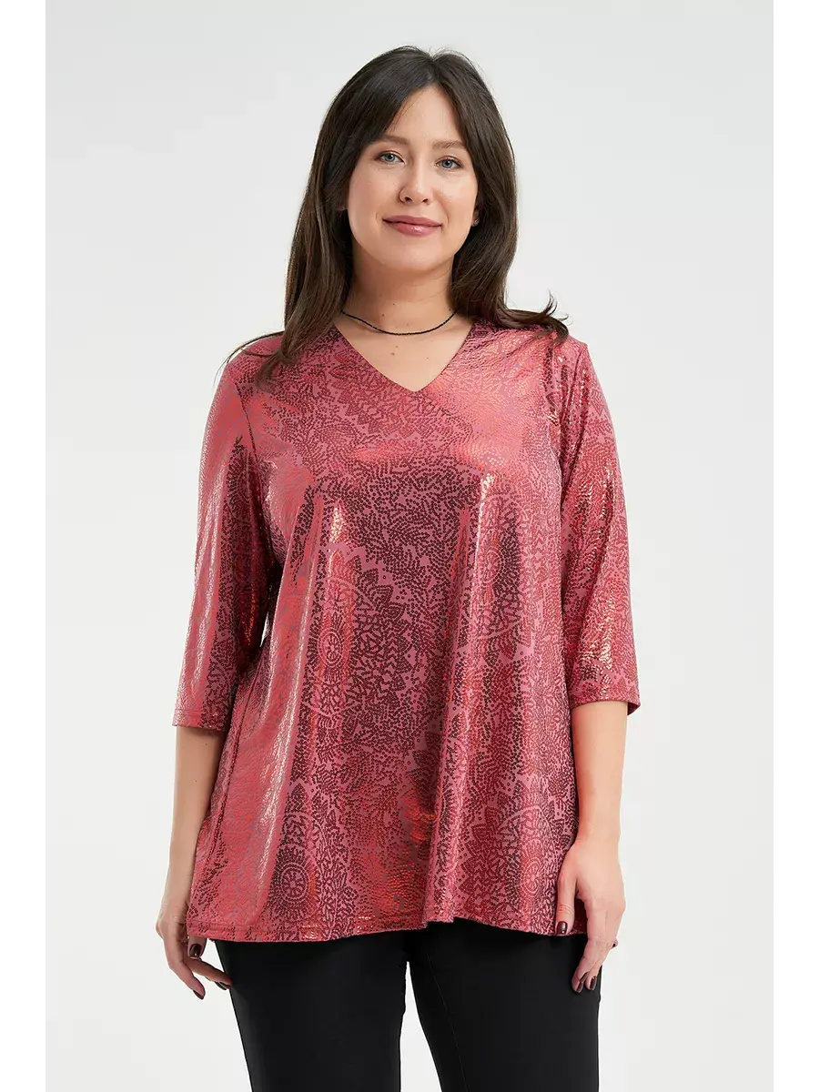 Нарядная туника больших размеров выполнена из трикотажного полотна масло с пайетками, V-образный вырез, рукав 3/4, расклешенная. Женская блузка праздничная имеет удлиненный силуэт. Нарядная блузка больших размеров с пайетками - в ней Вы будете блистать на любом мероприятии. Длина изделия по спинке:р.50-75см;р.52-76см;р.54-77см;р.56-77,5см;р.58-78,5см;р.60-79,5см;р.62-80см;р.64-81см;р.66-82см;р.68-83см;р.70-84см.Длина рукава во всех размерах 41см.