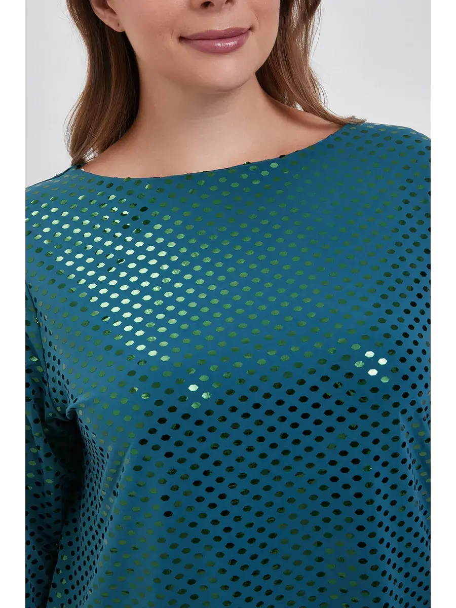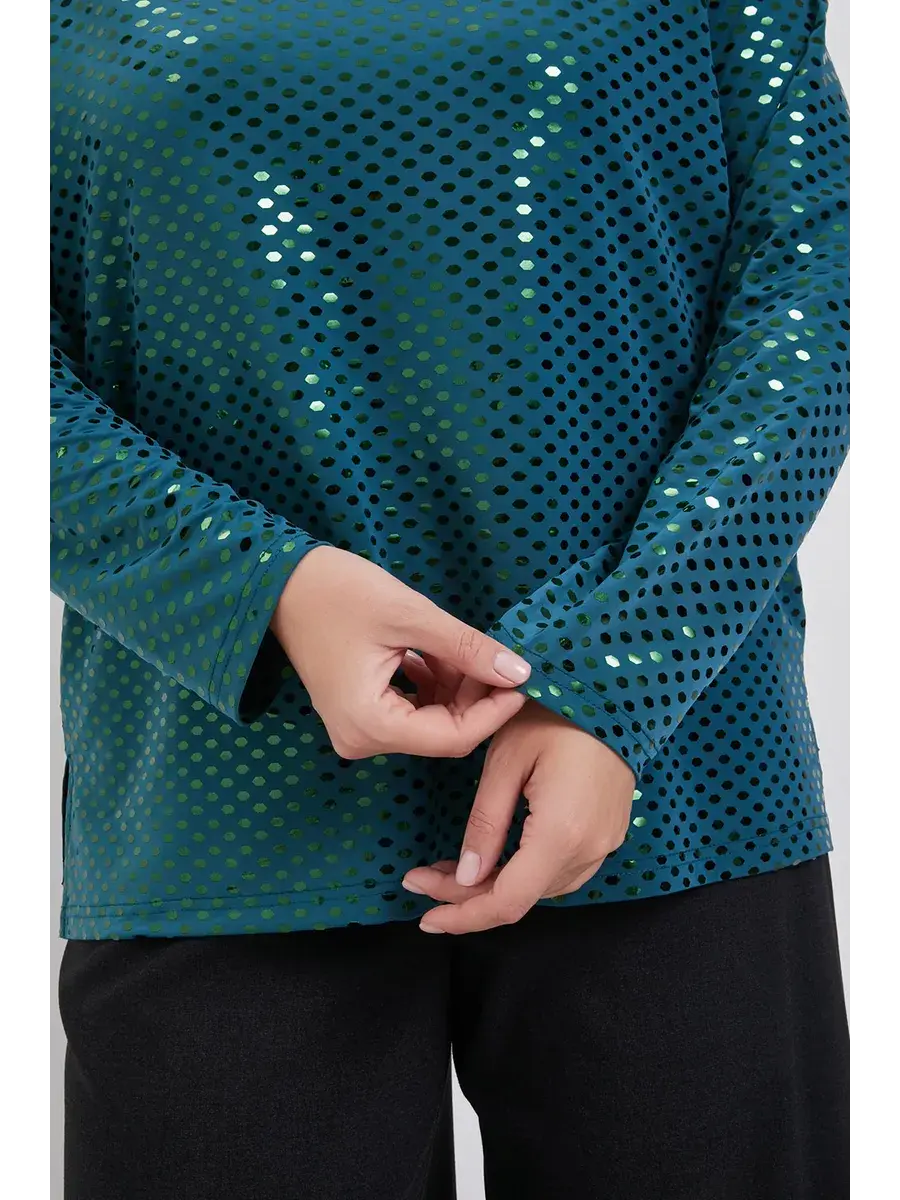 Блузка нарядная с пайетками от бренда OLSI - это идеальный выбор для тех, кто ценит элегантность и комфорт. Этот эксклюзивный предмет одежды создан для особых моментов, таких как новый год или вечерние мероприятия, и предлагает уникальное сочетание стиля и качества. Блузка выполнена из немнущегося материала, состоящего из 90% полиэстера и 10% эластана, обеспечивающего идеальное прилегание к телу без ограничения движений. Отличительной особенностью являются декоративные пайетки, выполненные методом принта глиттера, добавляют изысканности и блеска, делая вас центром внимания на любом торжестве. Без застежки конструкция блузки обеспечивает легкость надевания и снимания. Длинные рукава и женский покрой подчеркивают женственность и изящество. Выбирайте эту блузку для создания незабываемых образов на любых праздниках и торжествах.
