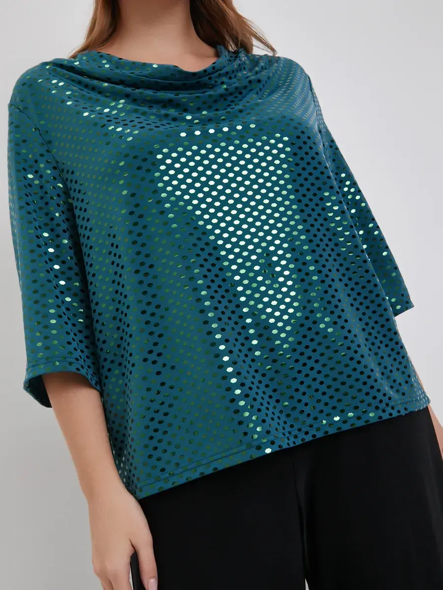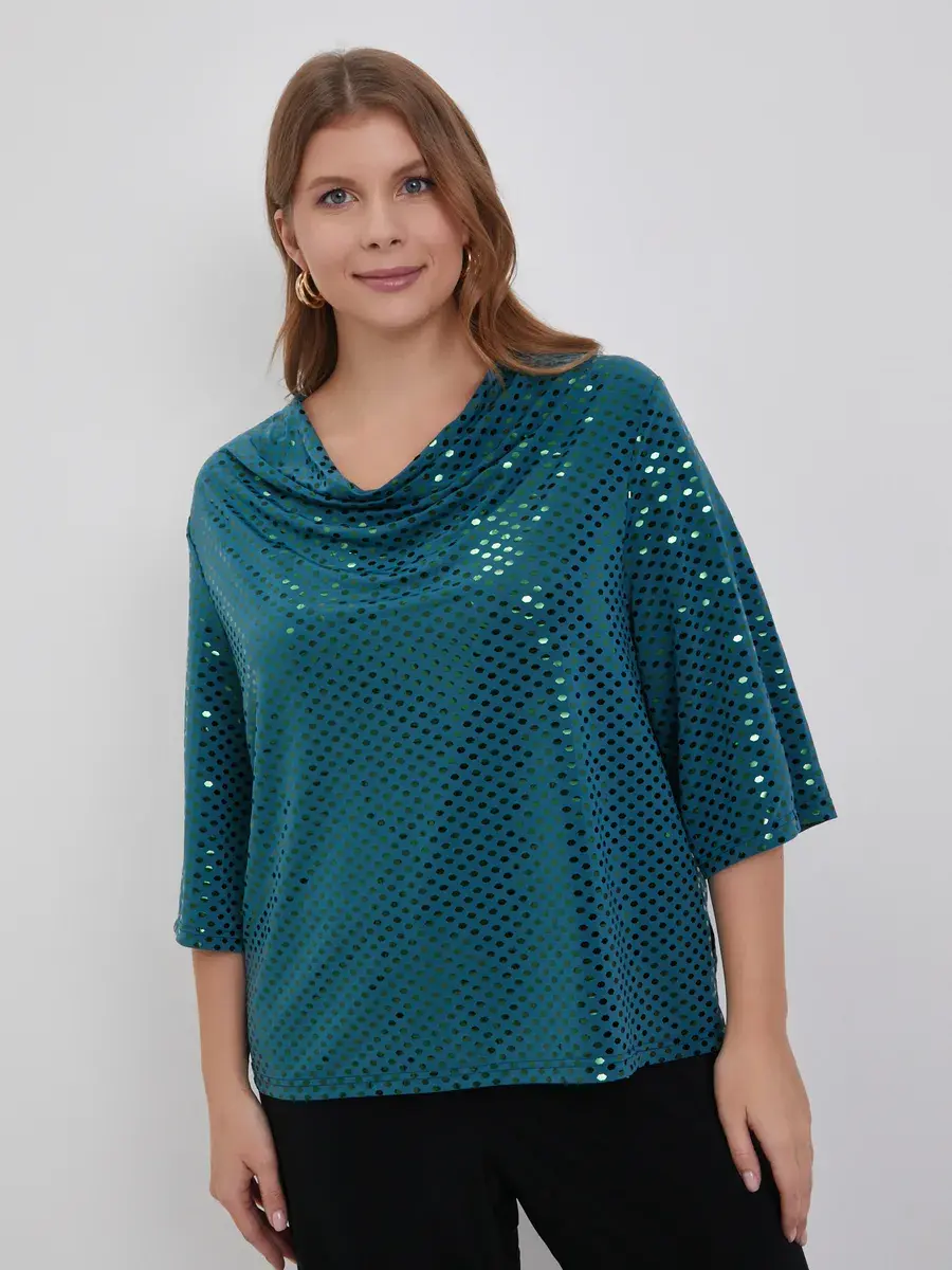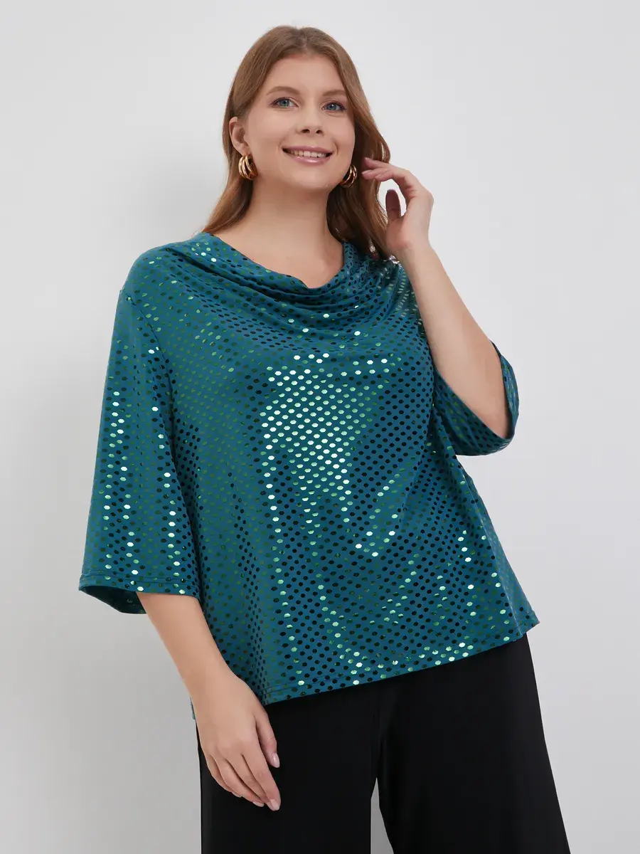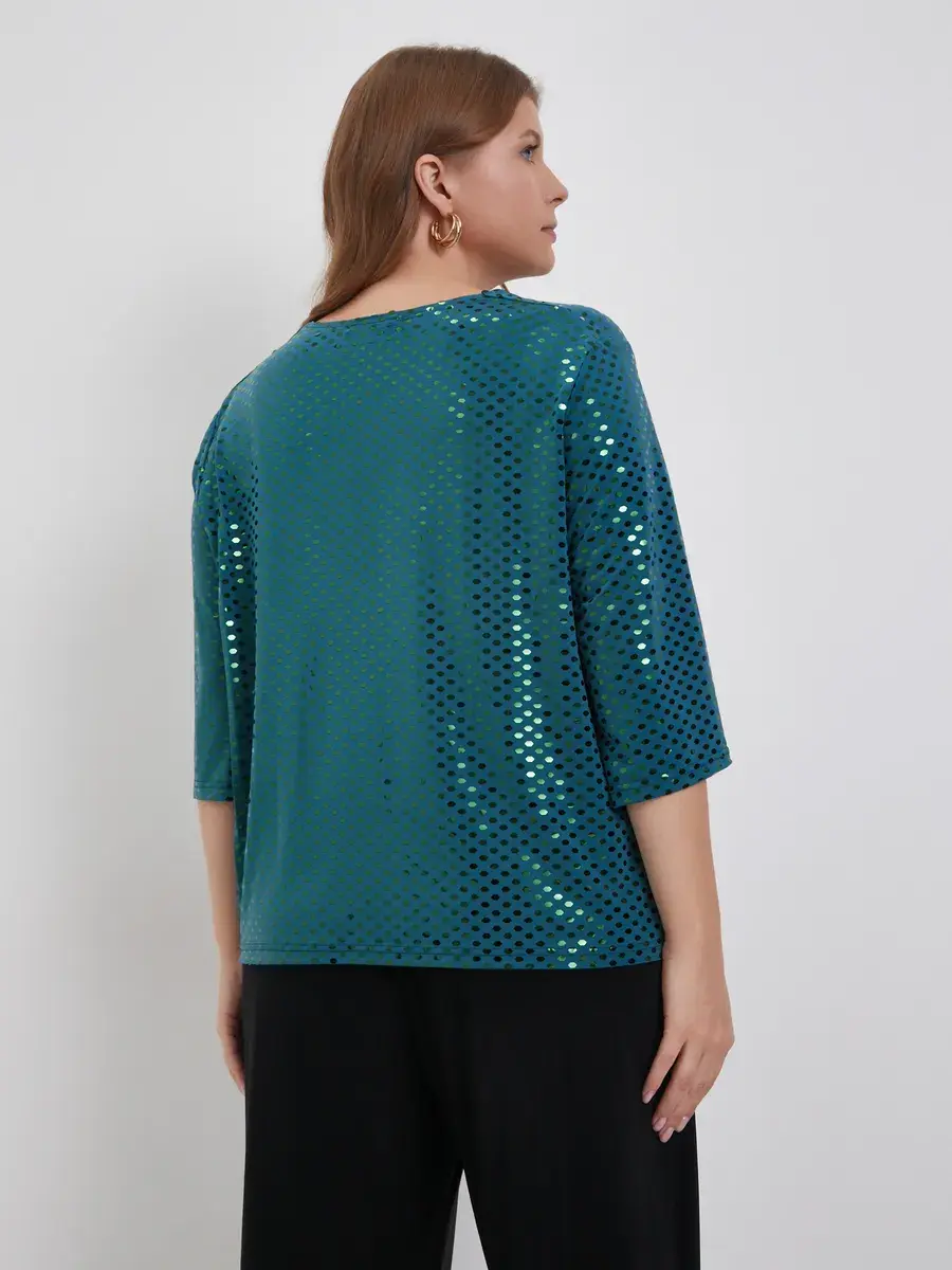 Материал, из которого сшита блуза, — это трикотаж с пайетками, отличающийся повышенной износостойкостью. Блузон не теряет форму и цвет после многократных стирок, а эластичная ткань подчёркивает фигуру, обеспечивая комфорт и удобство.