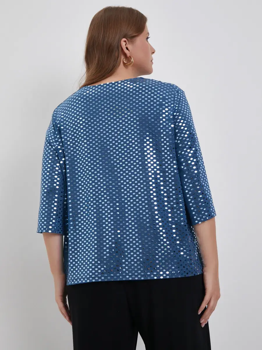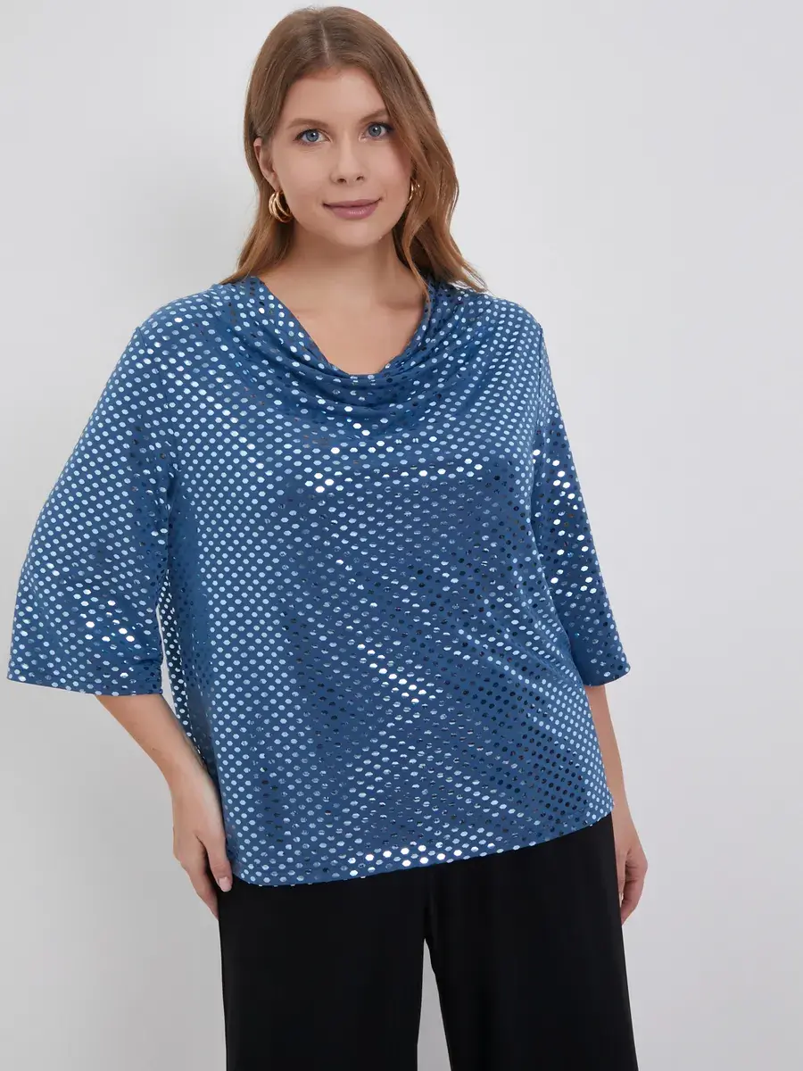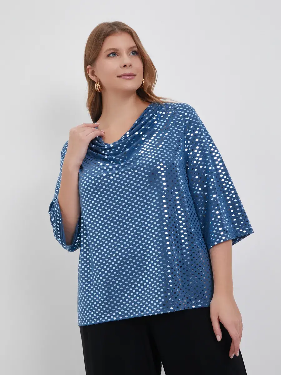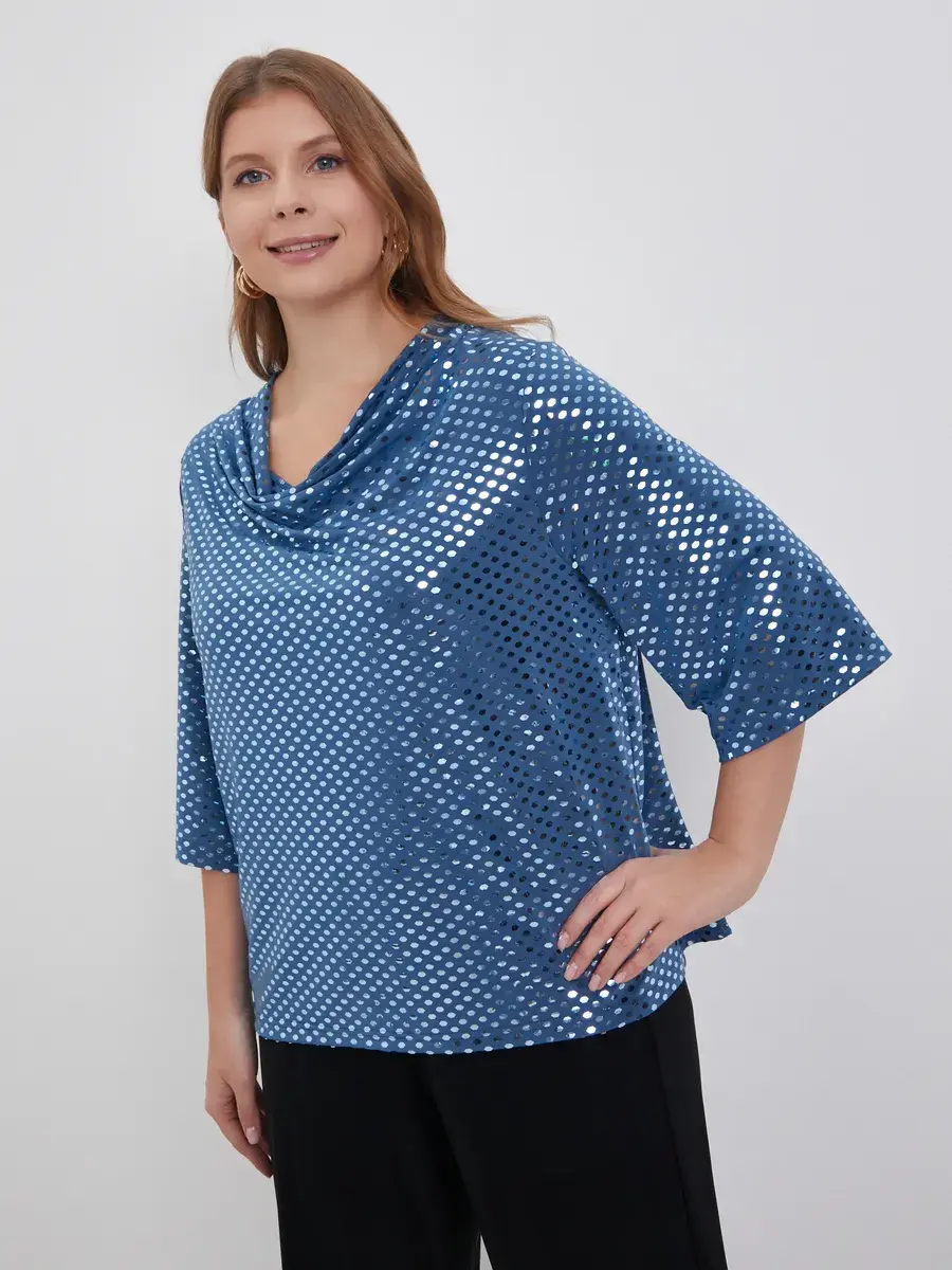 Материал, из которого сшита блуза, — это трикотаж с пайетками, отличающийся повышенной износостойкостью. Блузон не теряет форму и цвет после многократных стирок, а эластичная ткань подчёркивает фигуру, обеспечивая комфорт и удобство.