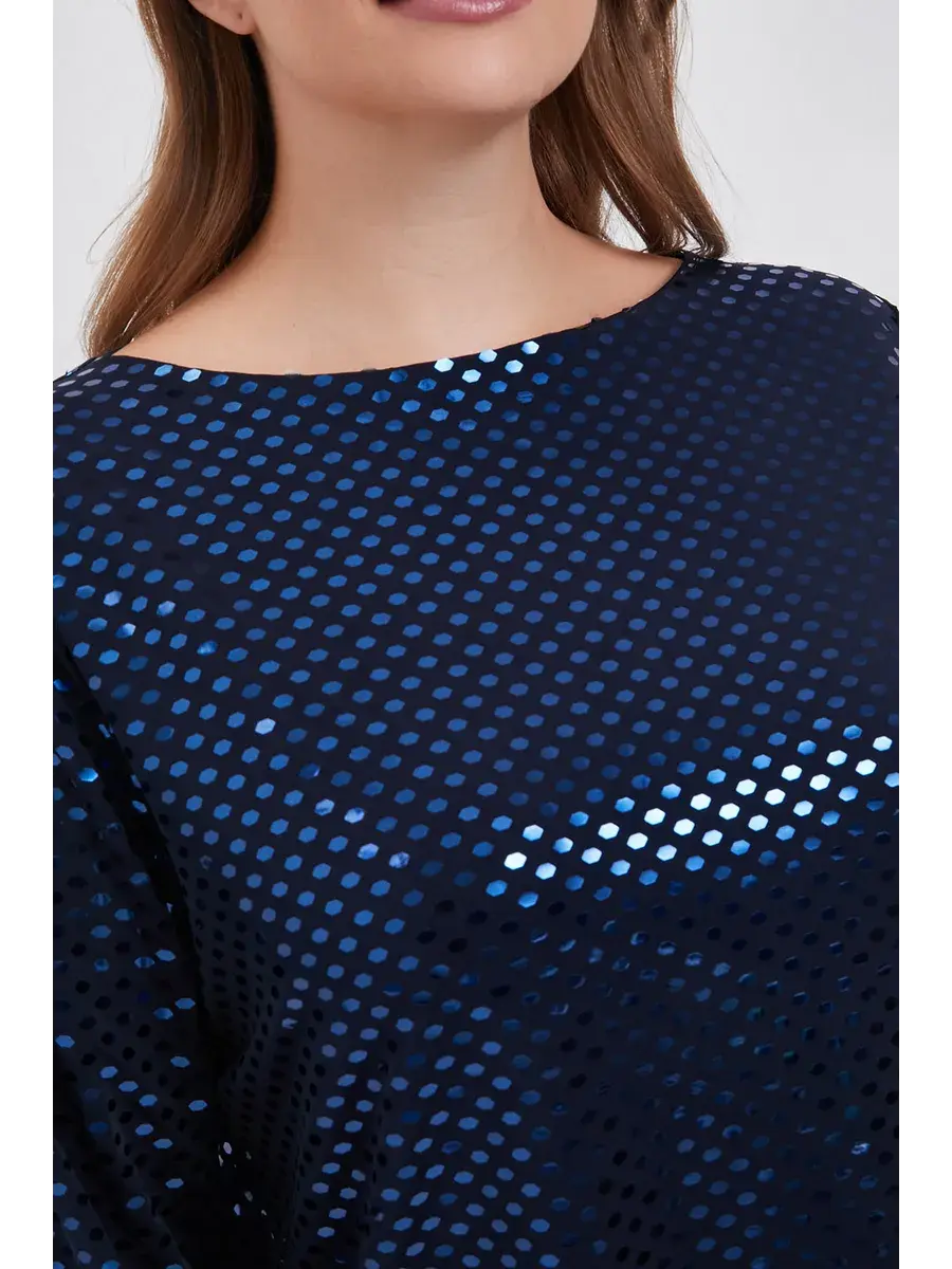 Блузка нарядная с пайетками от бренда OLSI - это идеальный выбор для тех, кто ценит элегантность и комфорт. Этот эксклюзивный предмет одежды создан для особых моментов, таких как новый год или вечерние мероприятия, и предлагает уникальное сочетание стиля и качества. Блузка выполнена из немнущегося материала, состоящего из 90% полиэстера и 10% эластана, обеспечивающего идеальное прилегание к телу без ограничения движений. Отличительной особенностью являются декоративные пайетки, выполненные методом принта глиттера, добавляют изысканности и блеска, делая вас центром внимания на любом торжестве. Без застежки конструкция блузки обеспечивает легкость надевания и снимания. Длинные рукава и женский покрой подчеркивают женственность и изящество. Выбирайте эту блузку для создания незабываемых образов на любых праздниках и торжествах.