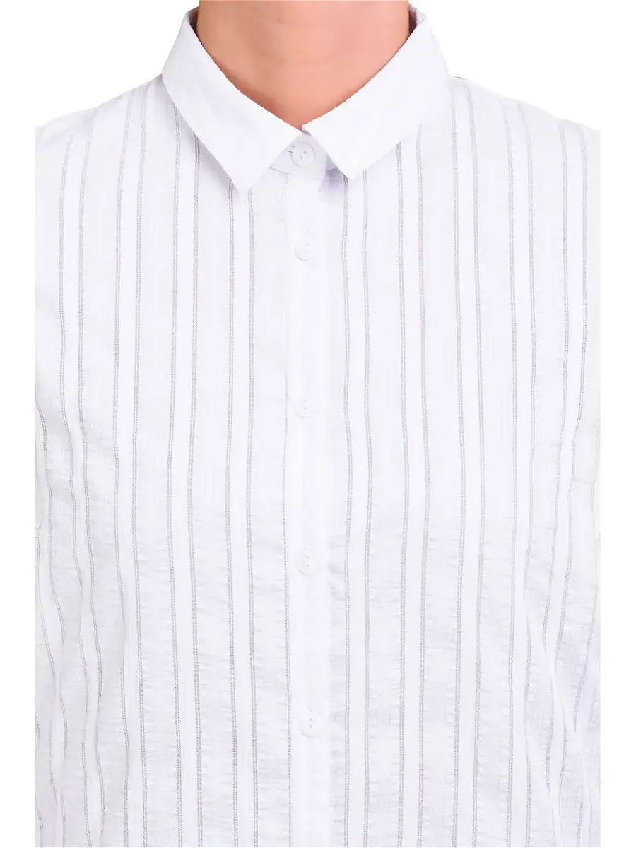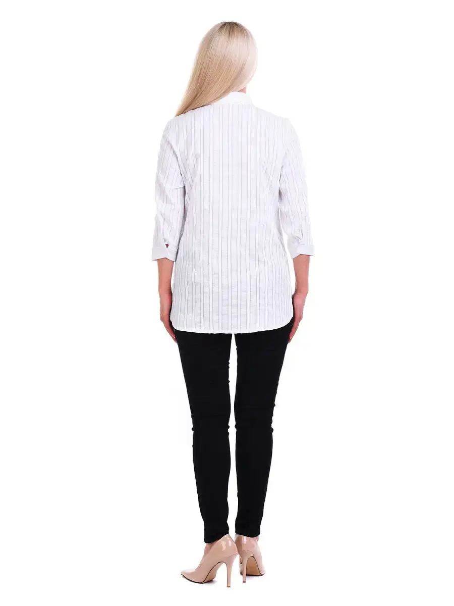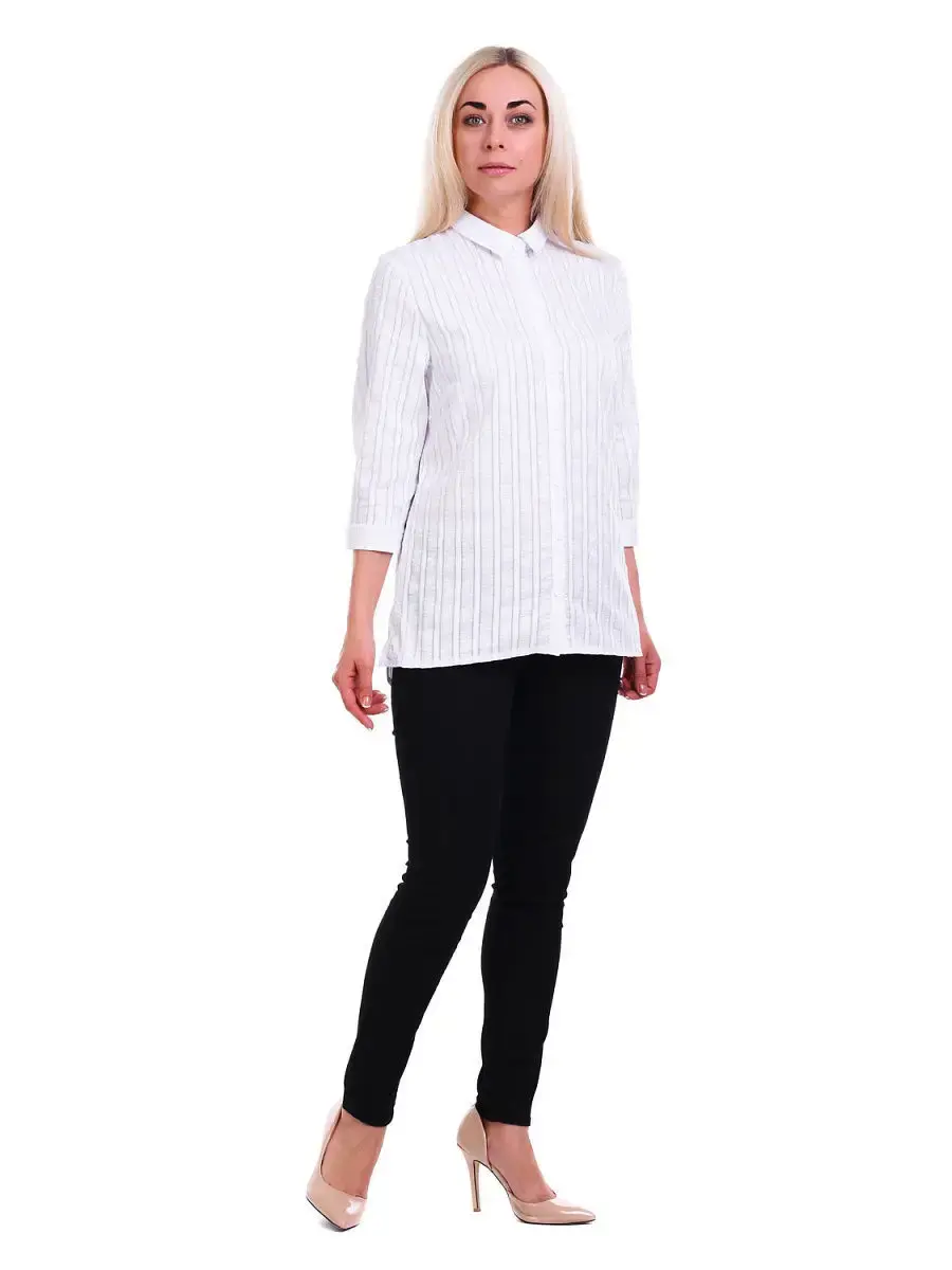 Женская блузка-рубашка прямого кроя выполнена из хлопка со стрейчем, отложной воротник, рукав 3/4 на манжете с пуговицей.Длина изделия по спинке:48- 73см50- 73,5см52- 74см54- 74,5см56- 75см58- 75,5см60- 76см62- 76,5см64- 77см66- 77,5см68- 78см70- 78,5смДлина рукава-46см
