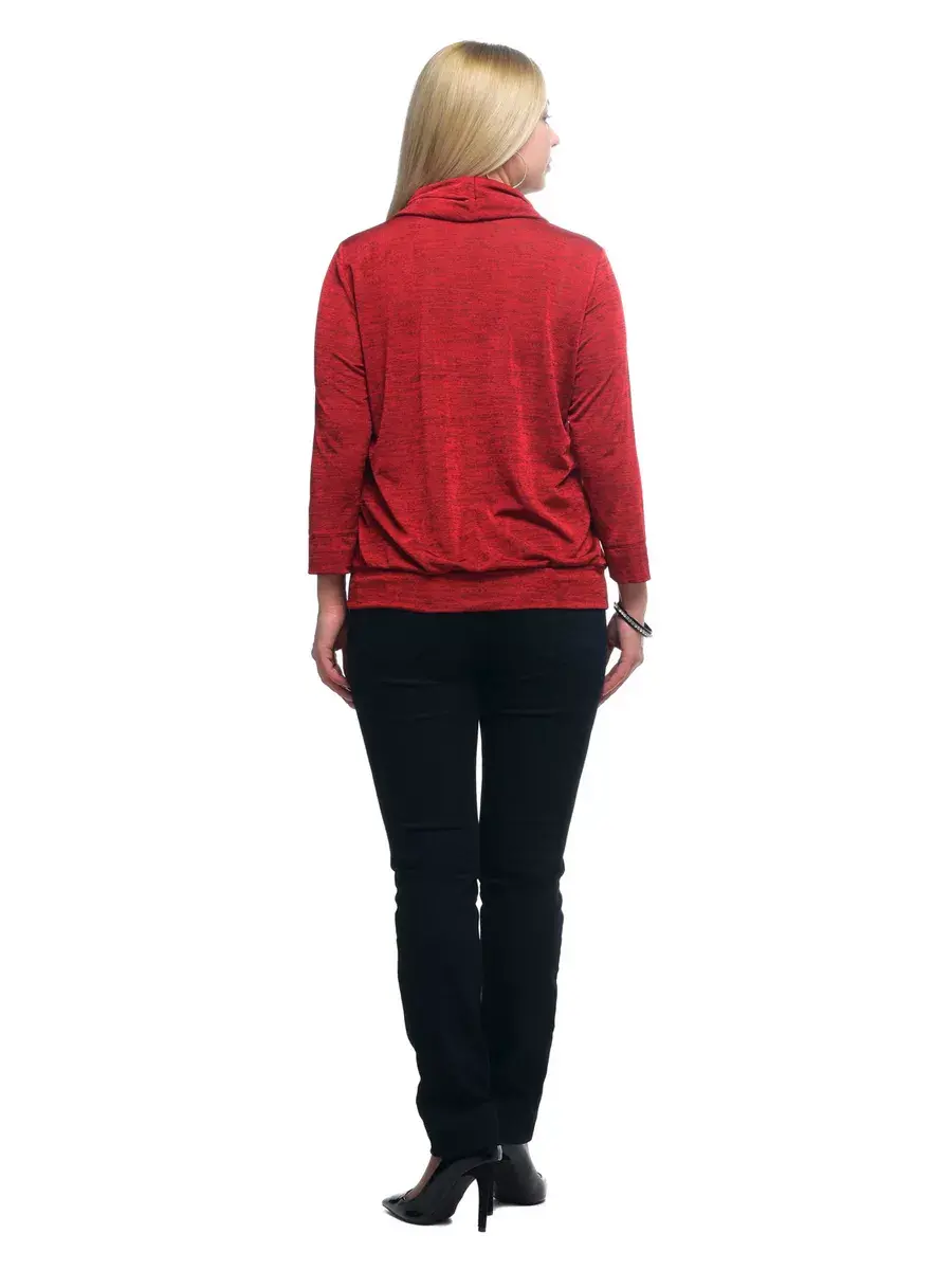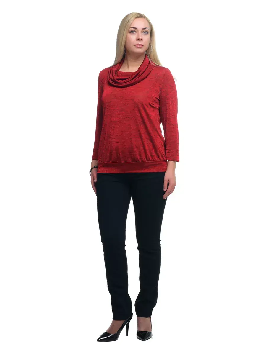 Стильная женская кофта из меланжевого нежного трикотажа с втачным, чуть укороченным, рукавом на манжете, элегантным воротником-качели. Блузка с напуском по низу, с круговым эластичным поясом на бедрах. Эта модель - удачный пример одежды для тех, кто ценит удобство, простоту и элегантность. Благодаря крою, скрывает особенности фигуры, отлично походит тем, кто обладает неидеальными пропорциями.