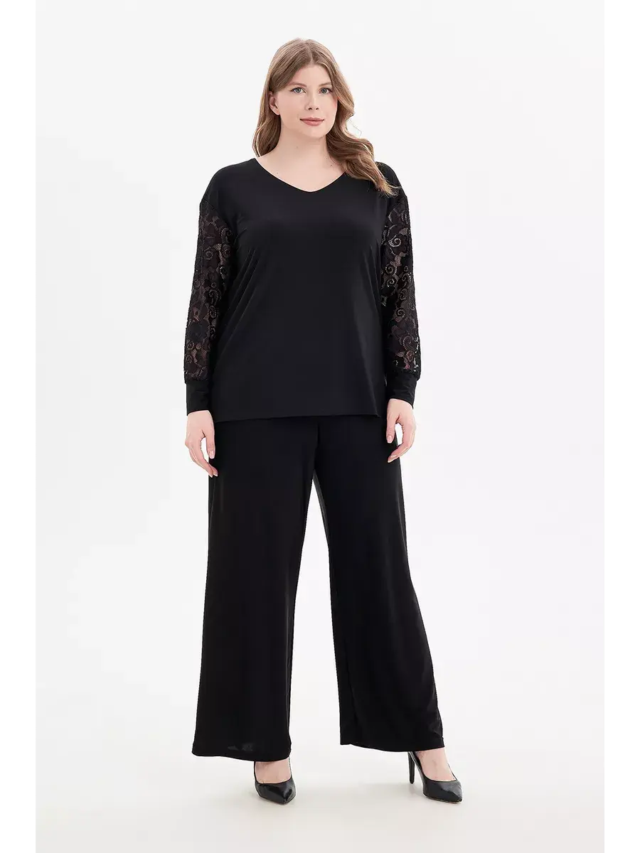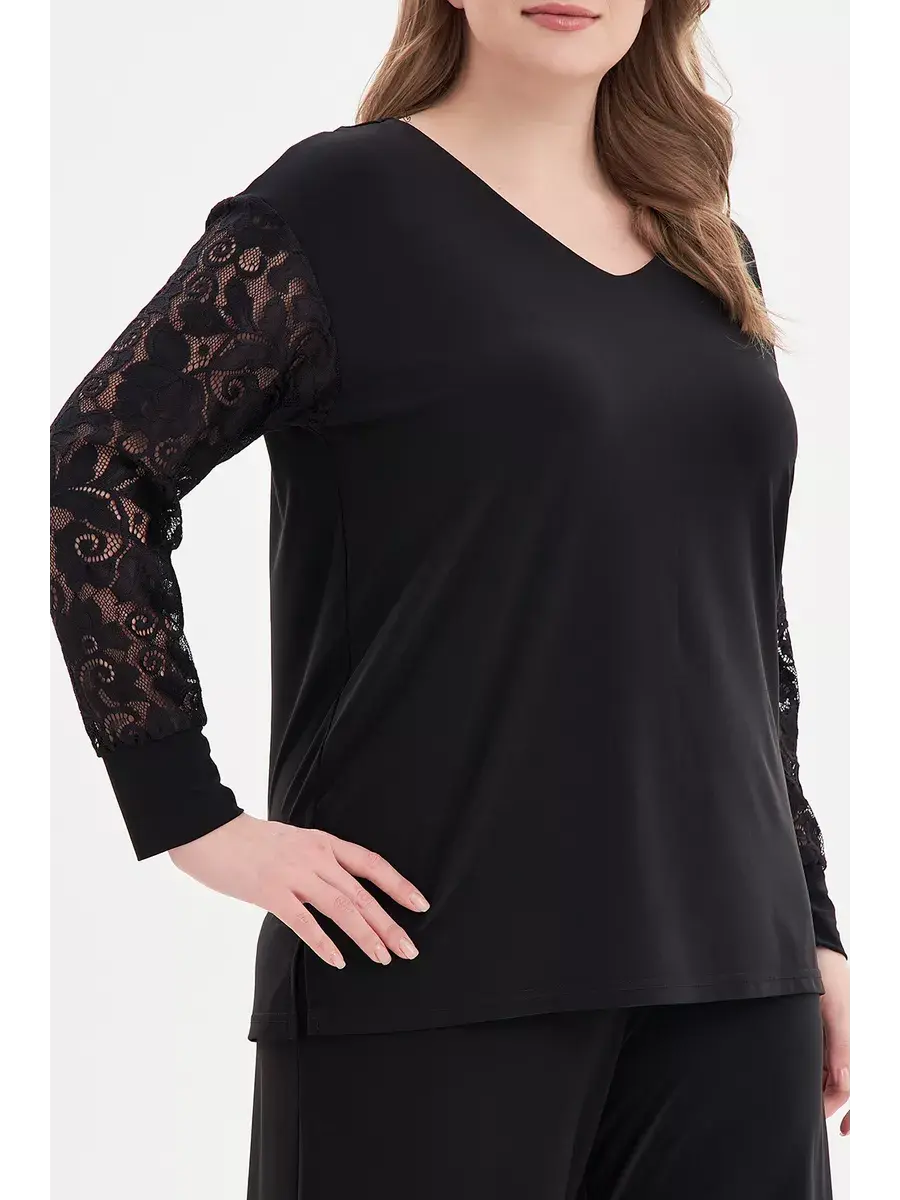 Элегантная нарядная туника, выполнена в комбинации трикотажного полотна и кружевной ткани. Модель с V-образным вырезом горловины, втачными длинными кружевными рукавами с манжетами. Туника подчеркивает красоту рук и шеи, придает образу женственность.Длина по спинке/ширина по груди/ширина низ соответственно:р.50-69см/56,0см/57,2смр.52-69,5см/58,0см/59,3смр.54-70см/60,0см/61,3смр.56-70,5см/62,0см/63,3смр.58-71см/64,0см/65,4смр.60-71,5см/66,0см/67,4смр.62-72см/68,0см/69,4р.64-72,5см/70,0см/71,5смр.66-73см/72,0см/73,5смр.68-73,5см/74,0см/75,5смр.70-74см/76,0см/77,6смр.72-74,5см/78,0см/79,6смДлина рукава 54см
