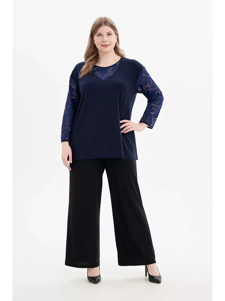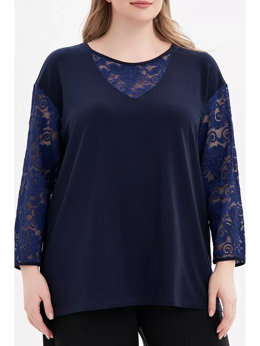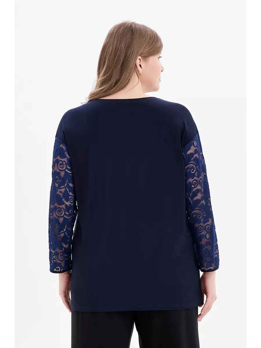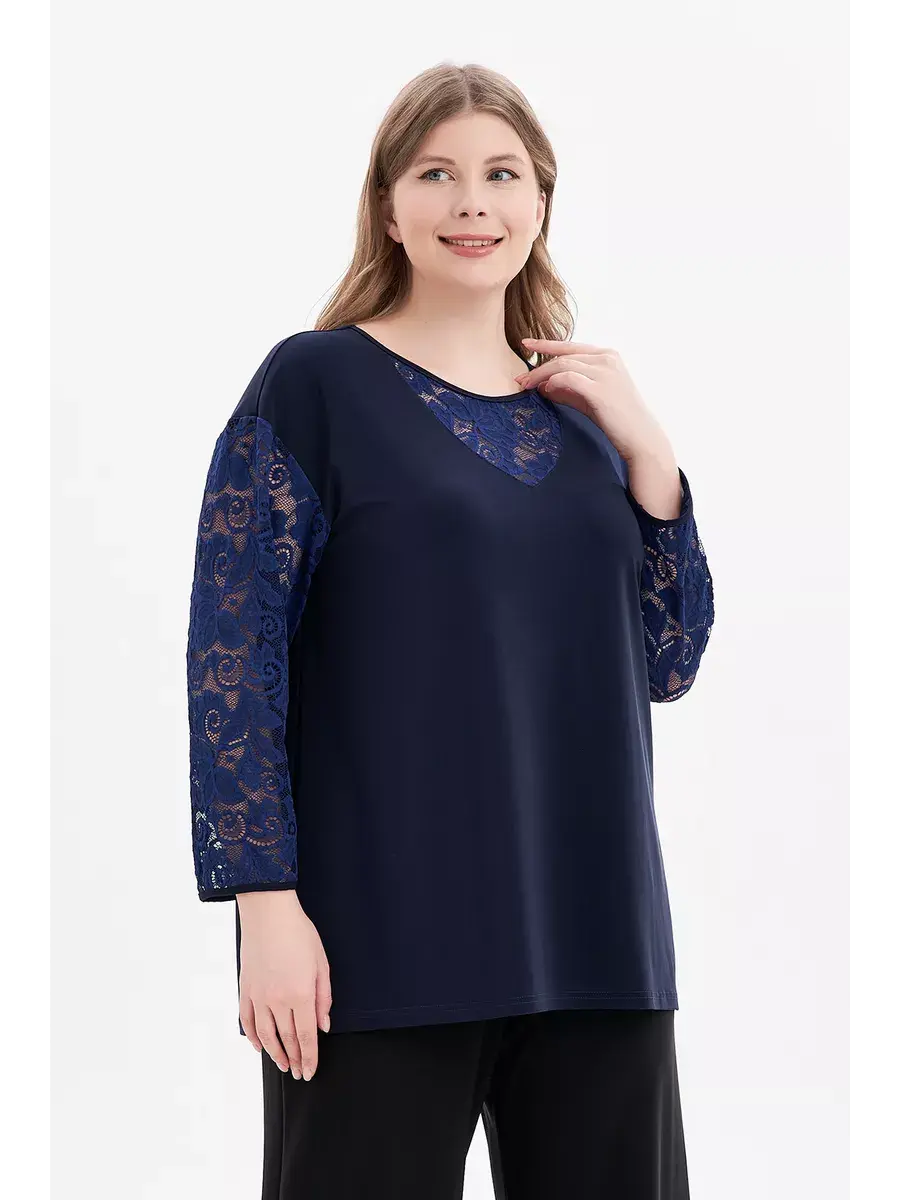 Элегантная нарядная туника больших размеров бренда OLSI, выполнена в комбинации трикотажного полотна и кружевной ткани. Модель расклешенная книзу; с круглым вырезом и кружевной V-образной вставкой, втачными длинными кружевными рукавами. Блузка трикотажная подчеркивает красоту рук и шеи, придает образу женственность.Длина по спинке/ширина по груди/ширина низ соответственно:р.50-69см/56,0см/57,2смр.52-69,5см/58,0см/59,3смр.54-70см/60,0см/61,3смр.56-70,5см/62,0см/63,3смр.58-71см/64,0см/65,4смр.60-71,5см/66,0см/67,4смр.62-72см/68,0см/69,4р.64-72,5см/70,0см/71,5смр.66-73см/72,0см/73,5смр.68-73,5см/74,0см/75,5смр.70-74см/76,0см/77,6смр.72-74,5см/78,0см/79,6смДлина рукава 54см