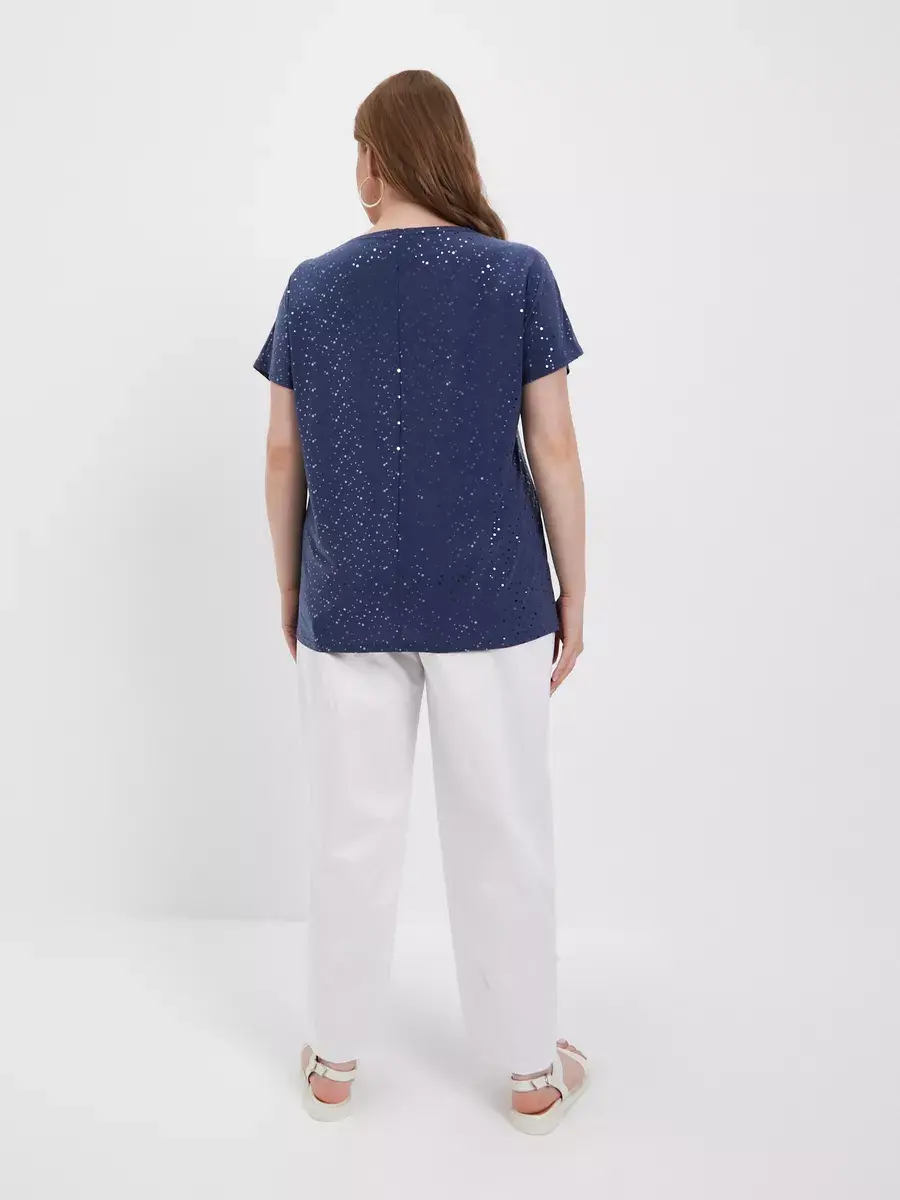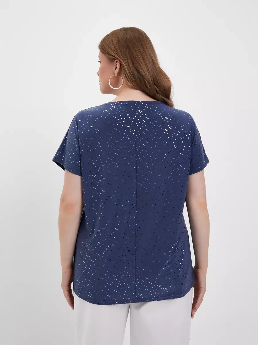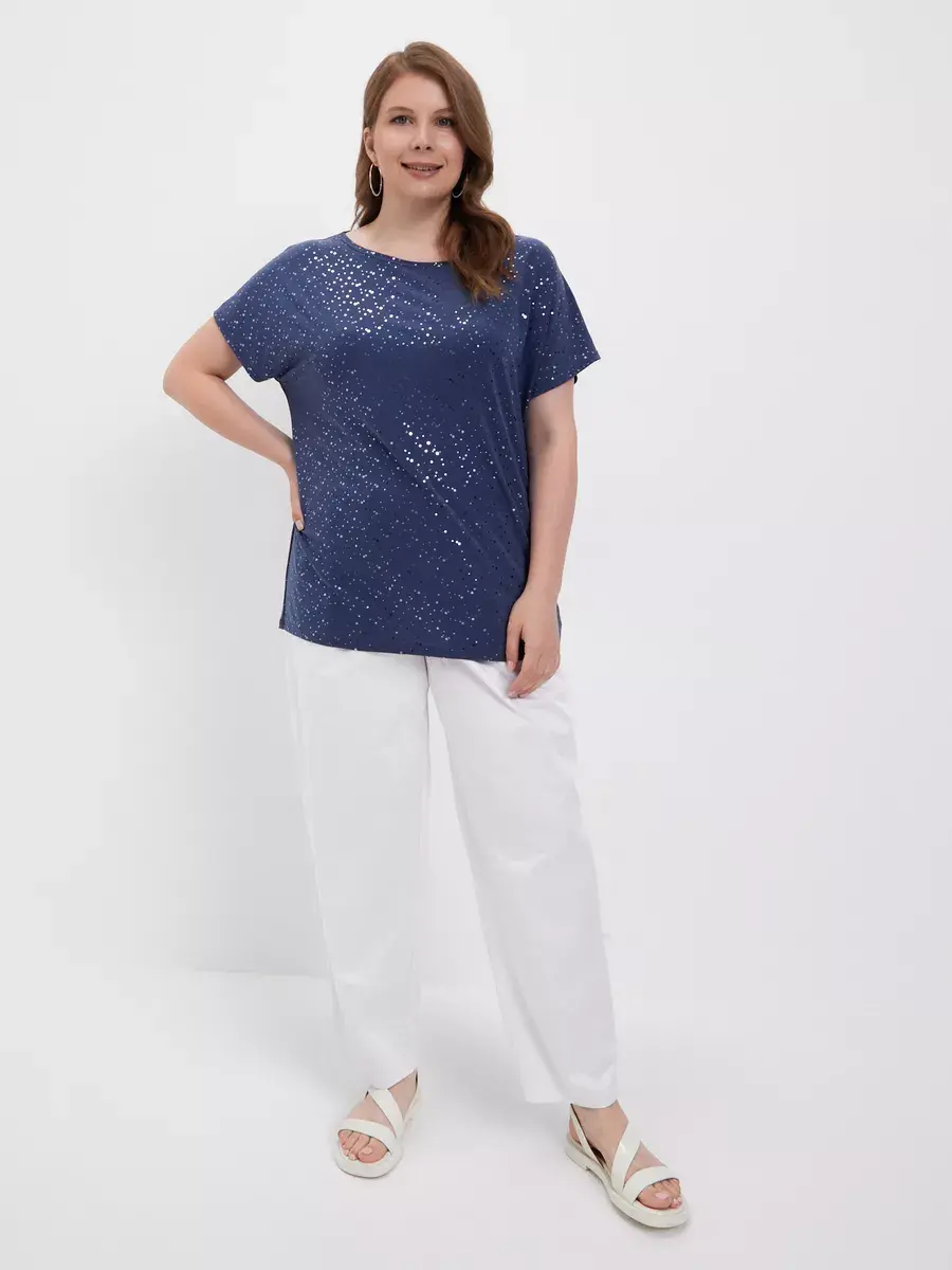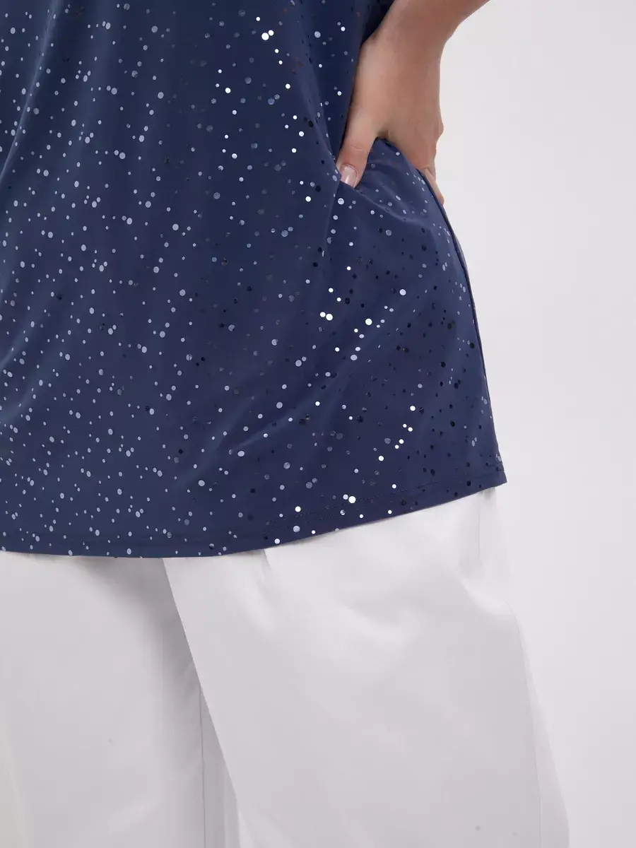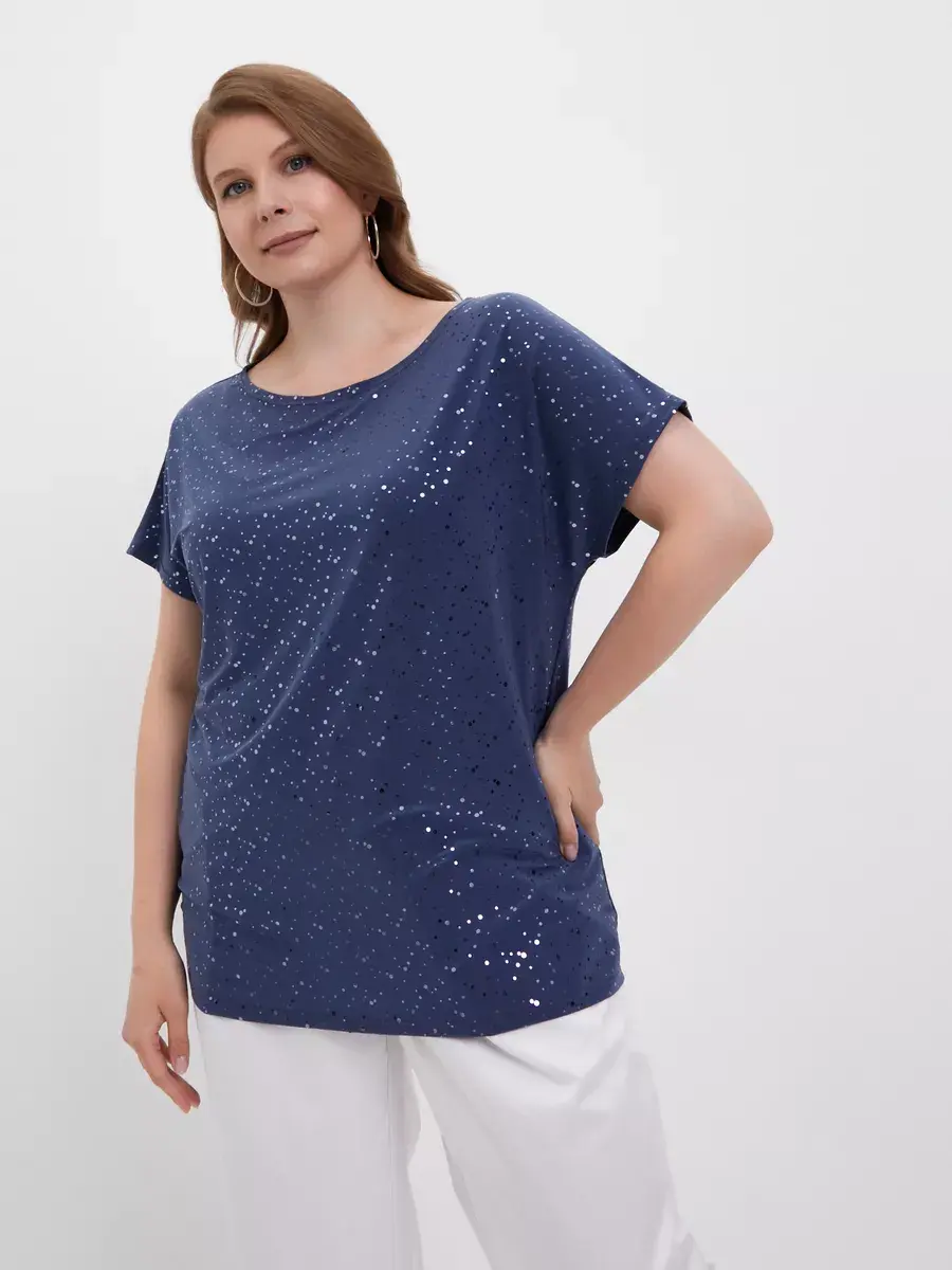 Особенностью данной модели являются изящные пайетки, добавляющие блузке изысканности и элегантности. Благодаря своему дизайну, блузка идеально подходит как для офисного стиля, так и для вечерних мероприятий, а также может стать отличным выбором для женщин с большими размерами.