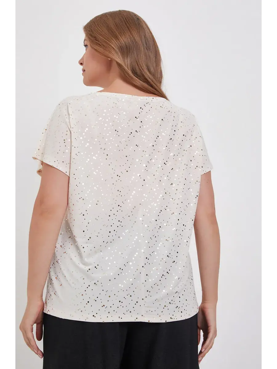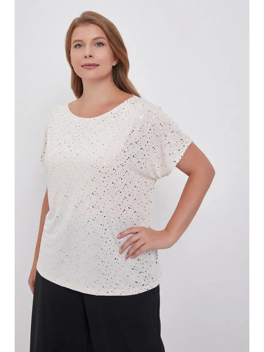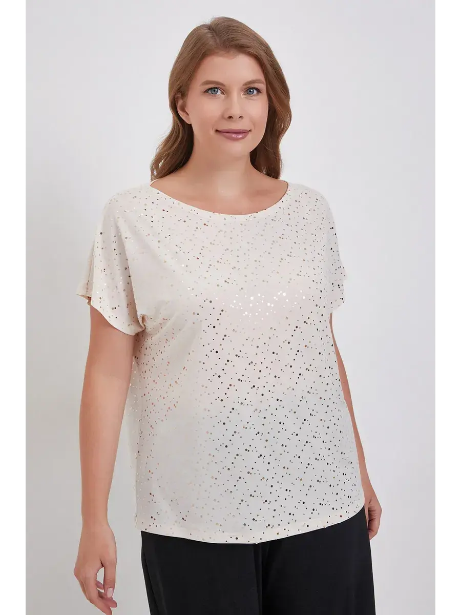 Особенностью данной модели являются изящные пайетки, добавляющие блузке изысканности и элегантности. Благодаря своему дизайну, блузка идеально подходит как для офисного стиля, так и для вечерних мероприятий, а также может стать отличным выбором для женщин с большими размерами.