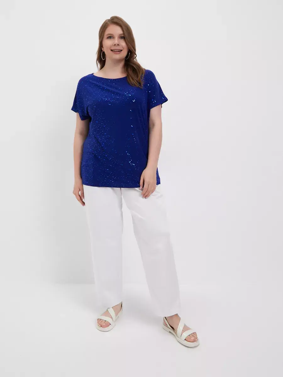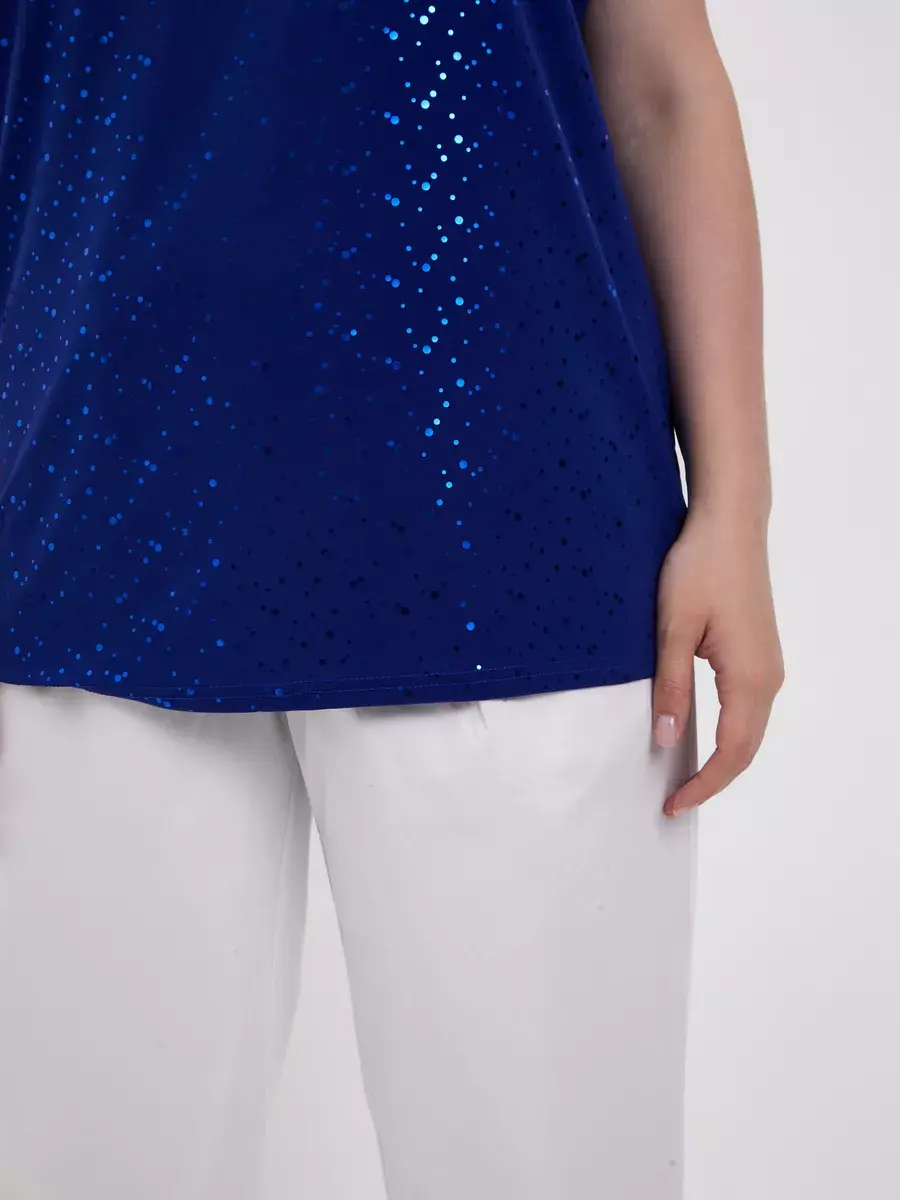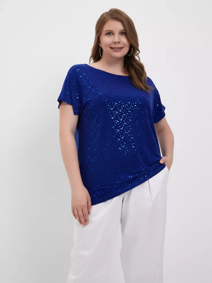 Особенностью данной модели являются изящные пайетки, добавляющие блузке изысканности и элегантности. Благодаря своему дизайну, блузка идеально подходит как для офисного стиля, так и для вечерних мероприятий, а также может стать отличным выбором для женщин с большими размерами.