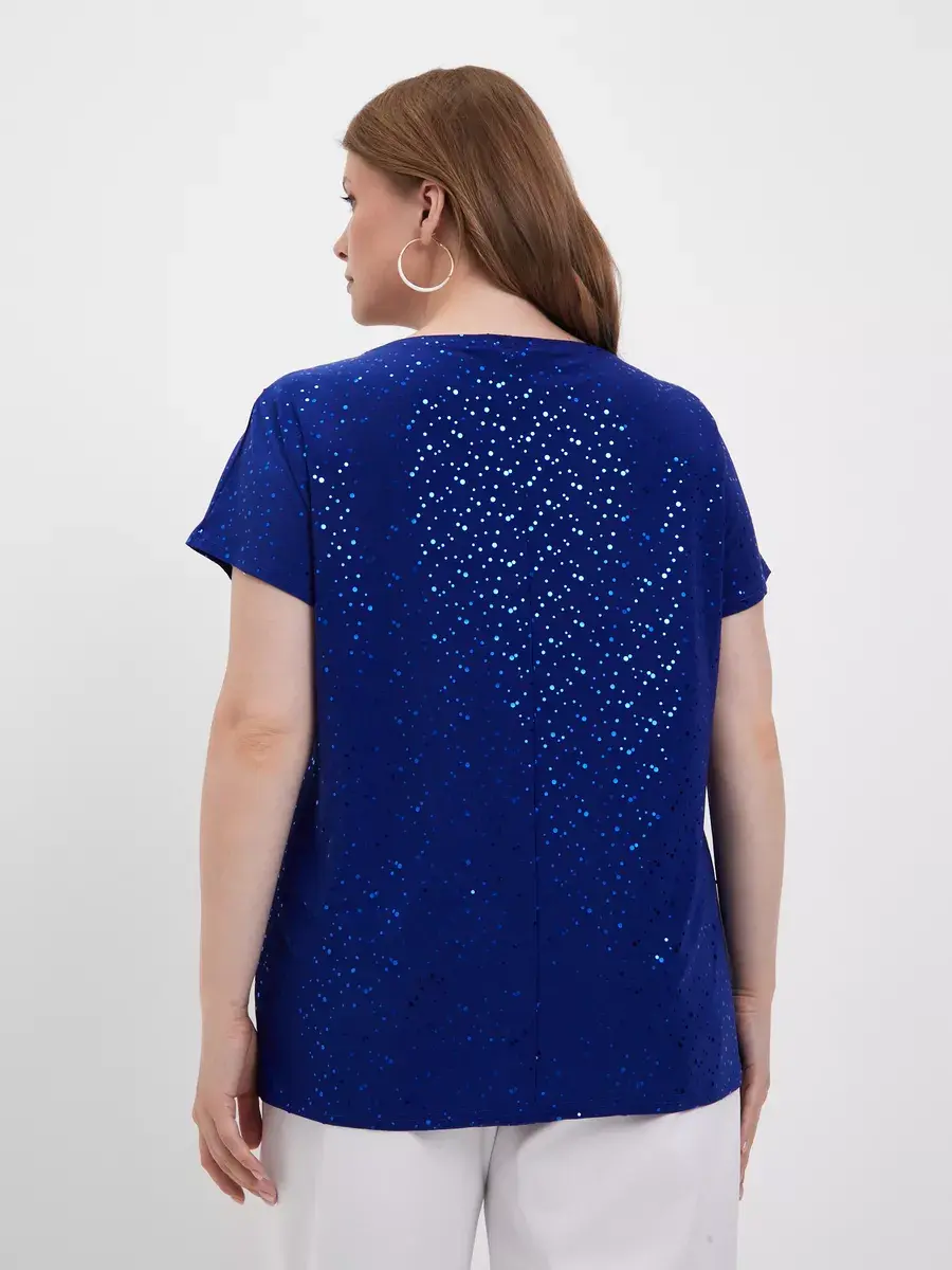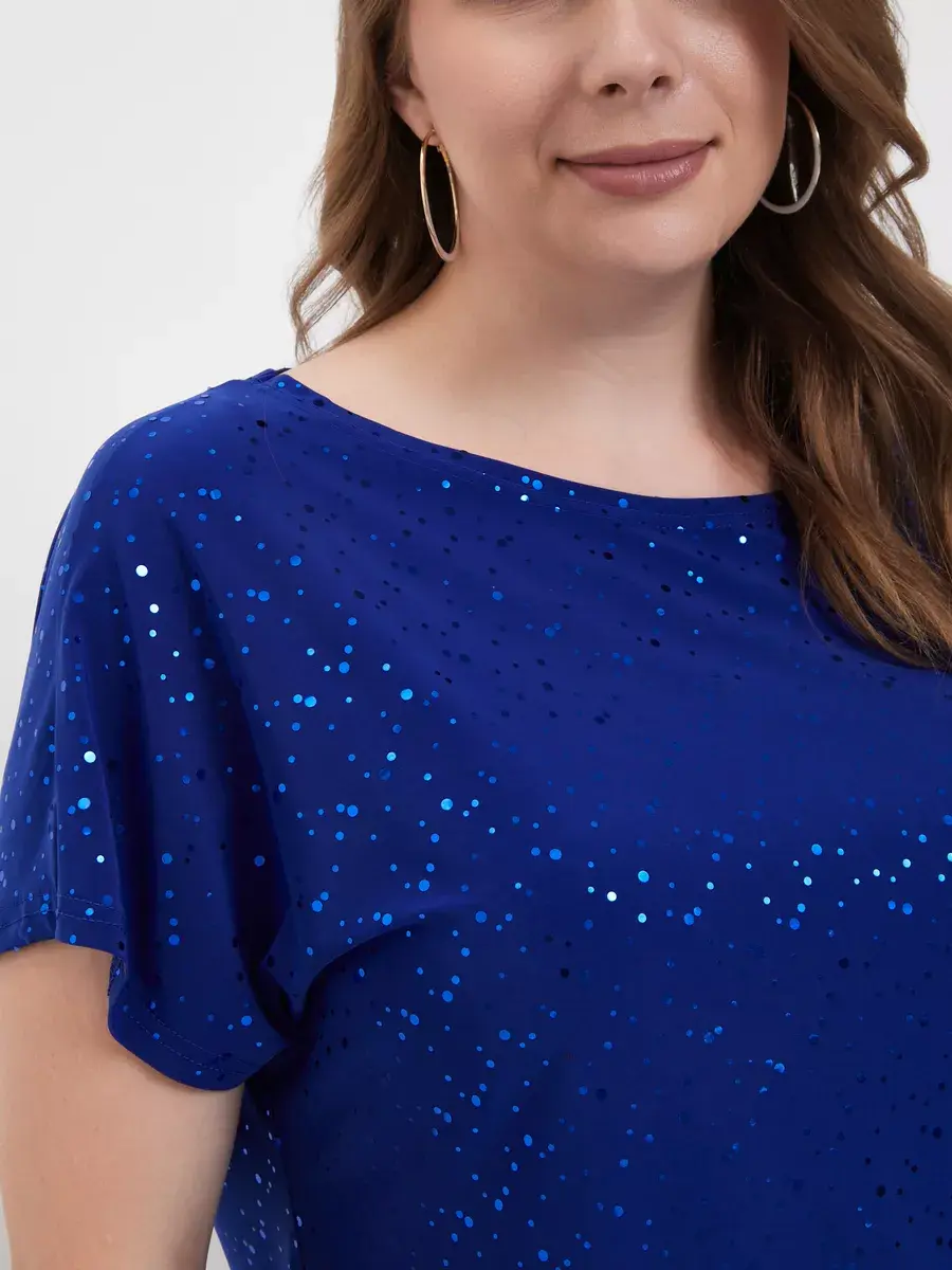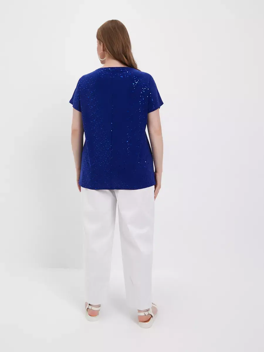 Особенностью данной модели являются изящные пайетки, добавляющие блузке изысканности и элегантности. Благодаря своему дизайну, блузка идеально подходит как для офисного стиля, так и для вечерних мероприятий, а также может стать отличным выбором для женщин с большими размерами.