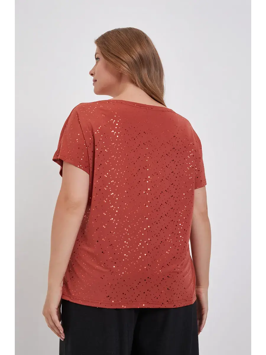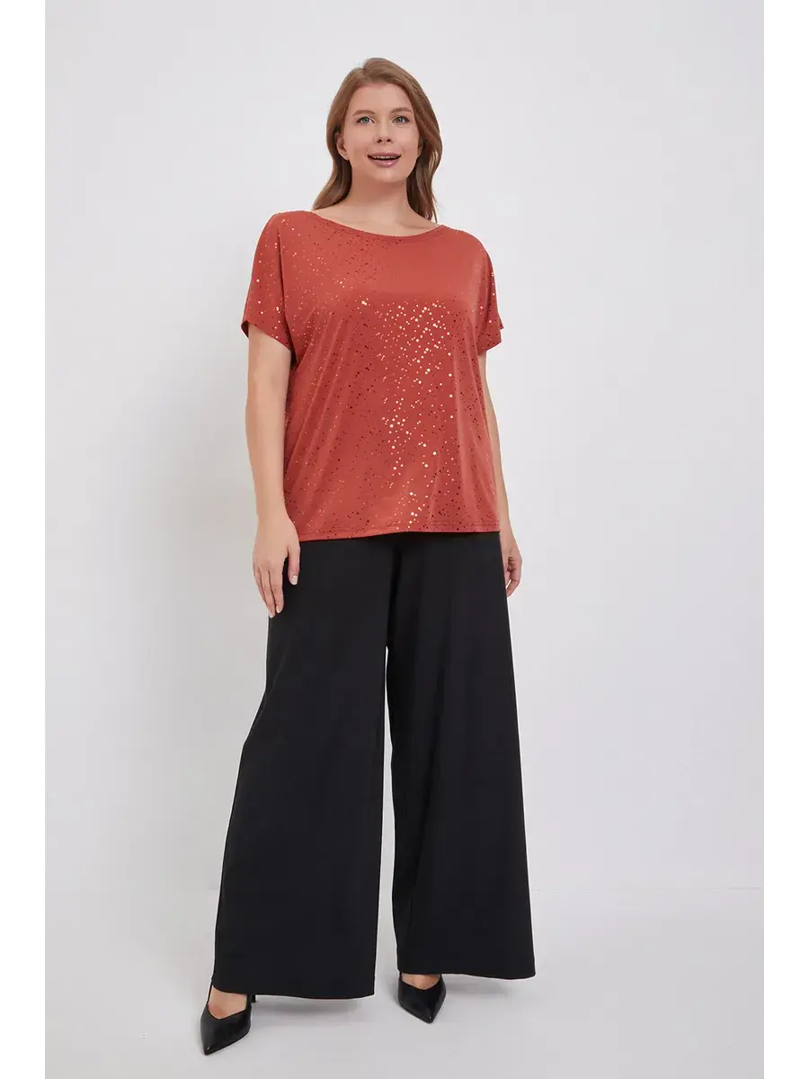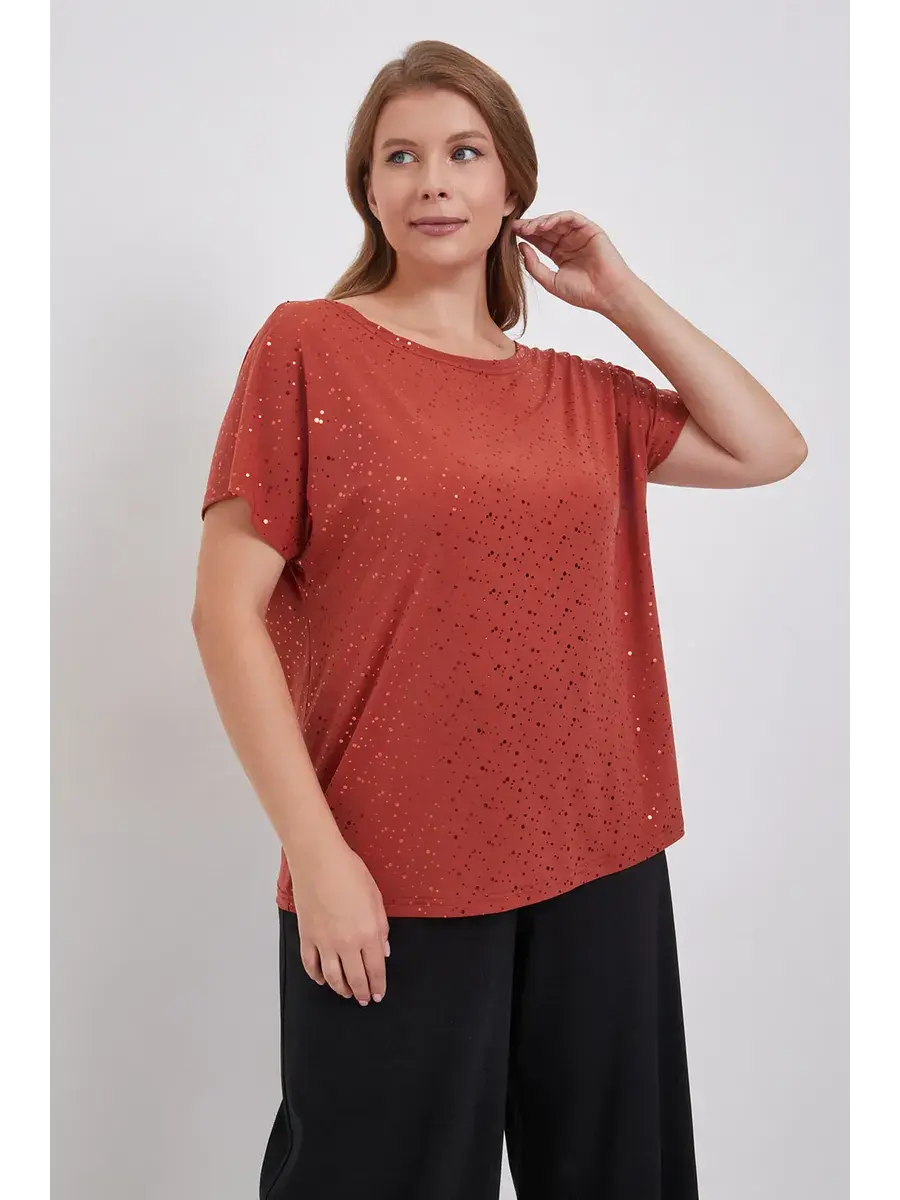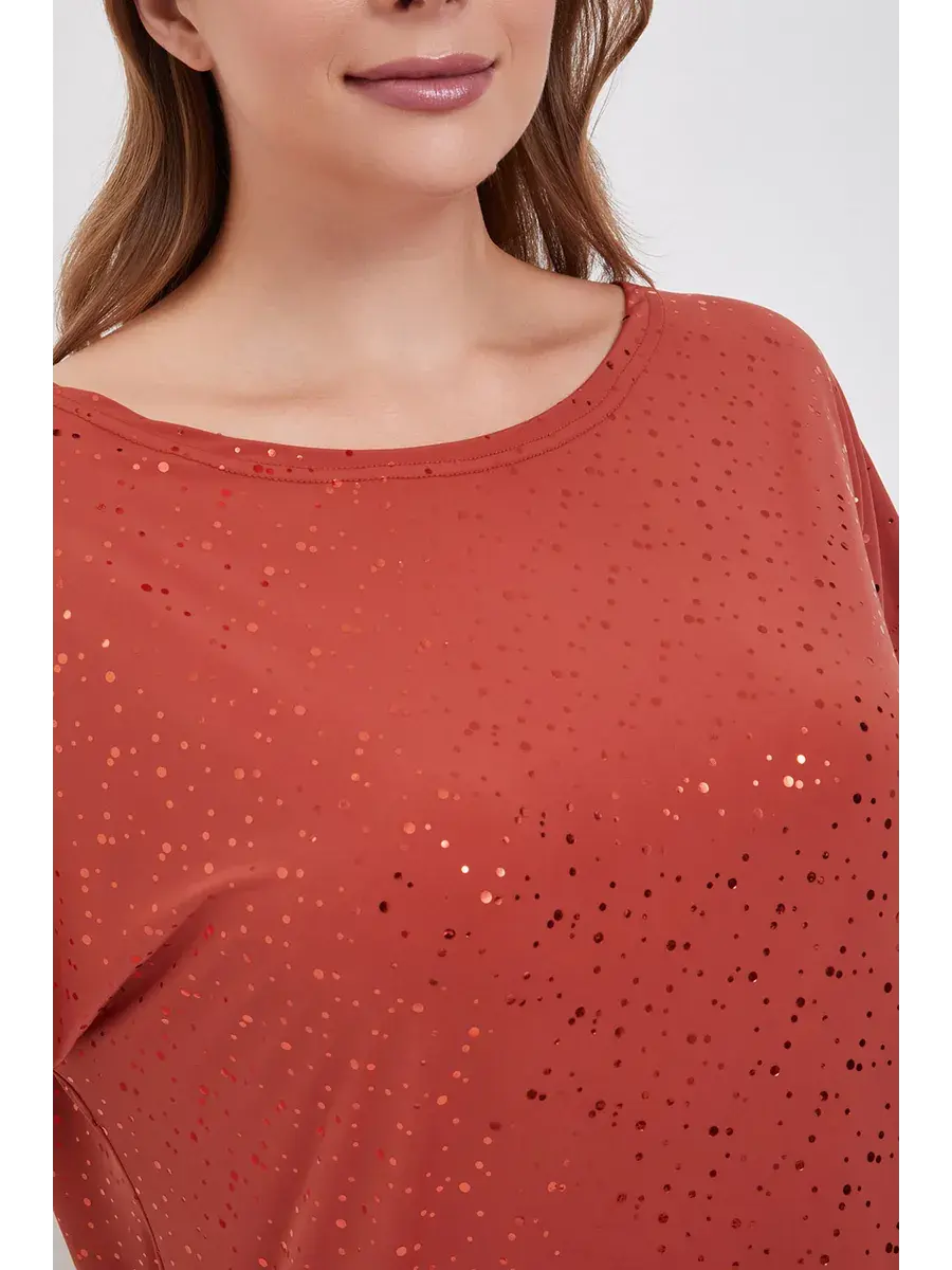 Особенностью данной модели являются изящные пайетки, добавляющие блузке изысканности и элегантности. Благодаря своему дизайну, блузка идеально подходит как для офисного стиля, так и для вечерних мероприятий, а также может стать отличным выбором для женщин с большими размерами.
