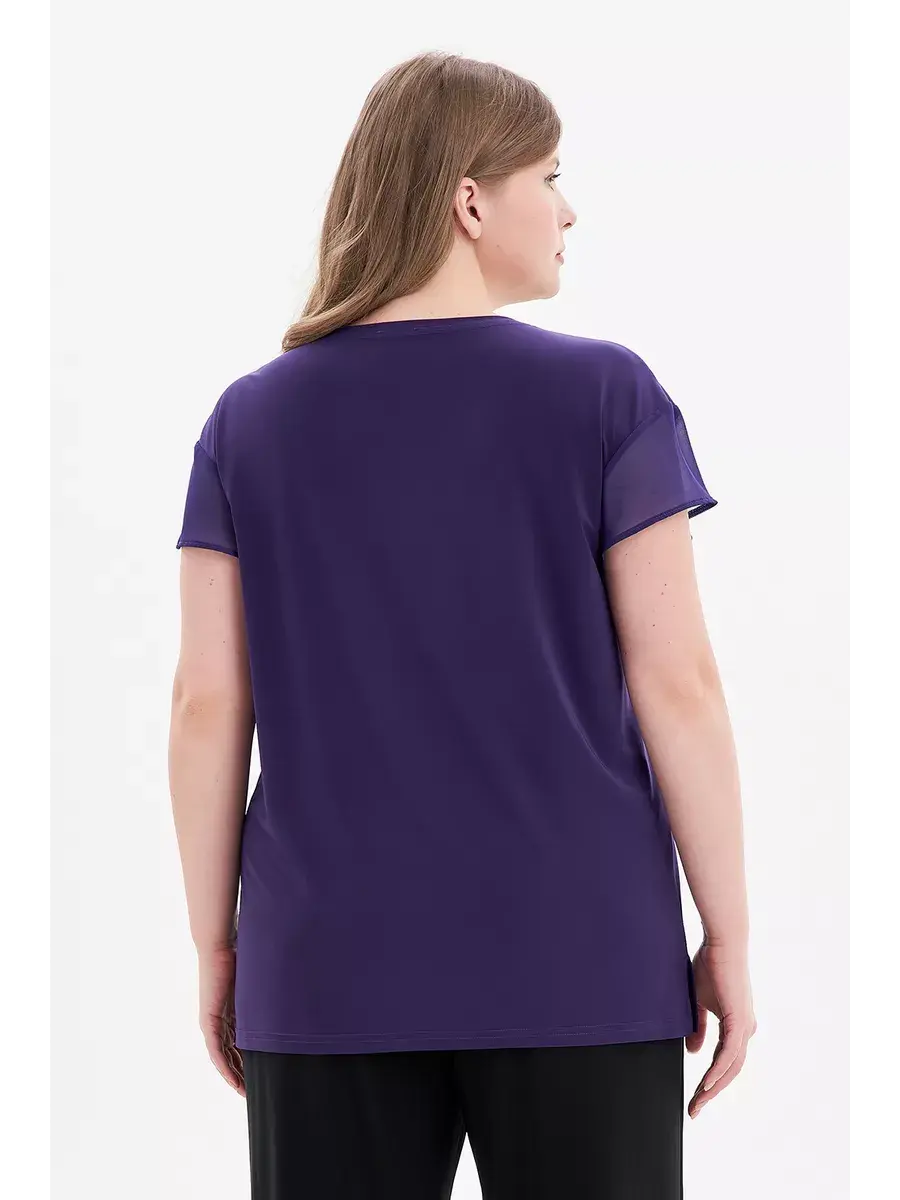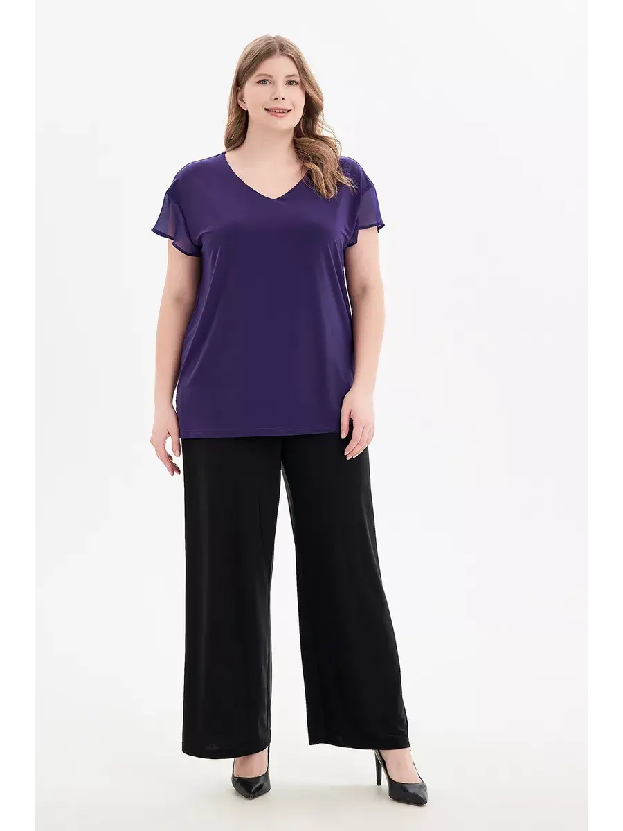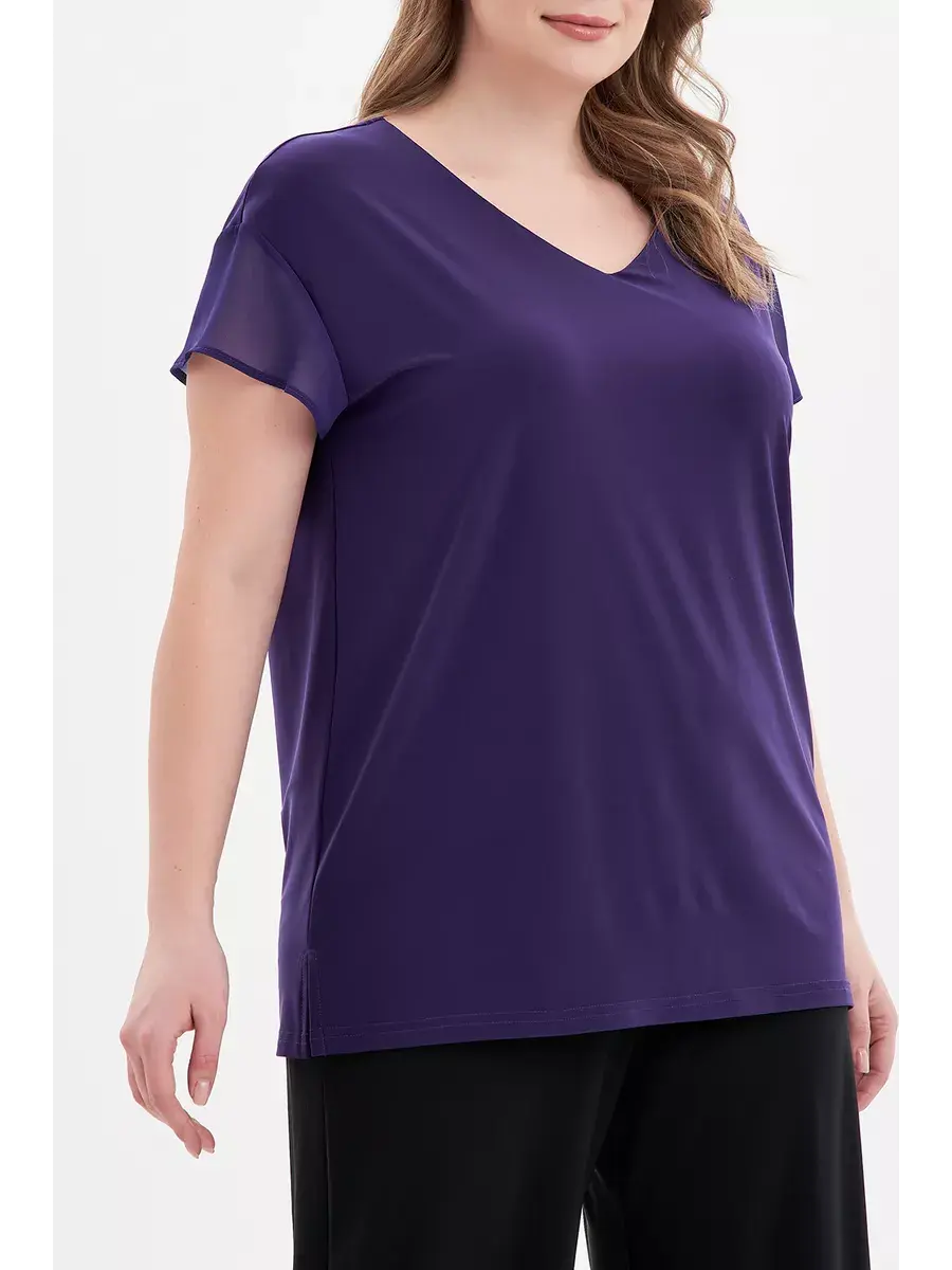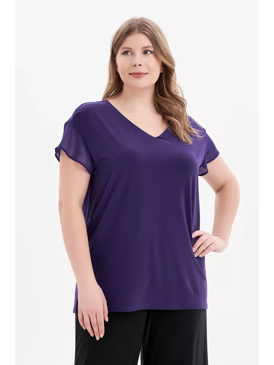 Женская повседневная блузка бренда OLSI, свободного силуэта из трикотажного полотна по типу масло. Удлиненная блузка с V-образным вырезом горловины, со спущенной мягкой линией плеча и короткими рукавами, выполненными из шифона с тон. Длина по спинке/длина рукава/ширина по груди/ширина низ соответственно:р.50-69,5см/11.1см/58,0см/59,3смр.52-70,0см/11,9см/60,0см/61,3смр.54-70,5см/12/9см/61,7см/63,3смр.56-71,0см/13,7см/63,7см/65,4смр.58-71,5см/14,7см/65,7см/67,4смр.60-72,0см/15,6см/67,7см/69,4смр.62-72,5см/16,6см/69,3см/71,5смр.64-73,0см/17,5см/71,3см/73,5смр.66-73,5см/18,4см/73,3см/75,5смр.68-74,0см/19,3см/75,3см/77,6смр.70-74,5см/20,1см/77,3см/79,6смр.72-75,0см/21,1см/79,3см/81,6см