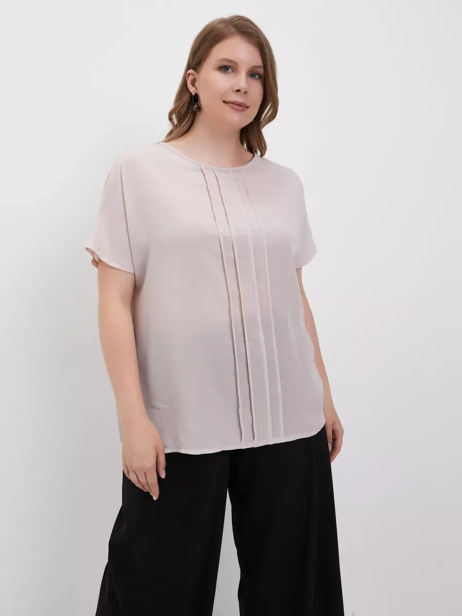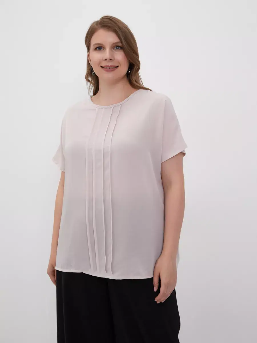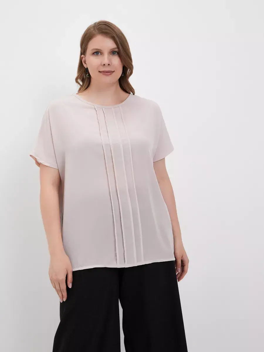 Легкая элегантная блузка больших размеров от бренда OLSI выполнена из премиум вискозной ткани переплетения по типу креп-шелка с матовой поверхностью. Однотонная женская блузка с короткими широкими рукавами , плечо приспущено; с круглым вырезом по горловине. Спереди блузка декорирована отстроченными вертикальными линиями, что визуально удлиняет фигуру и делает стройнее. Фасон блузки широкий, прямого силуэта. Лаконичный крой блузки топа из искусственного шелка подойдет девушкам и женщинам любого возраста. Блузка женская будет уместна в любой ситуации, как повседневная блузка на работу или учебу, так и на праздничное или вечернее мероприятие, свидание. Блузка футболка отлично сочетается с джинсами, классическими брюками, юбкой. Можно носить как футболка под пиджак или жилет. Данная модель станет базовой в гардеробе модниц.