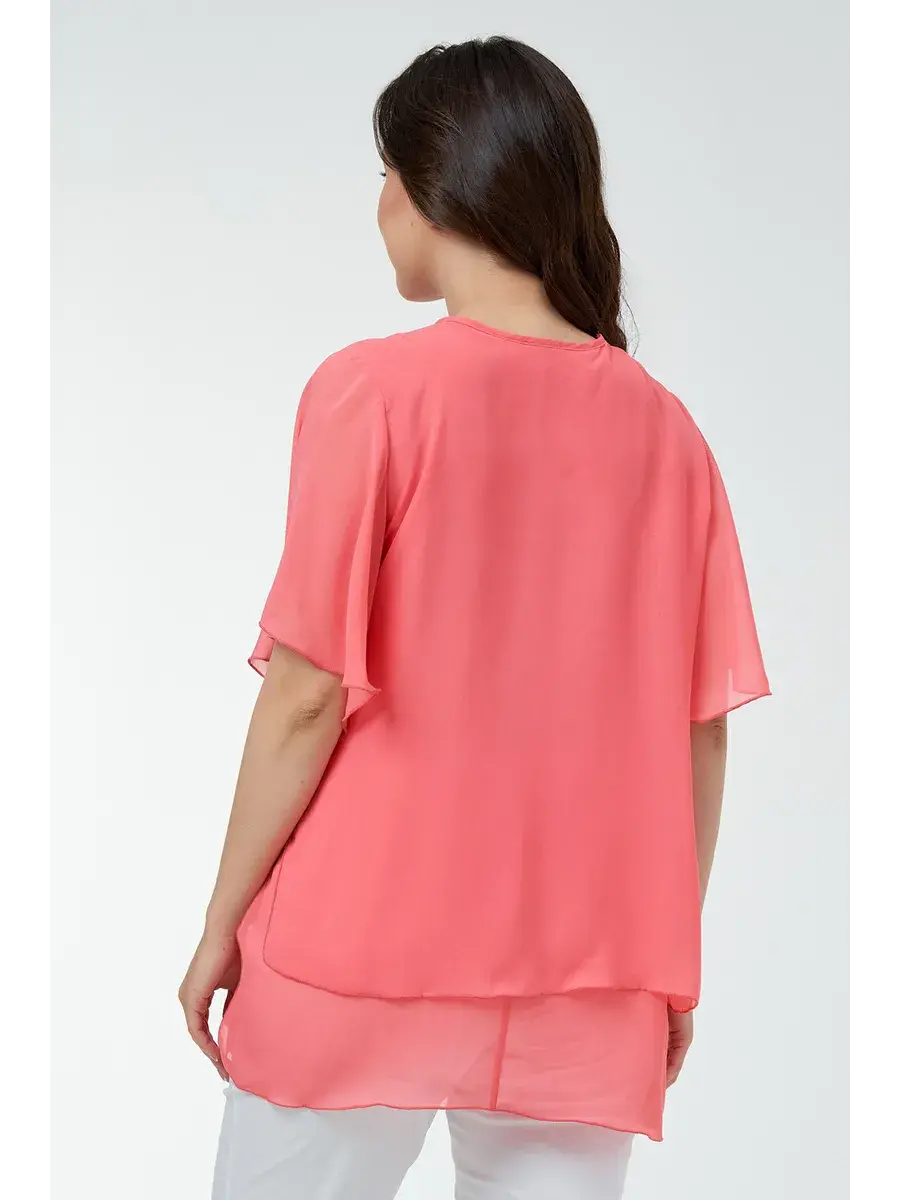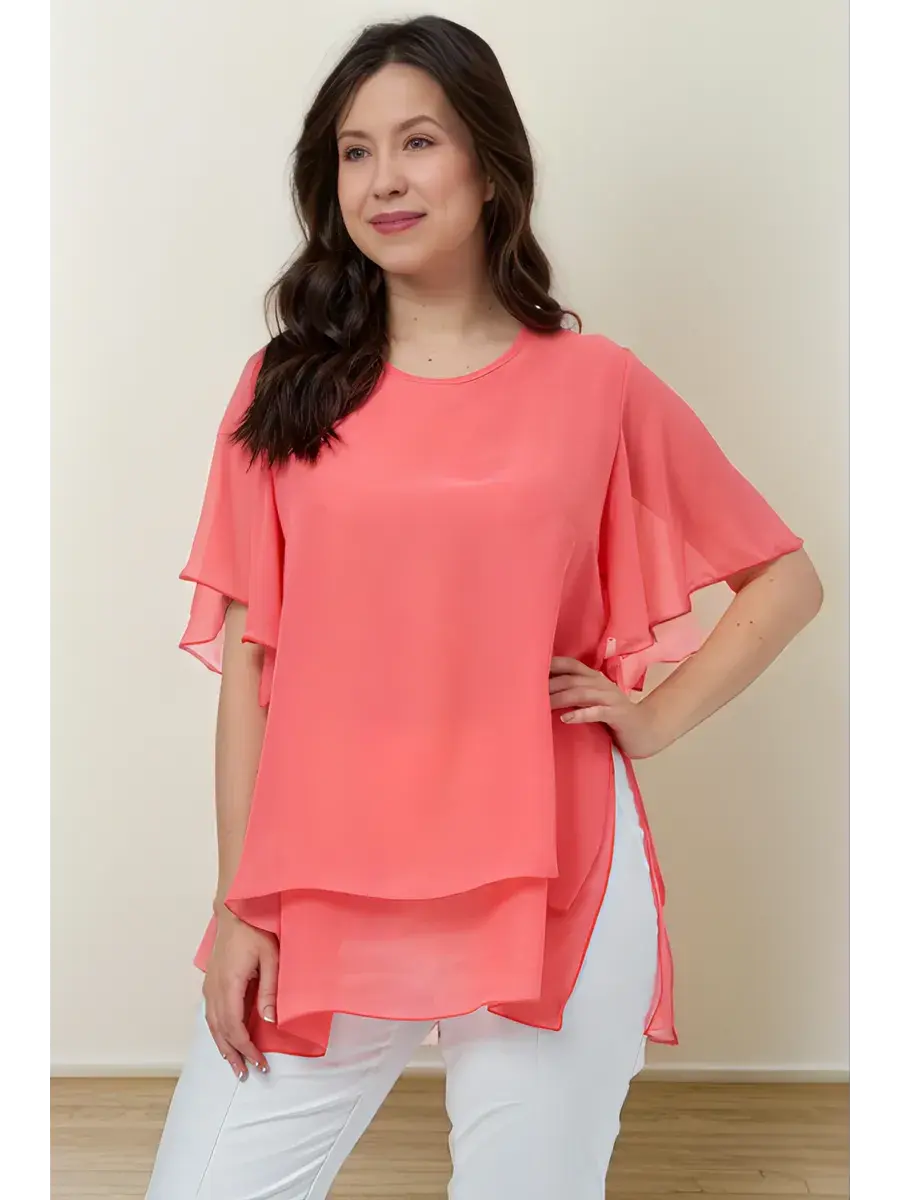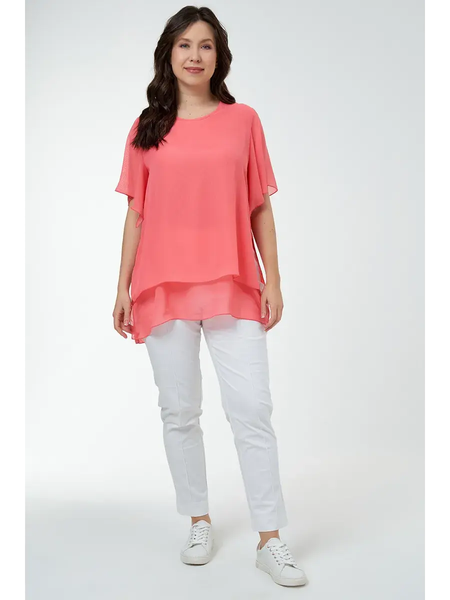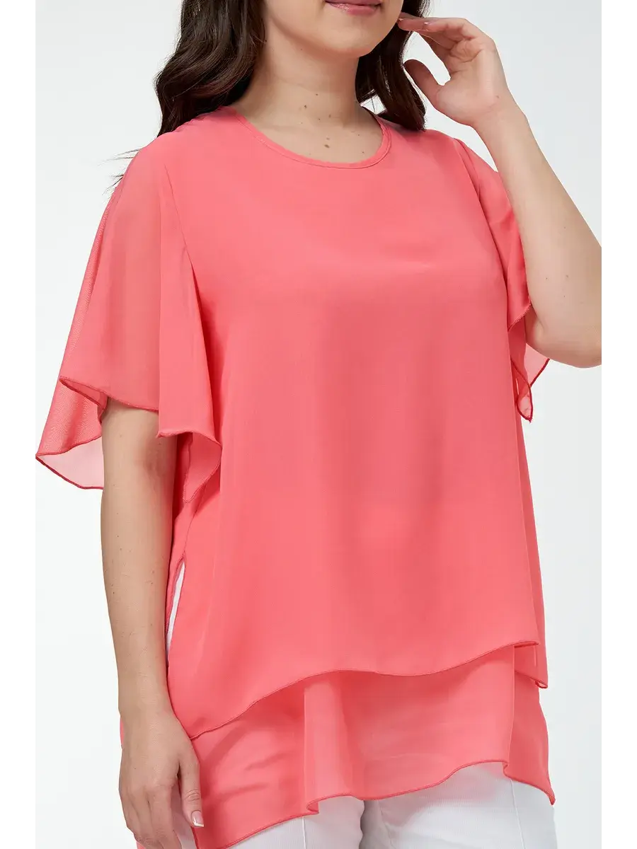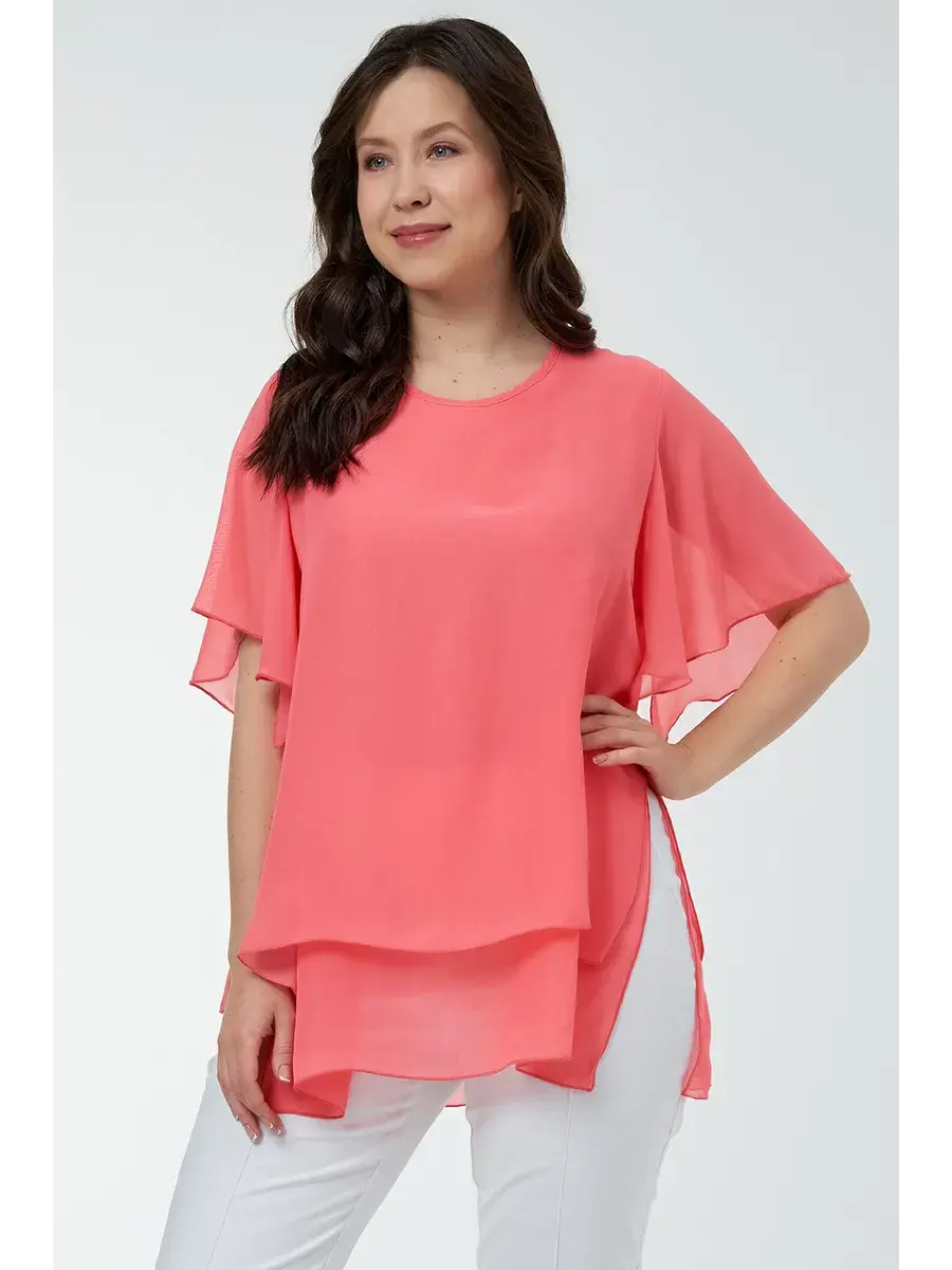 Эта свободная базовая блуза больших размеров с коротким рукавом идеально подходит для создания повседневных и офисных луков. Кофта состоит из двух слоев, а нарядная блуза с округлым вырезом позволит вам оставаться изысканной и элегантной в любой ситуации. Она создает визуально стройный силуэт, а ее прямая модель будет уместно смотреться как на работе, так и на праздничном мероприятии, вечеринке или прогулке.