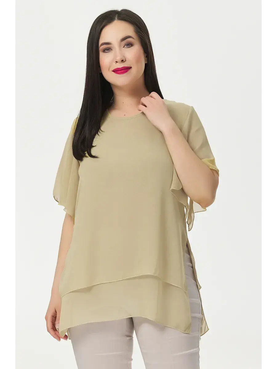 Эта свободная базовая блуза больших размеров с коротким рукавом идеально подходит для создания повседневных и офисных луков. Кофта состоит из двух слоев, а нарядная блуза с округлым вырезом позволит вам оставаться изысканной и элегантной в любой ситуации. Она создает визуально стройный силуэт, а ее прямая модель будет уместно смотреться как на работе, так и на праздничном мероприятии, вечеринке или прогулке.