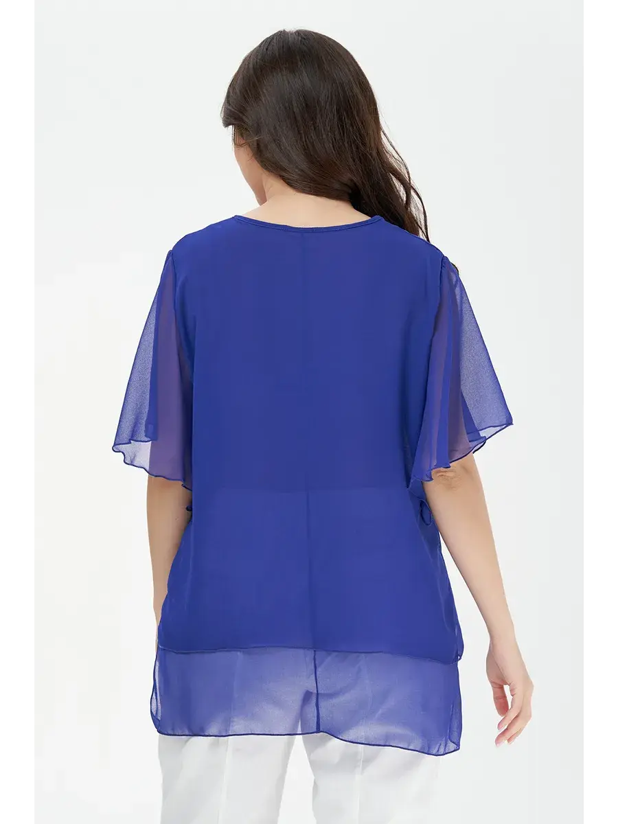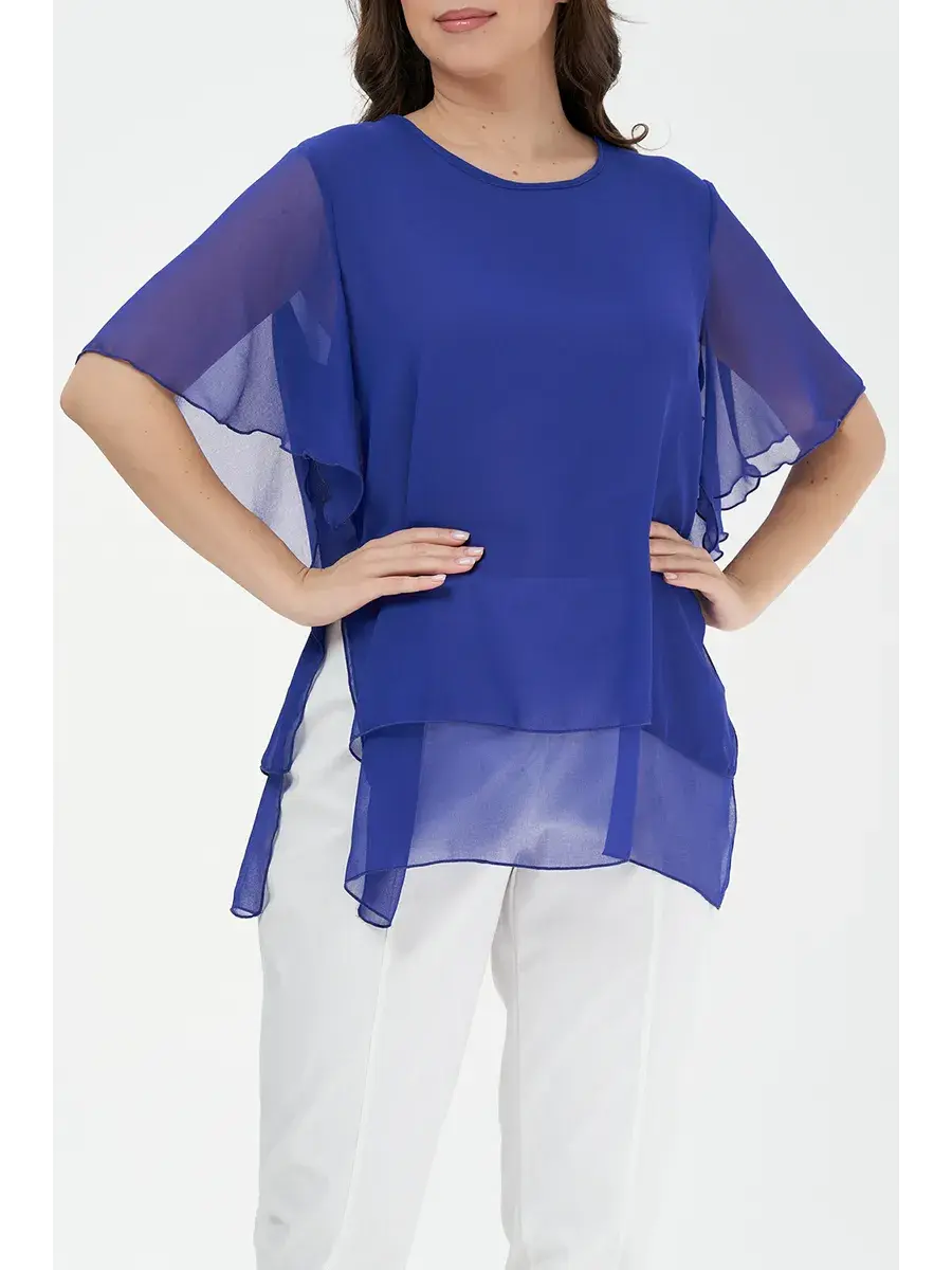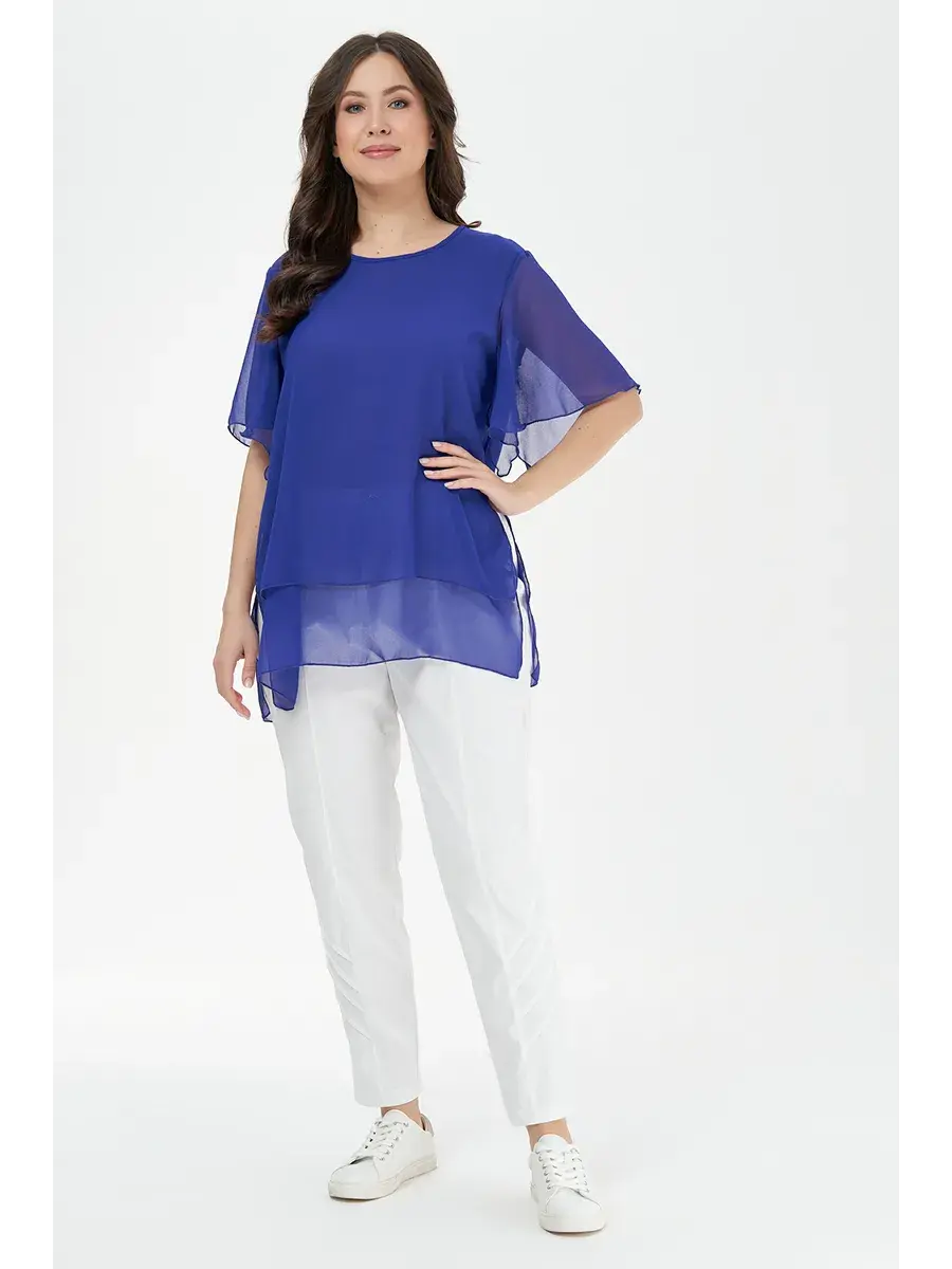 Эта свободная базовая блуза больших размеров с коротким рукавом идеально подходит для создания повседневных и офисных луков. Кофта состоит из двух слоев, а нарядная блуза с округлым вырезом позволит вам оставаться изысканной и элегантной в любой ситуации. Она создает визуально стройный силуэт, а ее прямая модель будет уместно смотреться как на работе, так и на праздничном мероприятии, вечеринке или прогулке.
