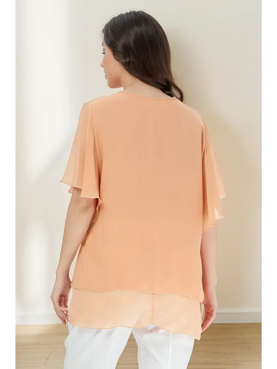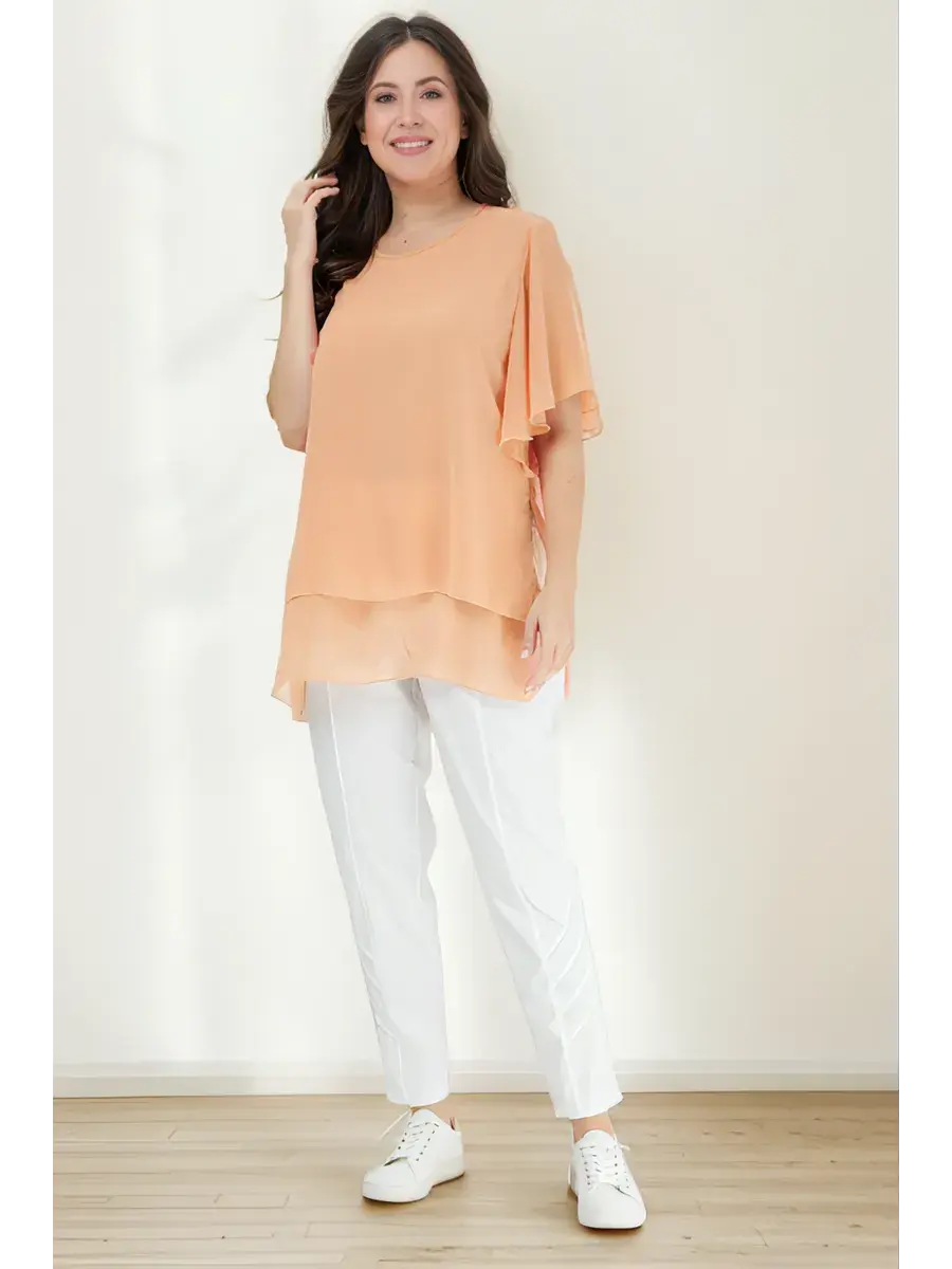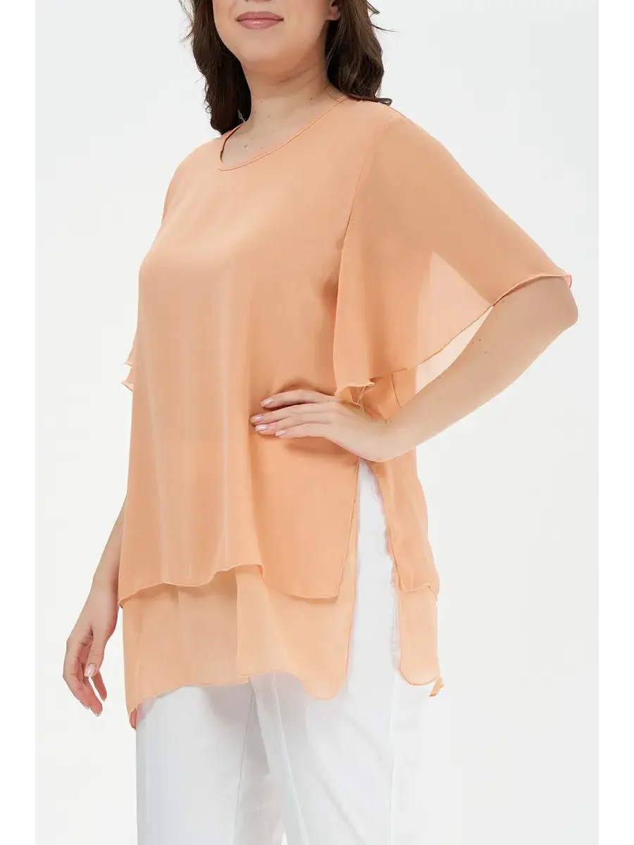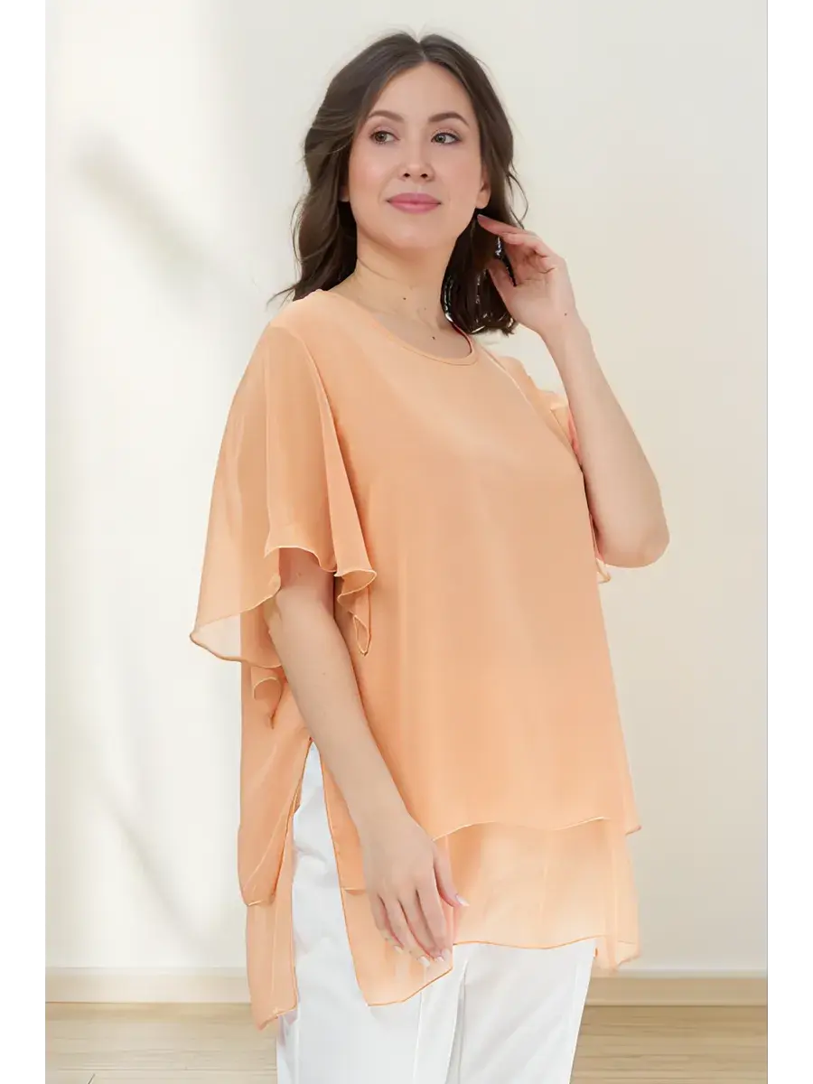 Эта свободная базовая блуза больших размеров с коротким рукавом идеально подходит для создания повседневных и офисных луков. Кофта состоит из двух слоев, а нарядная блуза с округлым вырезом позволит вам оставаться изысканной и элегантной в любой ситуации. Она создает визуально стройный силуэт, а ее прямая модель будет уместно смотреться как на работе, так и на праздничном мероприятии, вечеринке или прогулке.