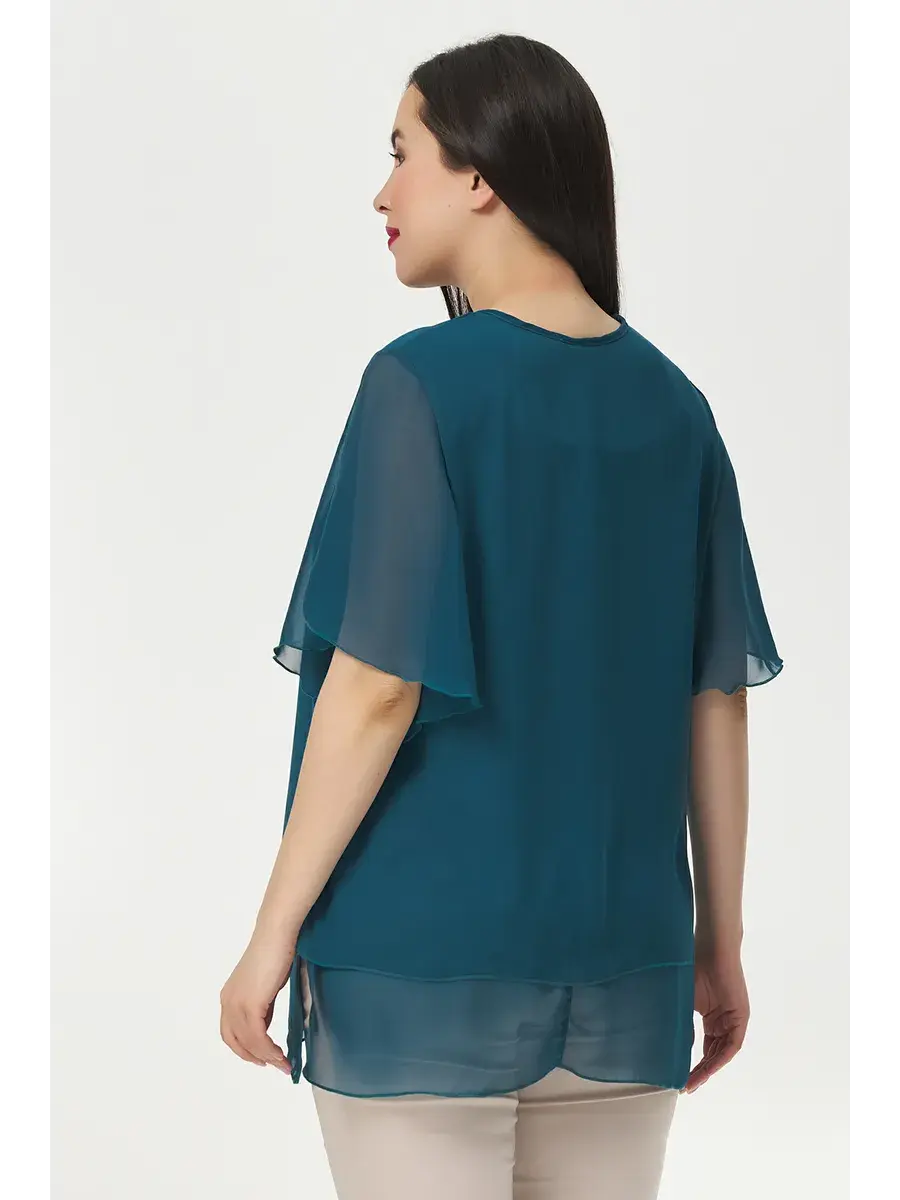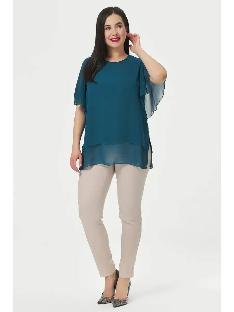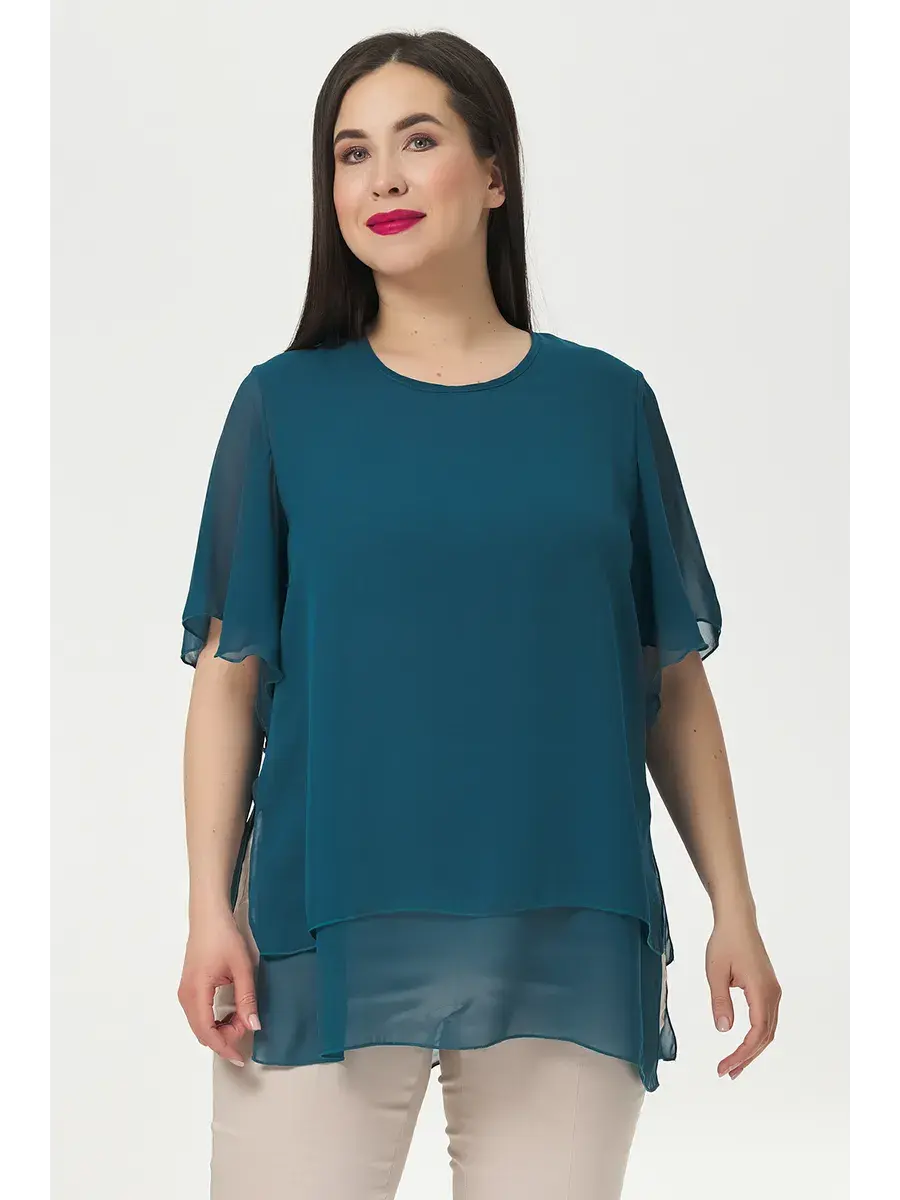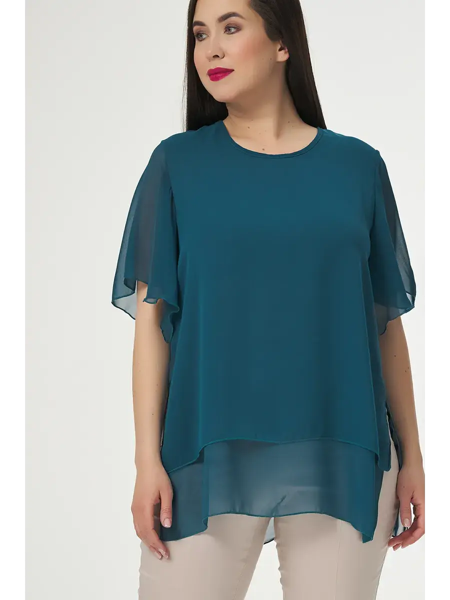 Эта свободная базовая блуза больших размеров с коротким рукавом идеально подходит для создания повседневных и офисных луков. Кофта состоит из двух слоев, а нарядная блуза с округлым вырезом позволит вам оставаться изысканной и элегантной в любой ситуации. Она создает визуально стройный силуэт, а ее прямая модель будет уместно смотреться как на работе, так и на праздничном мероприятии, вечеринке или прогулке.