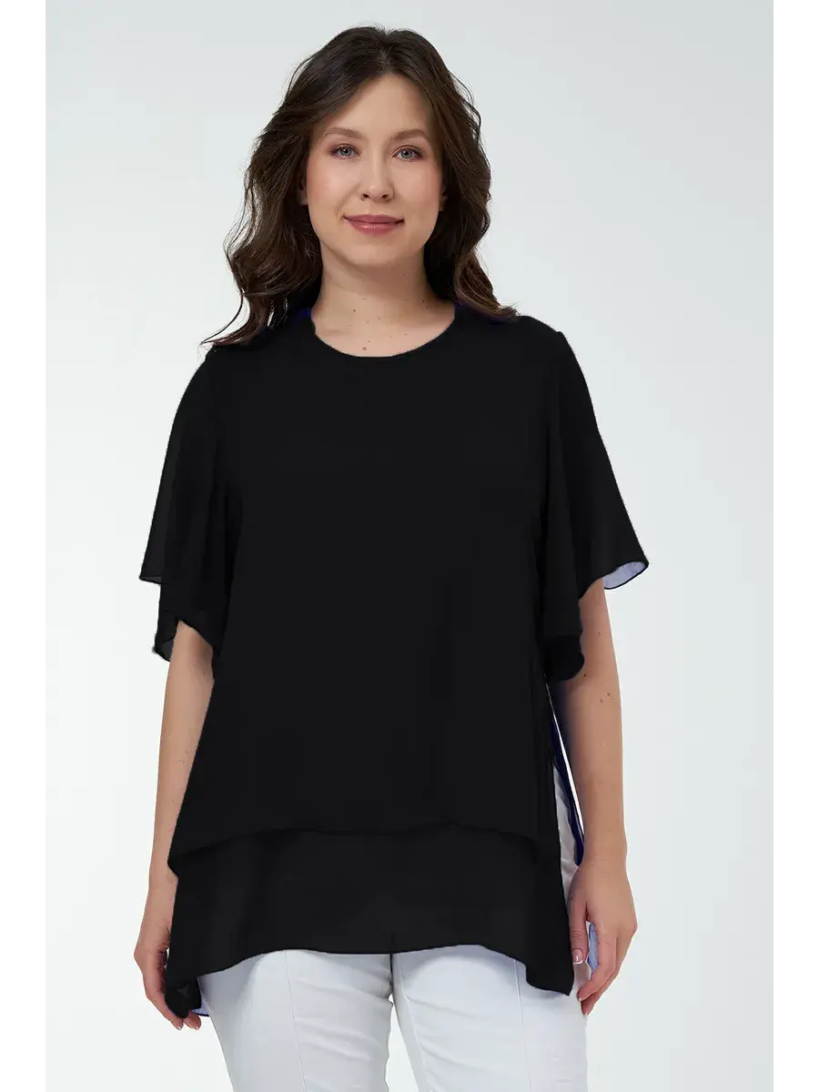 Эта свободная базовая блуза больших размеров с коротким рукавом идеально подходит для создания повседневных и офисных луков. Кофта состоит из двух слоев, а нарядная блуза с округлым вырезом позволит вам оставаться изысканной и элегантной в любой ситуации. Она создает визуально стройный силуэт, а ее прямая модель будет уместно смотреться как на работе, так и на праздничном мероприятии, вечеринке или прогулке.