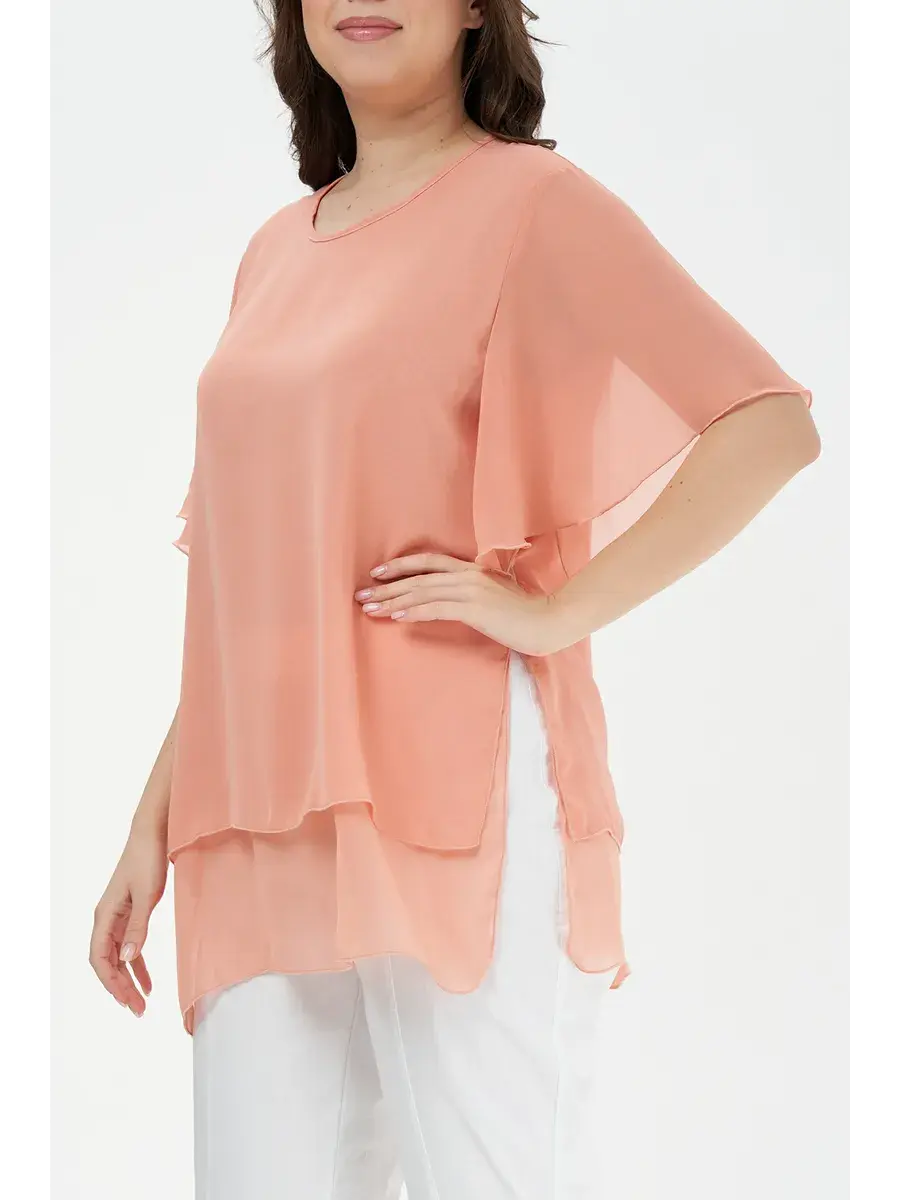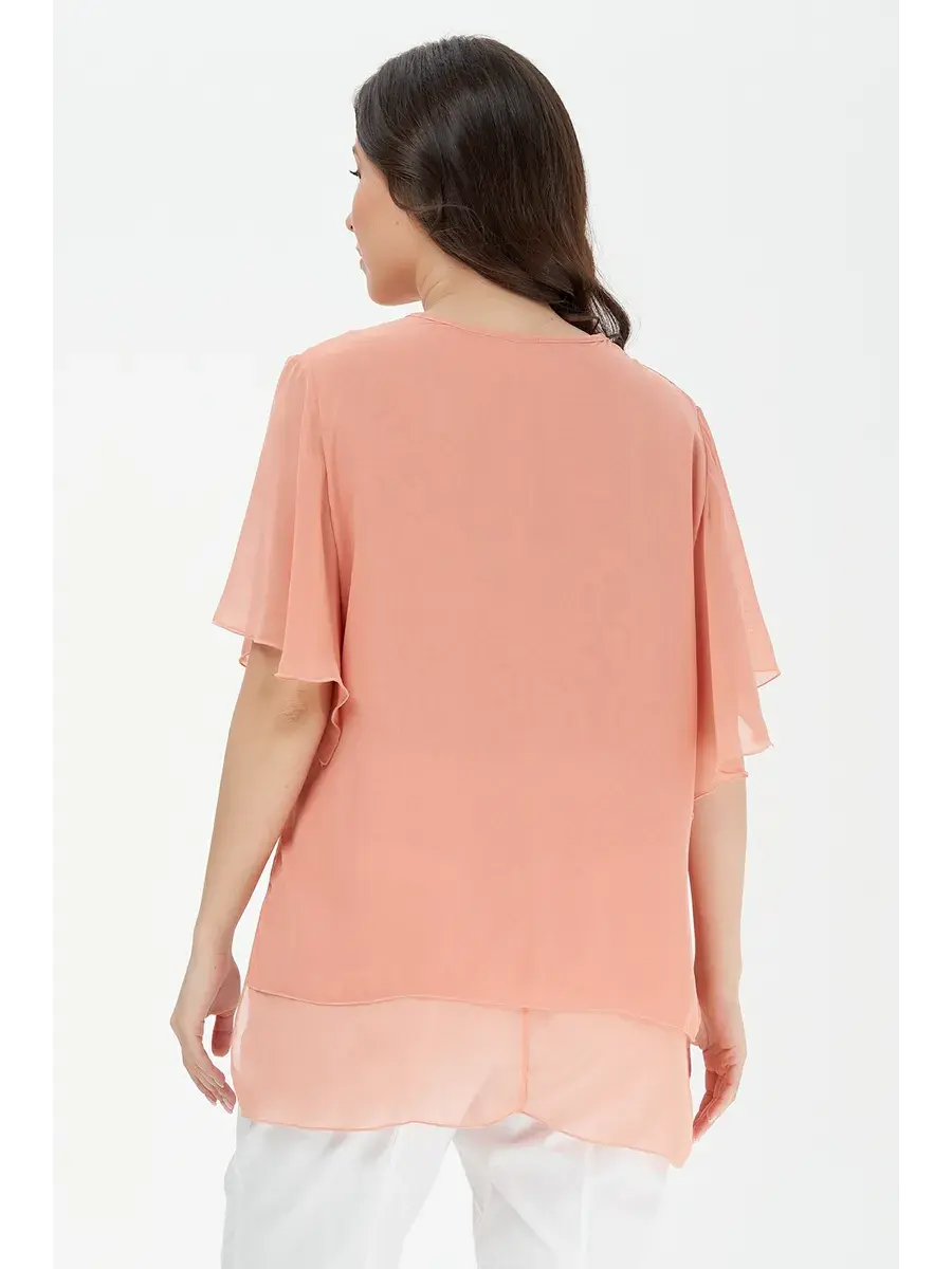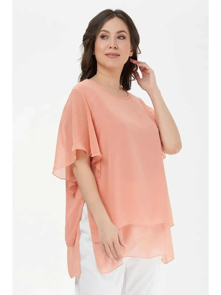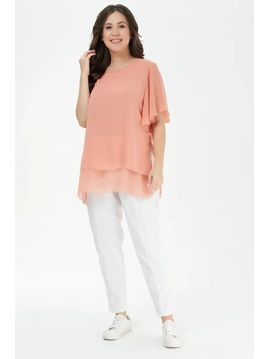 Эта свободная базовая блуза больших размеров с коротким рукавом идеально подходит для создания повседневных и офисных луков. Кофта состоит из двух слоев, а нарядная блуза с округлым вырезом позволит вам оставаться изысканной и элегантной в любой ситуации. Она создает визуально стройный силуэт, а ее прямая модель будет уместно смотреться как на работе, так и на праздничном мероприятии, вечеринке или прогулке.