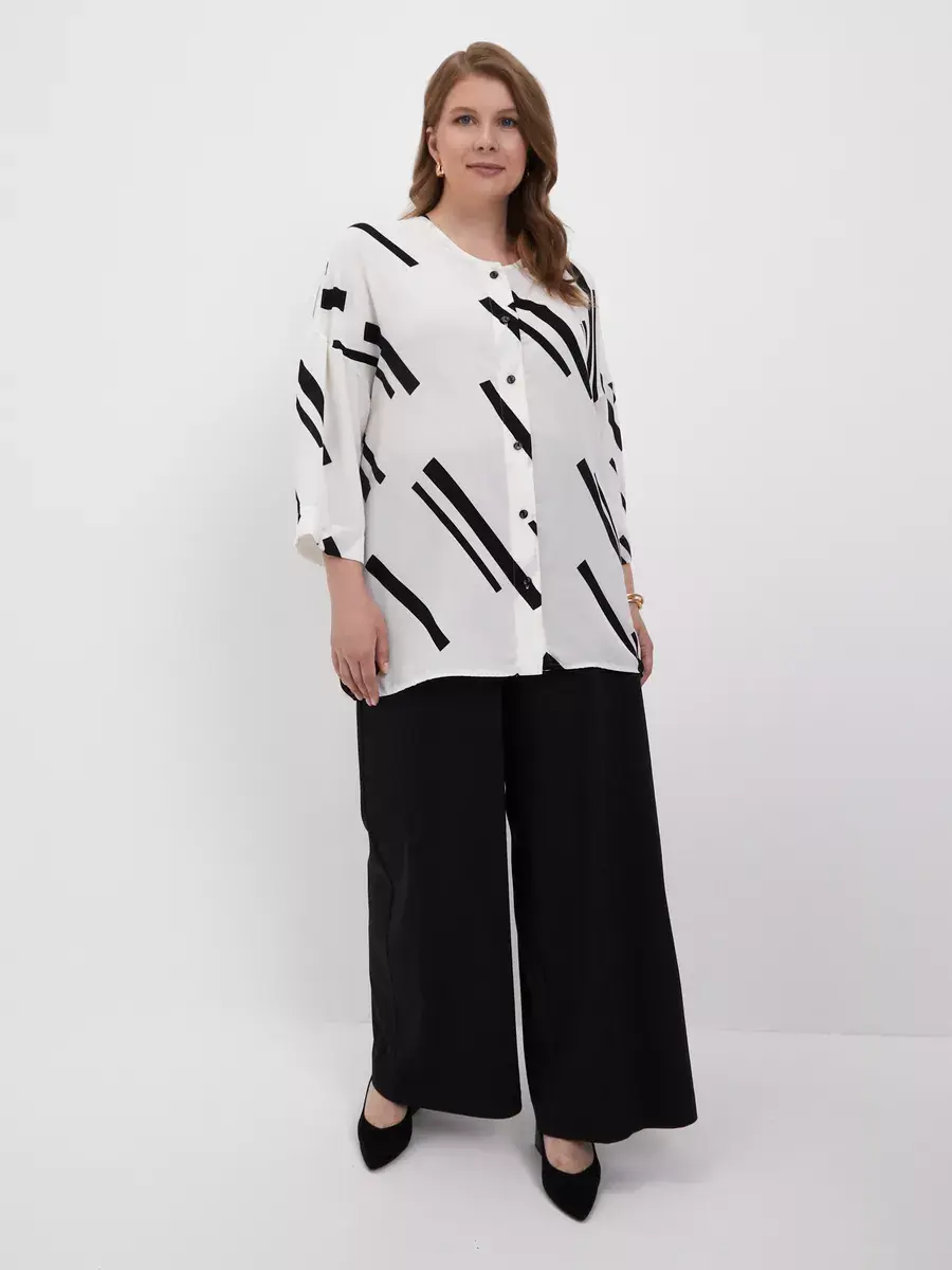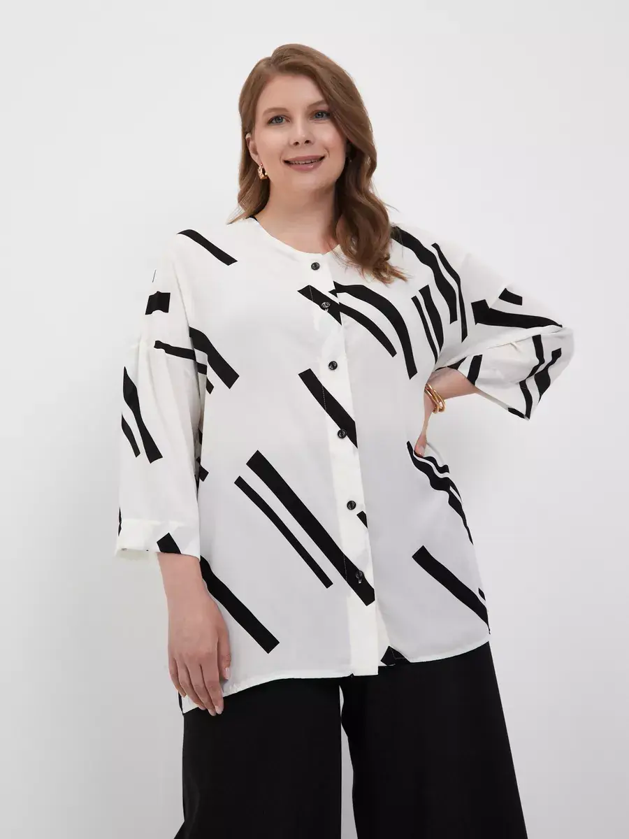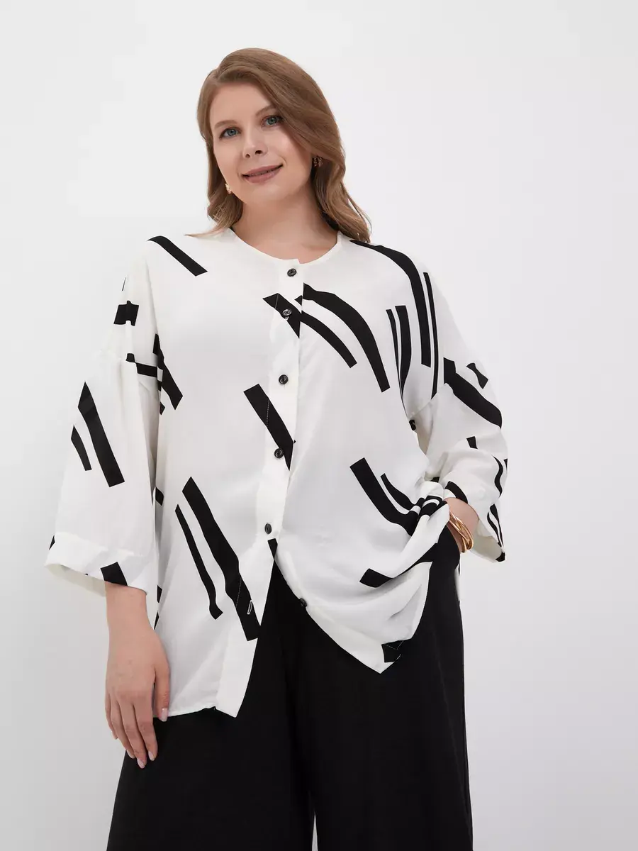 Блузка женская больших размеров от бренда OLSI из струющегося шифона премиум качества. Блузка свободного фасона, с приспущенными плечами и широкими рукавами длиной 3/4, что делает образ легким и воздушним, скрывая недостатки. Круглый вырез горловины средней глубины женственно открывает шею. В этой блузке Ваш образ будет сдержанным и элегантным. Модель отлично подойдет как нарядная блузка на торжество, так и красивая блузка в офис на работу.