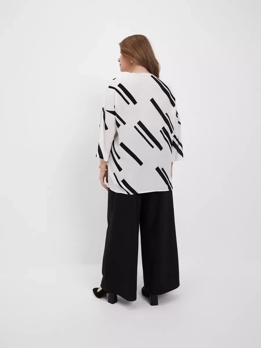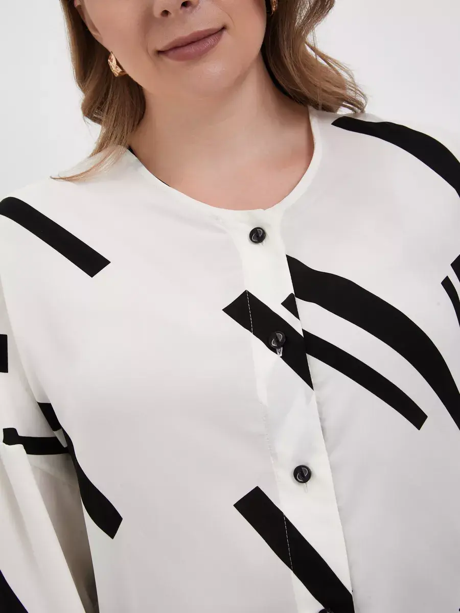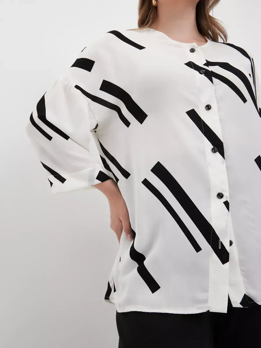 Блузка женская больших размеров от бренда OLSI из струющегося шифона премиум качества. Блузка свободного фасона, с приспущенными плечами и широкими рукавами длиной 3/4, что делает образ легким и воздушним, скрывая недостатки. Круглый вырез горловины средней глубины женственно открывает шею. В этой блузке Ваш образ будет сдержанным и элегантным. Модель отлично подойдет как нарядная блузка на торжество, так и красивая блузка в офис на работу.