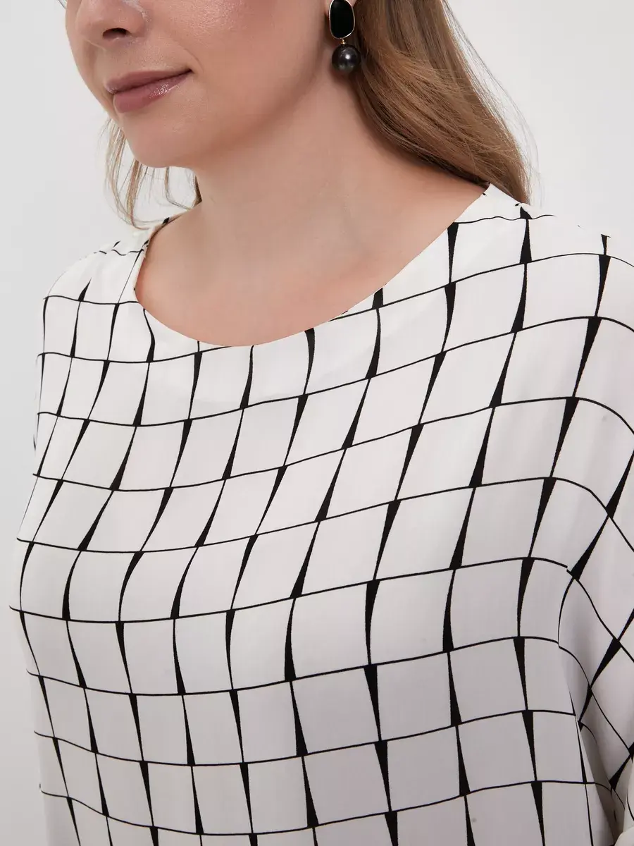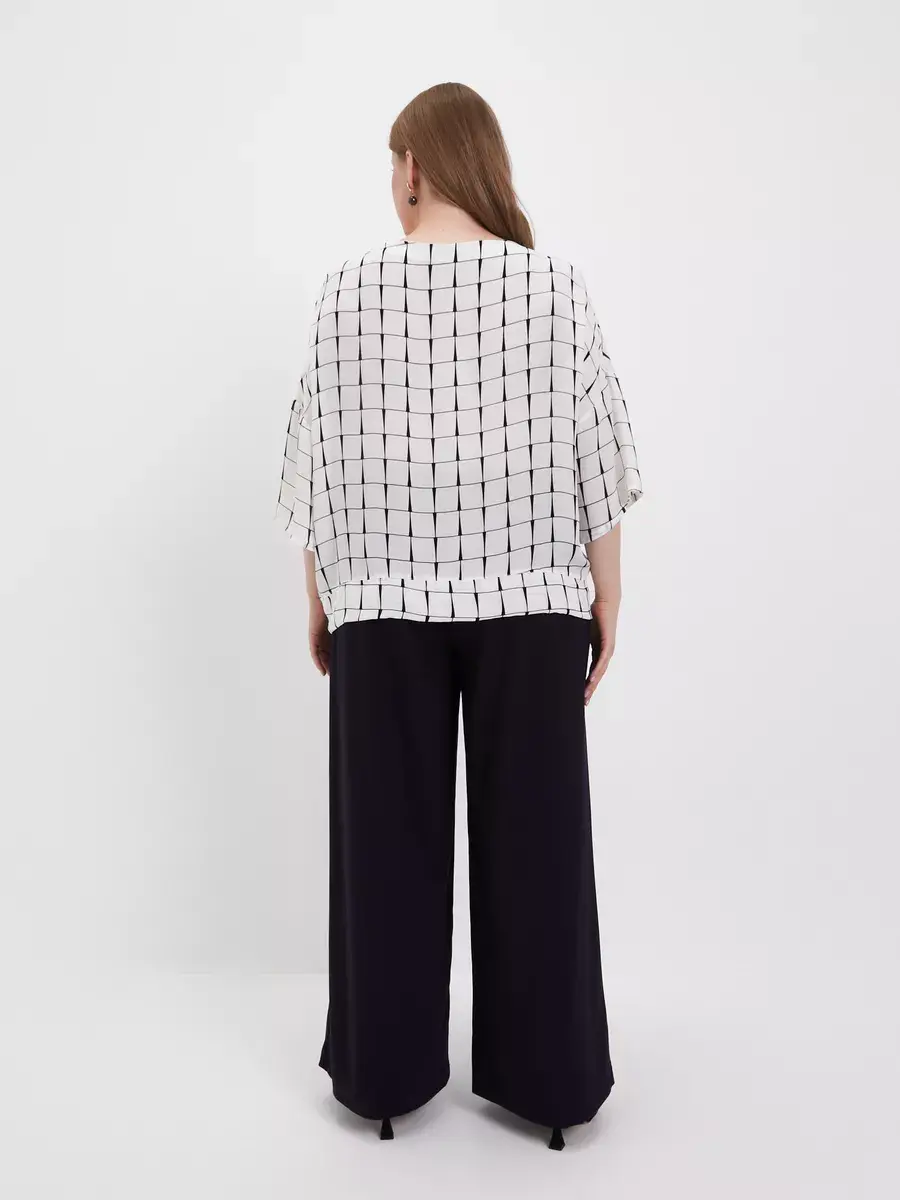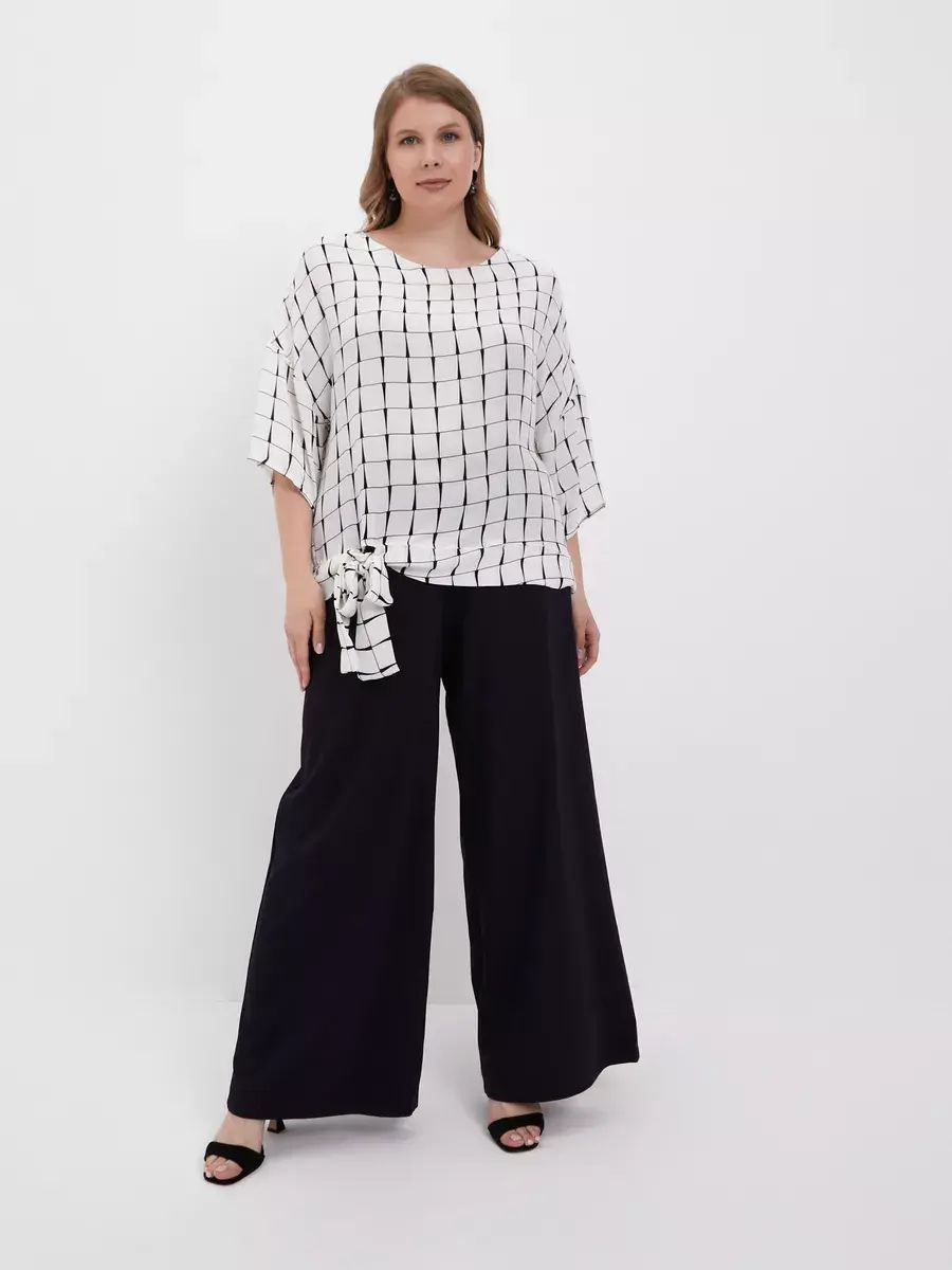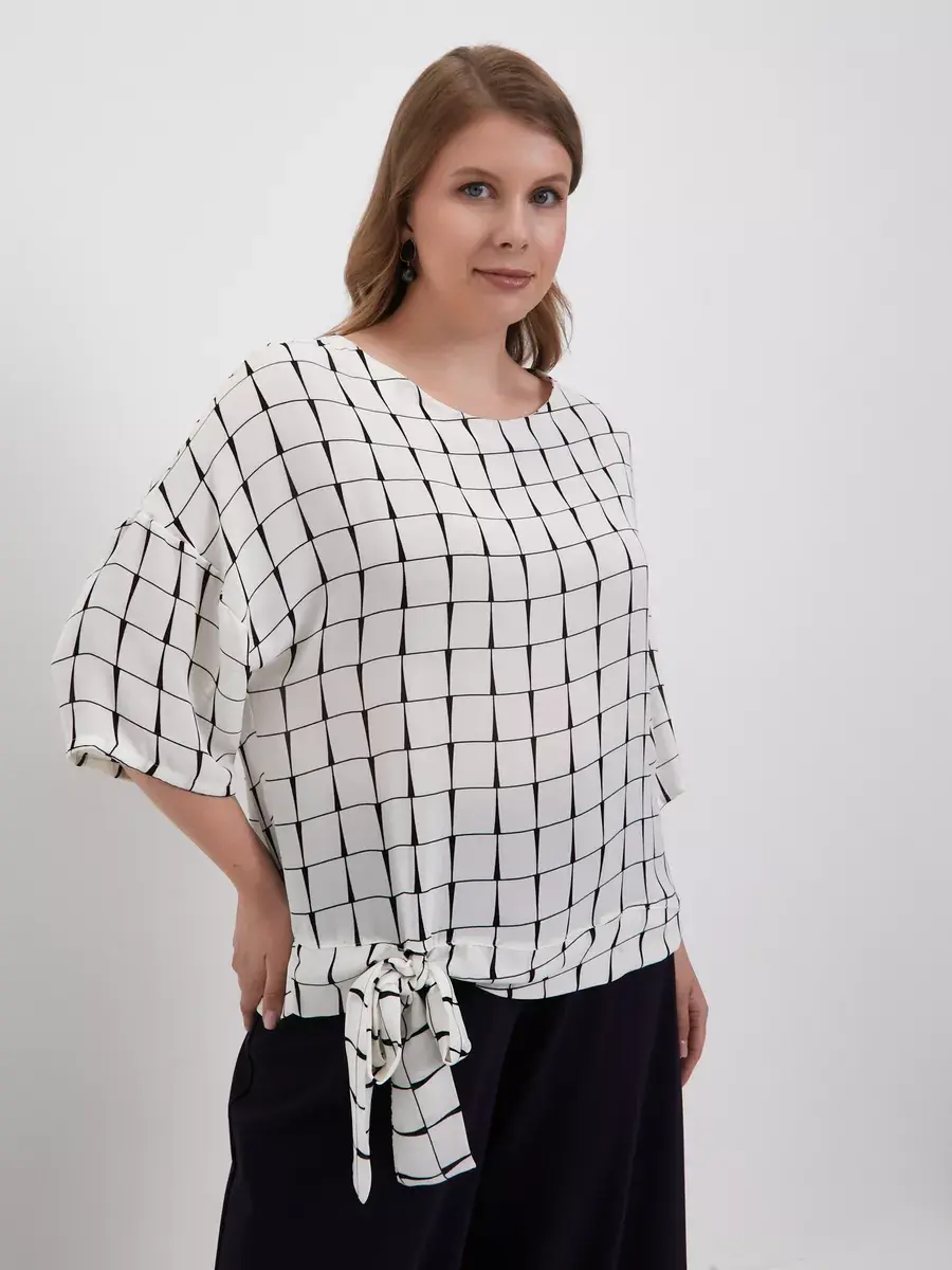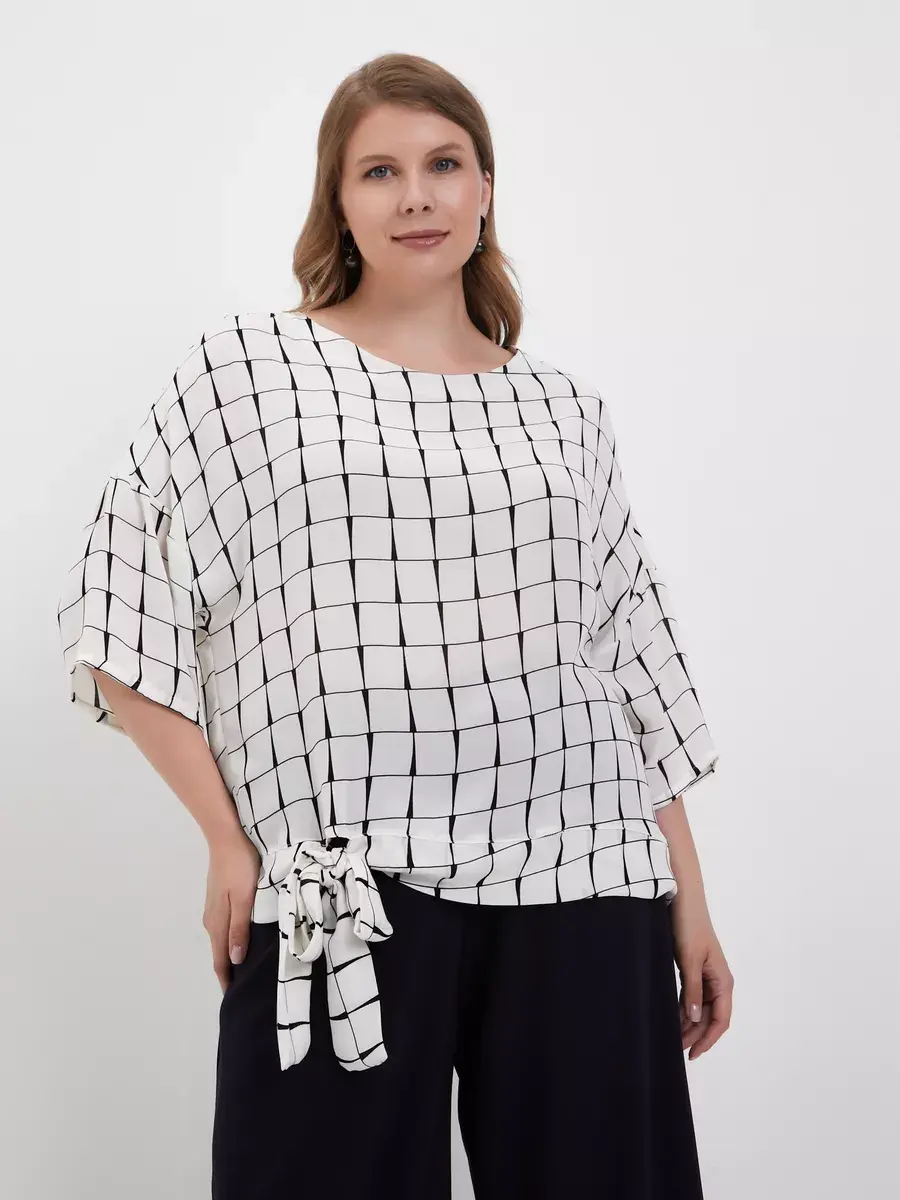 Блузка женская больших размеров от бренда OLSI из струющегося шифона премиум качества. Блузка свободного фасона, с приспущенными плечами и широкими рукавами длиной 3/4, что делает образ легким и воздушним, скрывая недостатки. Круглый вырез горловины средней глубины женственно открывает шею. Летняя блузка Олси по низу с притачным поясом со свободными концами, что позволяет регулировать свободу или завязать по бедрам. В этой блузке Ваш образ будет сдержанным и элегантным. Модель отлично подойдет как нарядная блузка на торжество, так и красивая блузка в офис на работу.