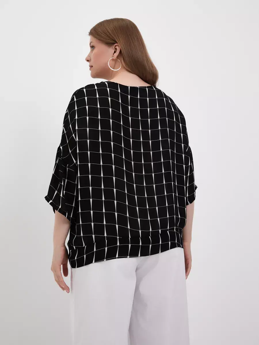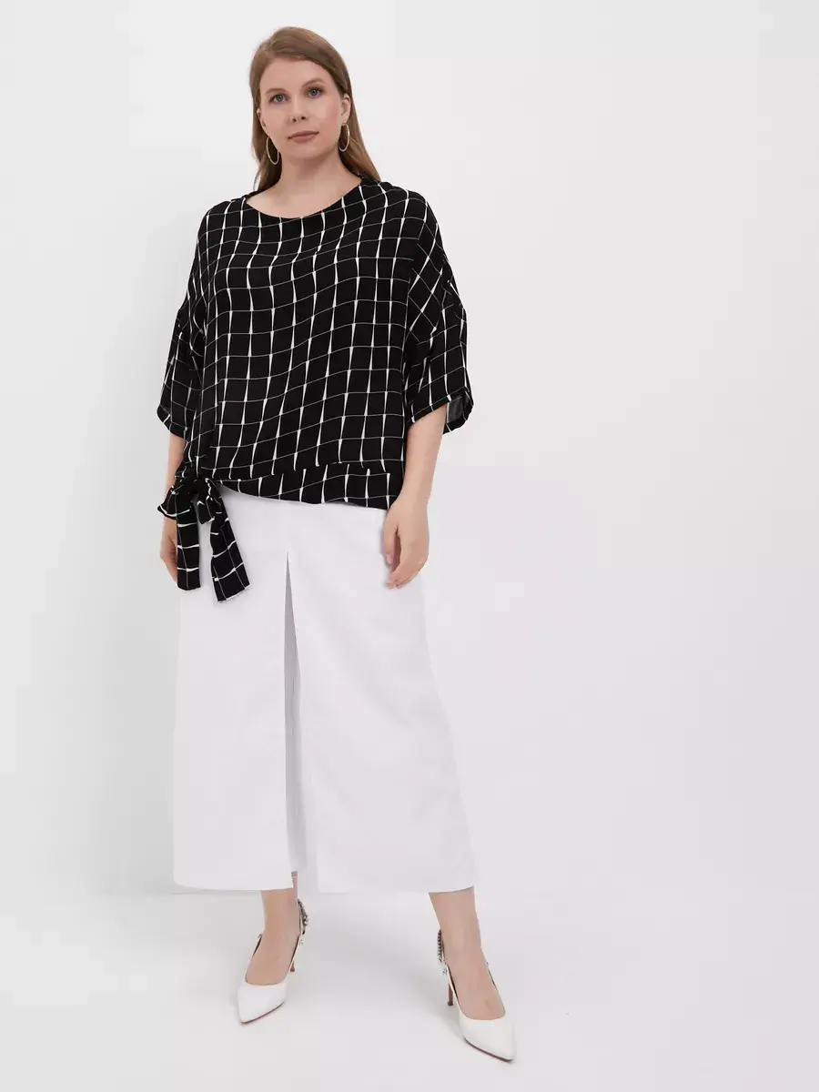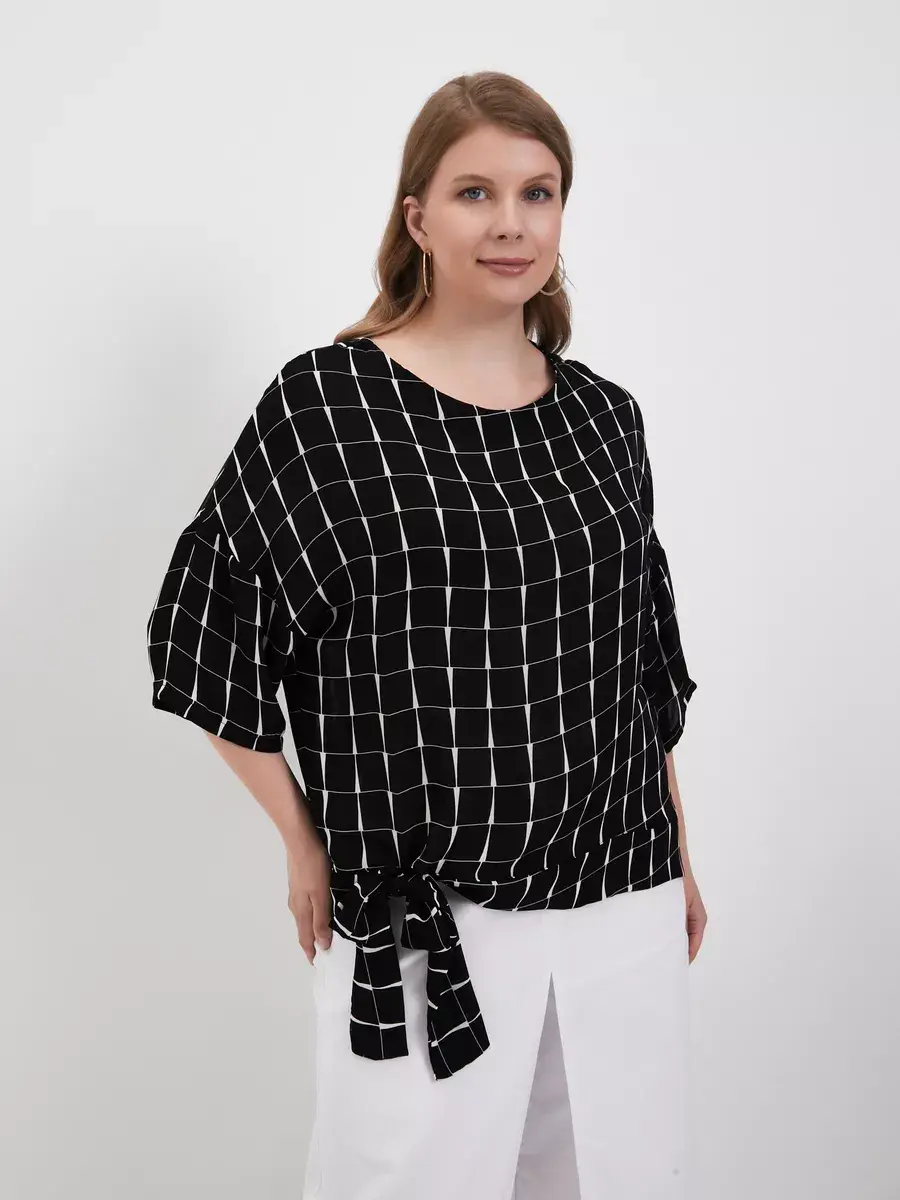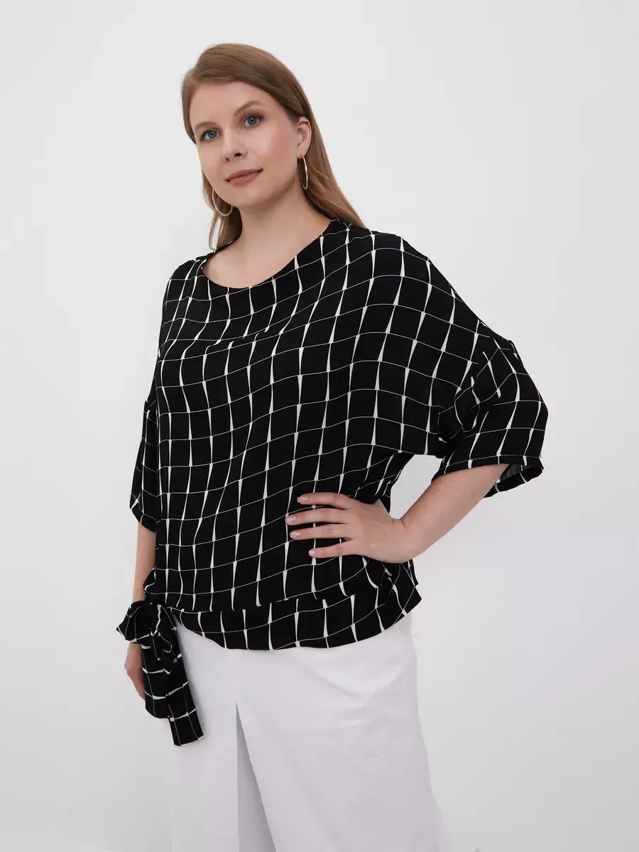 Блузка женская больших размеров от бренда OLSI из струющегося шифона премиум качества. Блузка свободного фасона, с приспущенными плечами и широкими рукавами длиной 3/4, что делает образ легким и воздушним, скрывая недостатки. Круглый вырез горловины средней глубины женственно открывает шею. Летняя блузка Олси по низу с притачным поясом со свободными концами, что позволяет регулировать свободу или завязать по бедрам. В этой блузке Ваш образ будет сдержанным и элегантным. Модель отлично подойдет как нарядная блузка на торжество, так и красивая блузка в офис на работу.