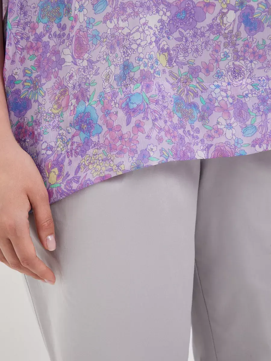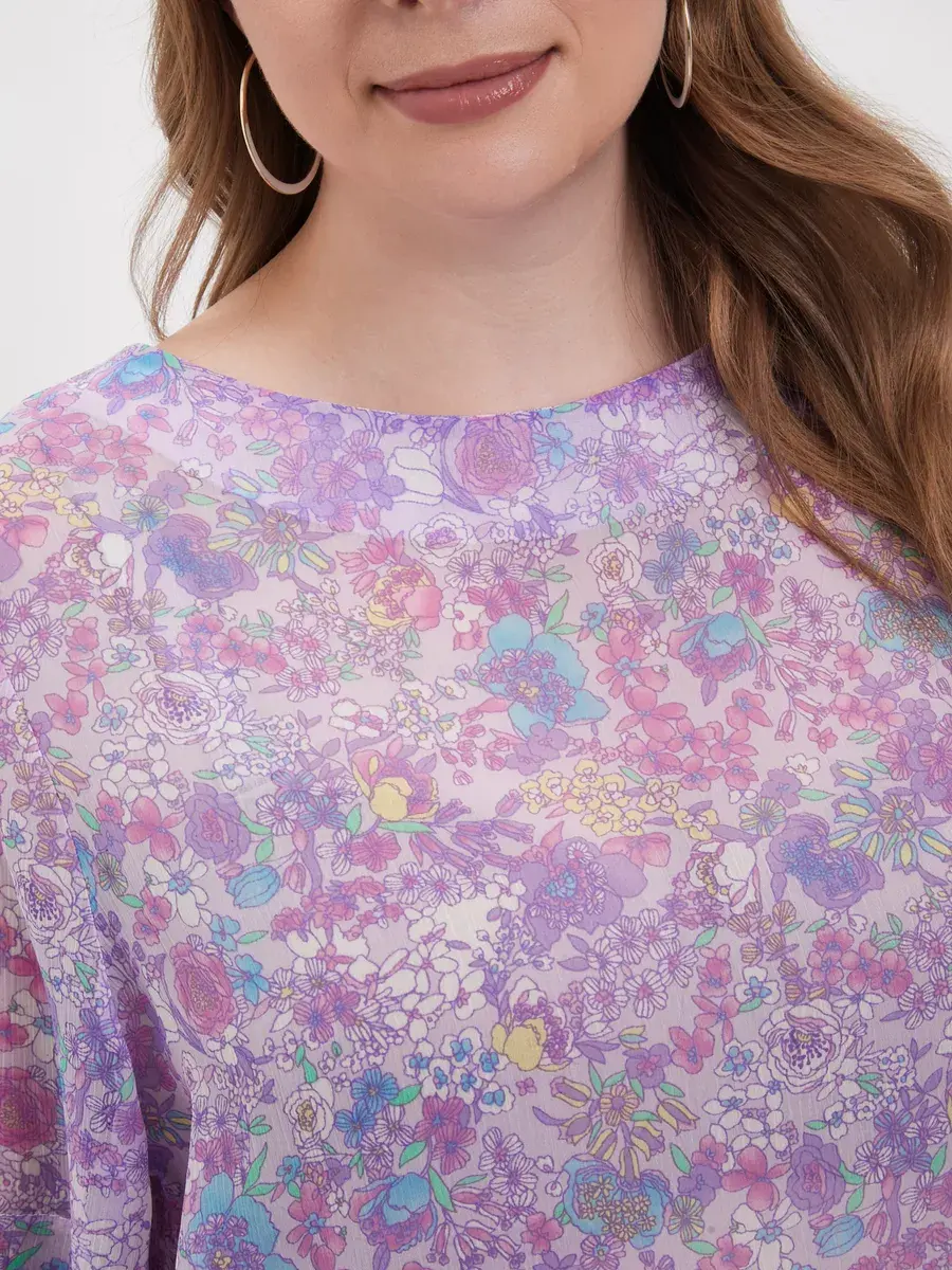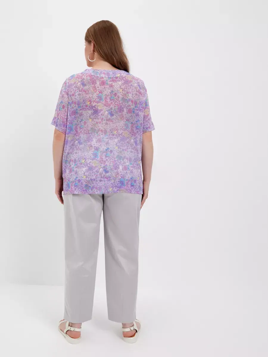 Легкая элегантная блузка больших размеров от бренда OLSI выполнена из премиум шифона с матовой поверхностью. Принтованная женская блузка Олси с короткими широкими рукавами с широким подгибом по низу, плечо приспущено; с круглым вырезом по горловине. По низу блузки широкая подгибка с отделочной строчкой, - что придает дорогой вид. Фасон блузки широкий и укороченный. Лаконичный крой блузки топа подойдет девушкам и женщинам любого возраста. Блузка женская будет уместна в любой ситуации, как повседневная блузка на работу или учебу, так и на праздничное или вечернее мероприятие, свидание. Блузка футболка отлично сочетается с джинсами, классическими брюками, юбкой. Можно носить как футболка под пиджак или жилет. Данная модель станет базовой в гардеробе модниц. Бренд OLSI это высокое качество изделий, премиальные ткани из Южкой Кореи, и собственное производство в Москве.