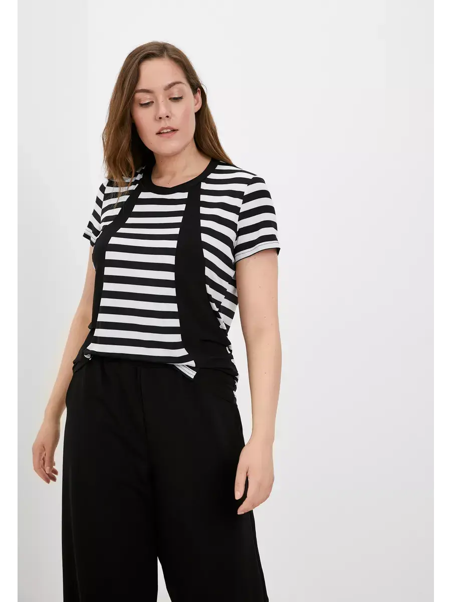 Женская футболка больших размеров выполнена из трикотажа-масло.